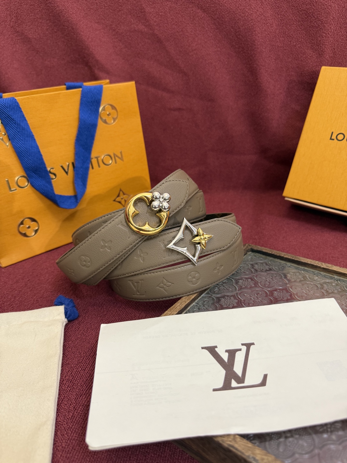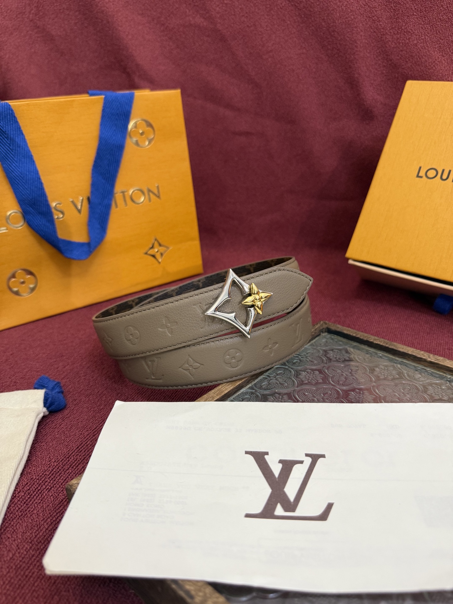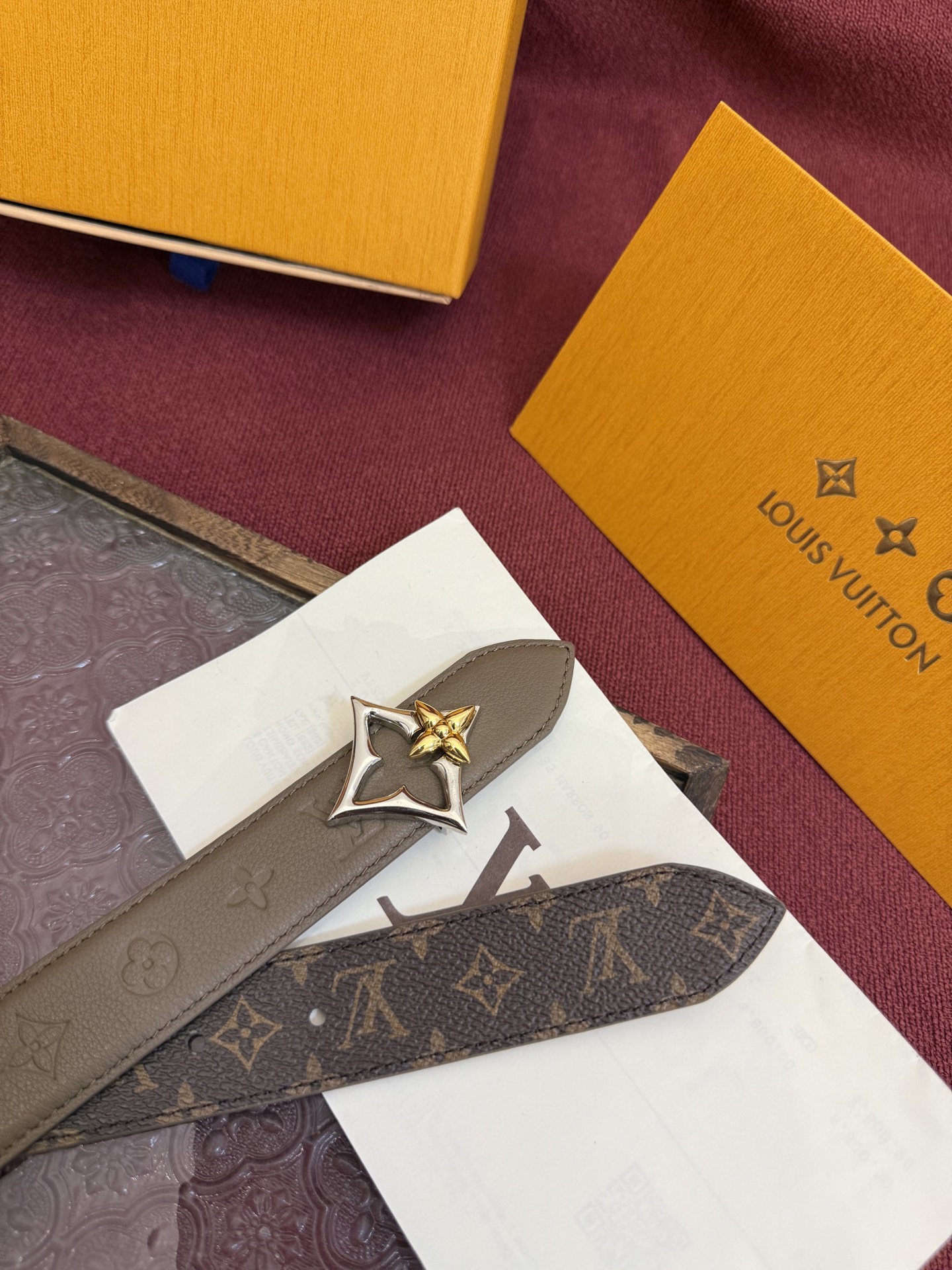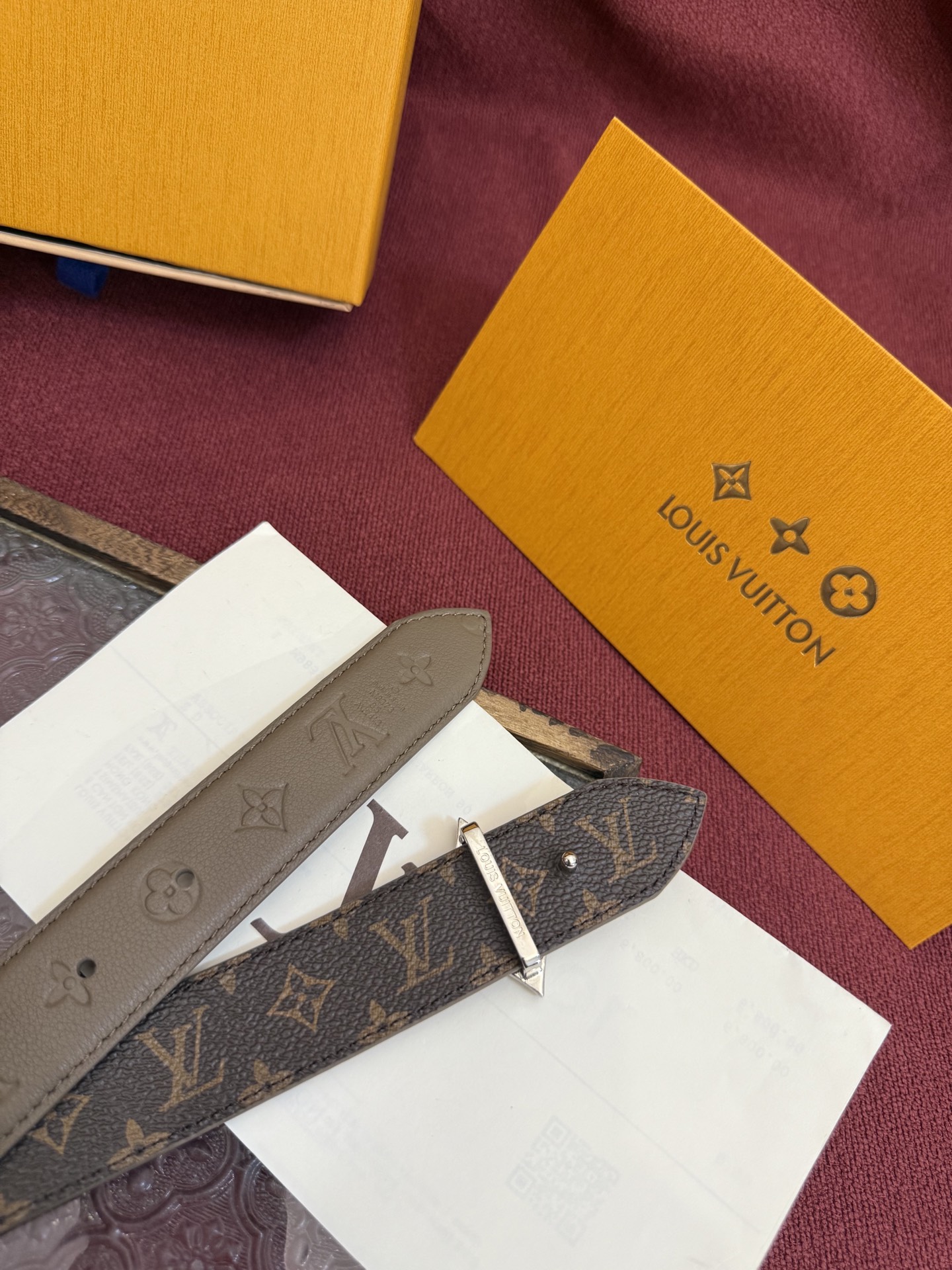 حزام لويس فويتون 3.0 سم وجهين جلد العجل مستورد مع مشبك معدني