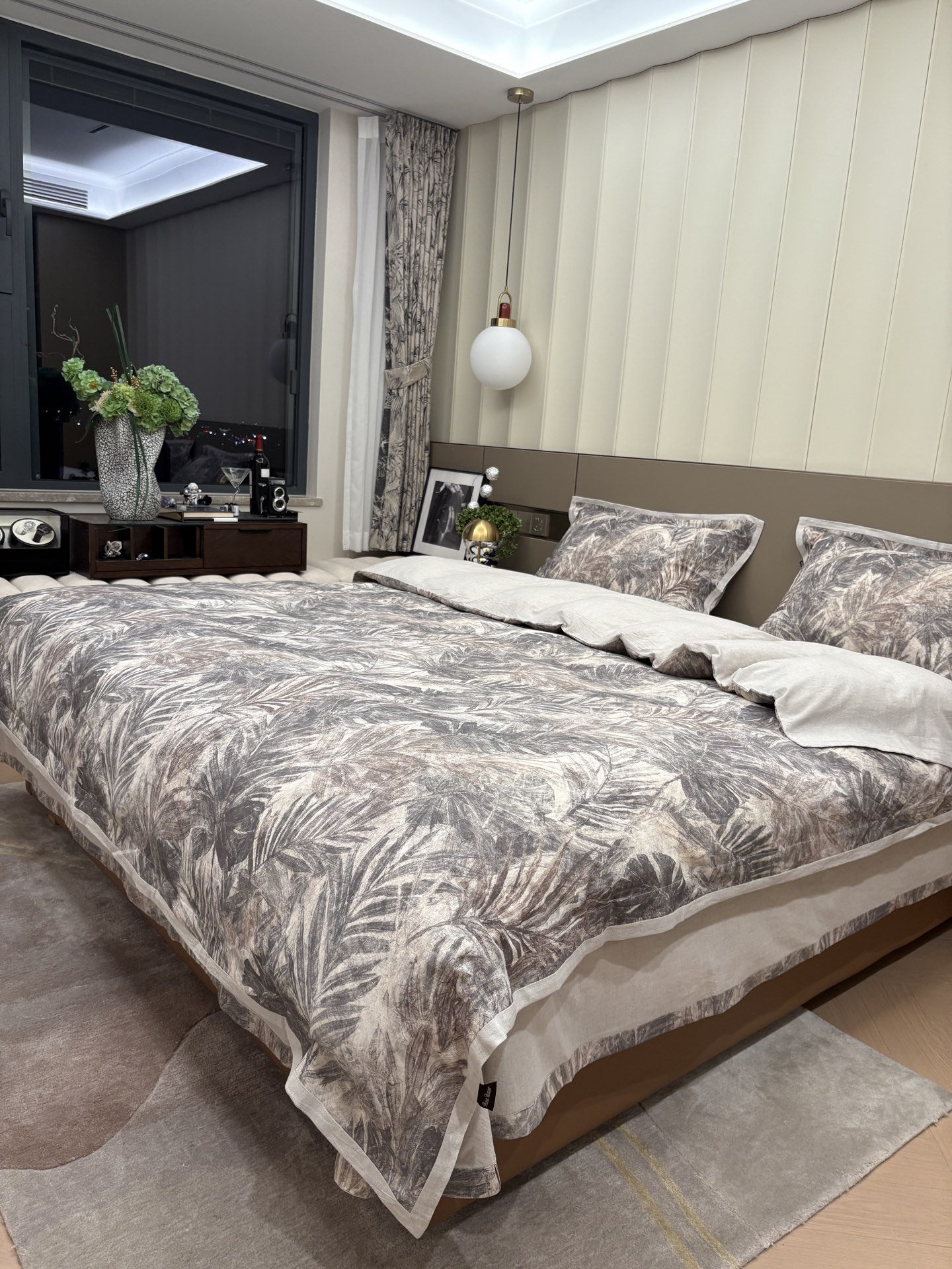يضيف هذا الطقم لمسة من الأناقة والراحة إلى غرفة نومك. مصنوع من مزيج القطن والكتان عالي الجودة، ويتميز بنعومته ومتانته. التصميم المطبوع رقميًا يضفي لمسة بصرية جذابة.