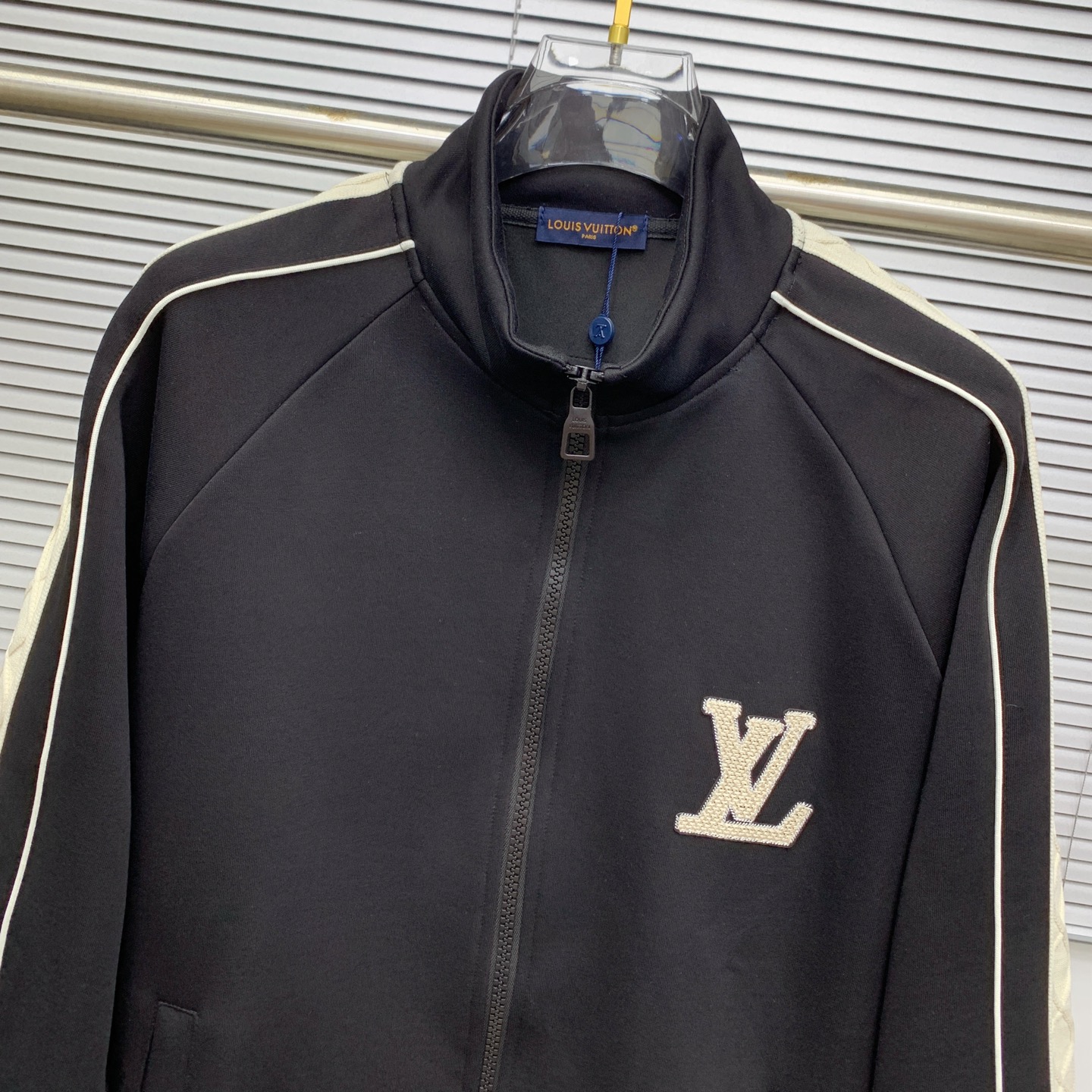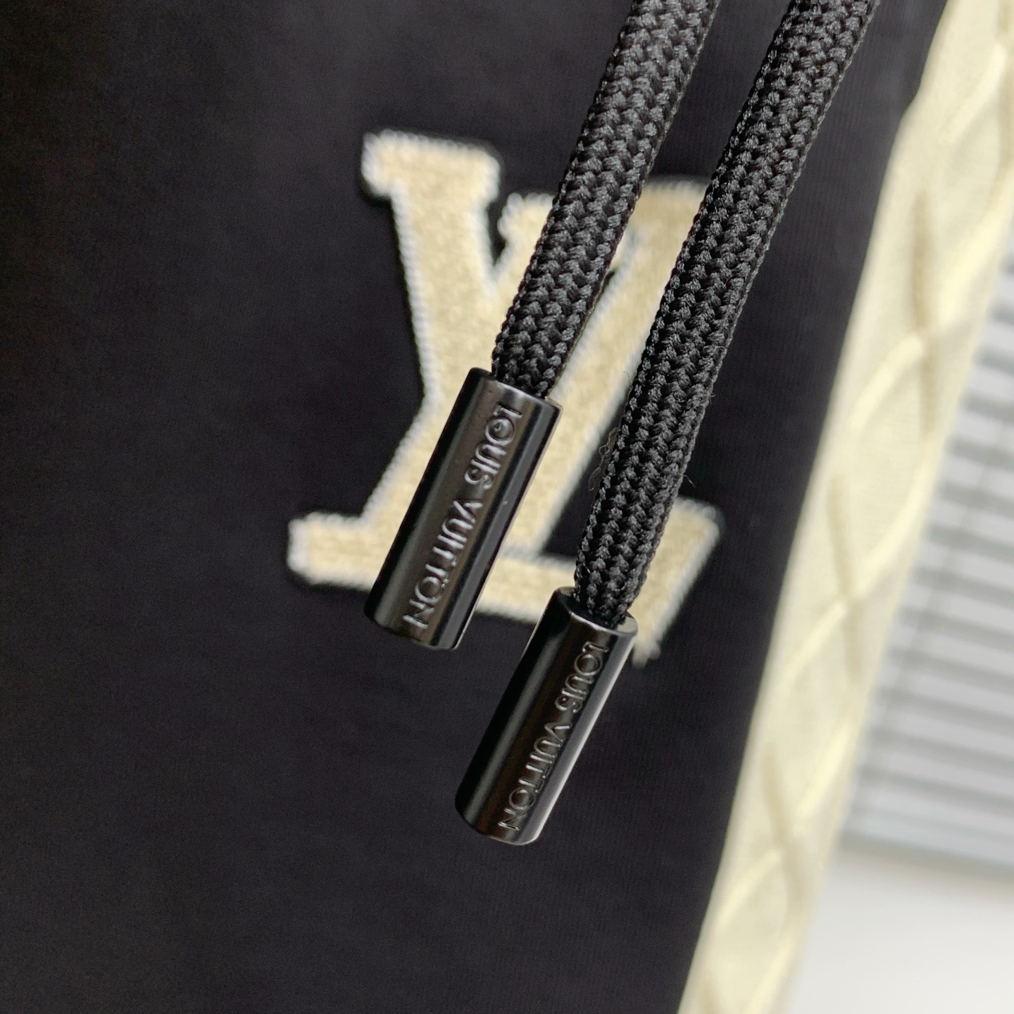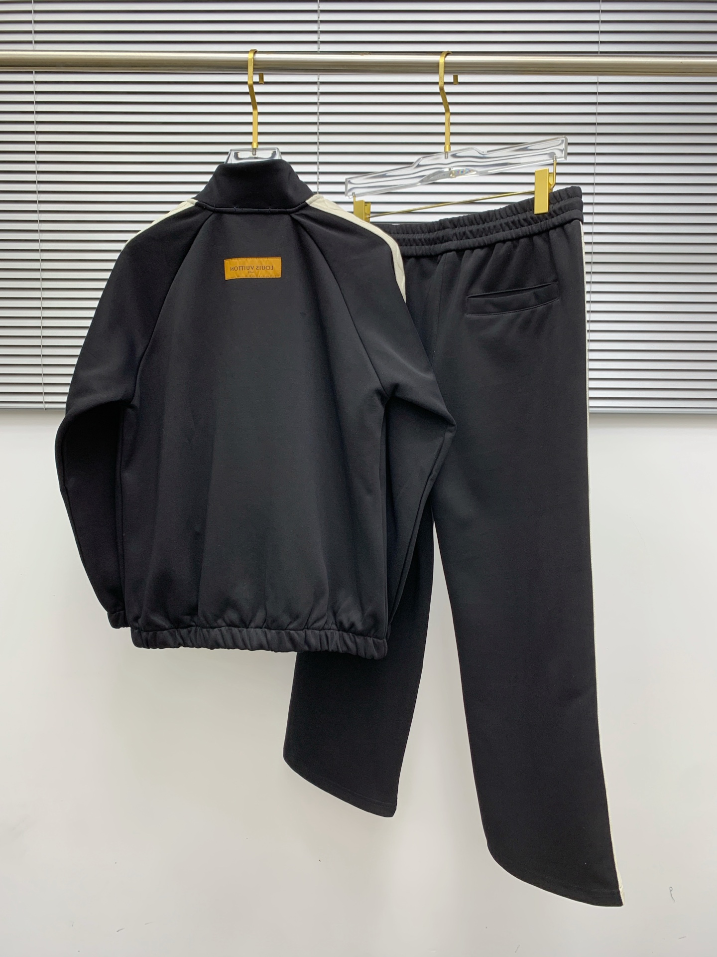 استمتع بالأناقة والراحة مع هذا الطقم الرياضي الأسود الفاخر من لويس فويتون، مثالي للإطلالة اليومية العصرية.