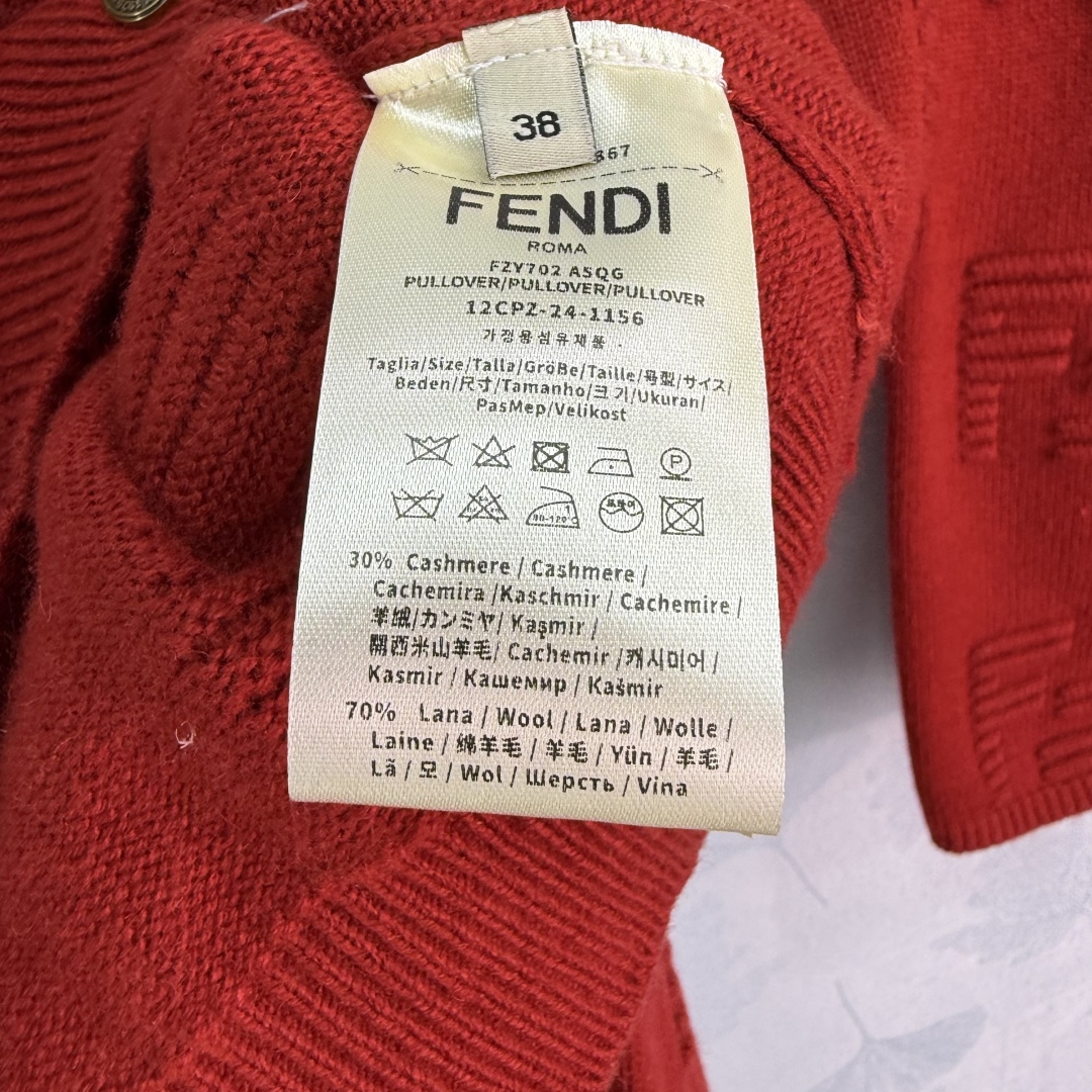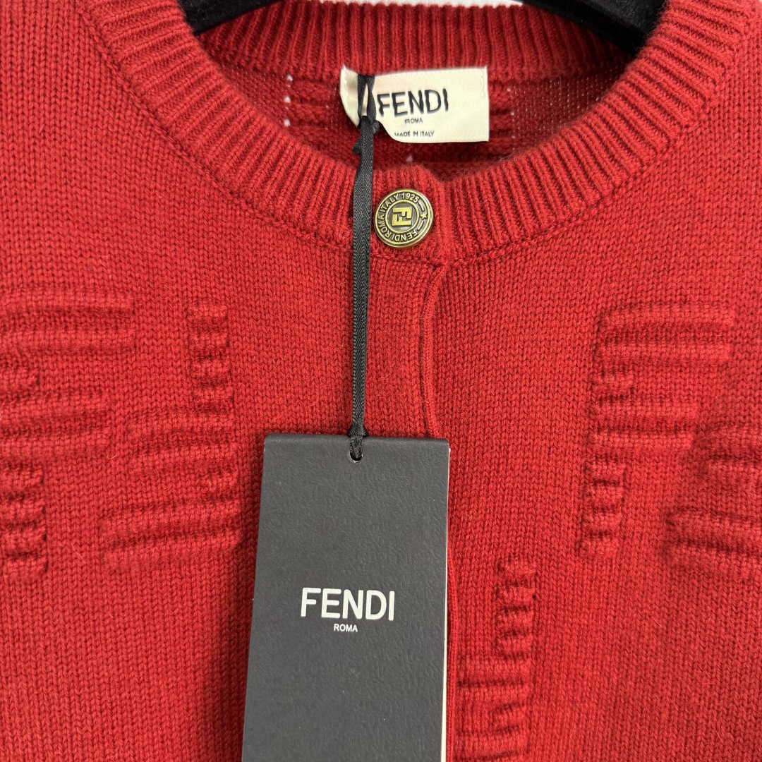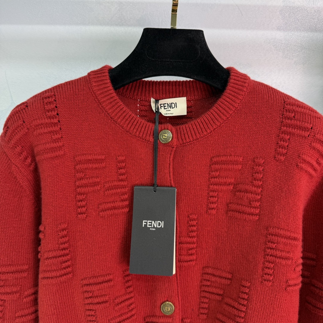 - Elegant Metal FF Buttons: The cardigan is fastened with stylish metal buttons featuring the Fendi logo.