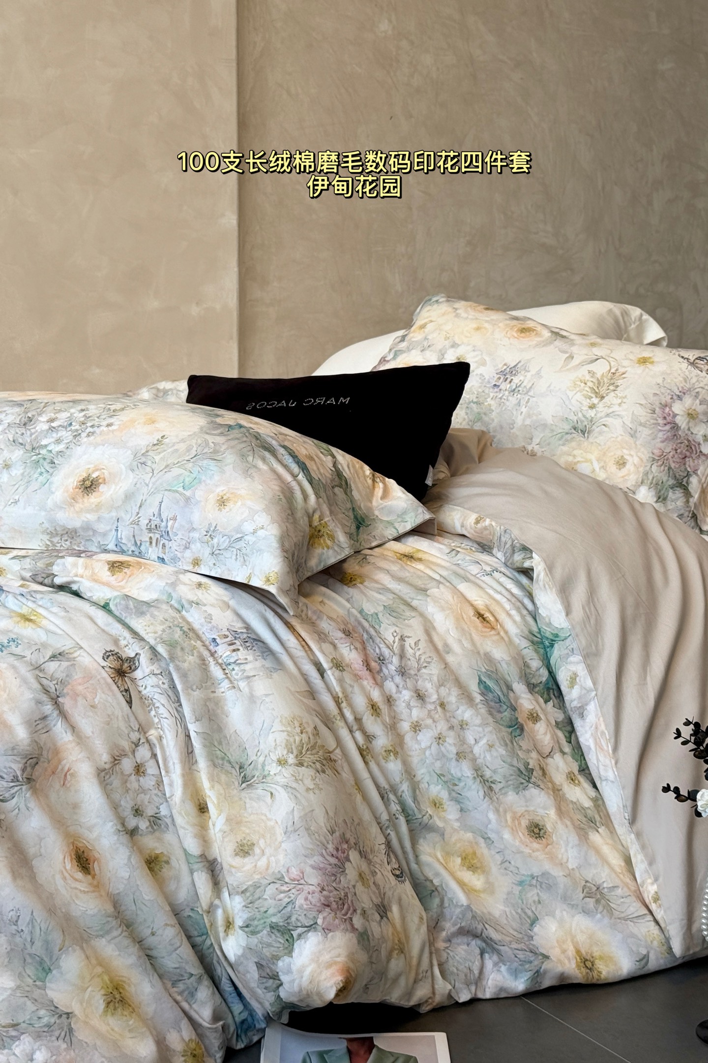 استمتع بنوم هانئ مع طقم مفرش السرير الفاخر هذا المصنوع من القطن طويل التيلة فائق النعومة بنسبة 100% ونقشة الزهور الأنيقة.