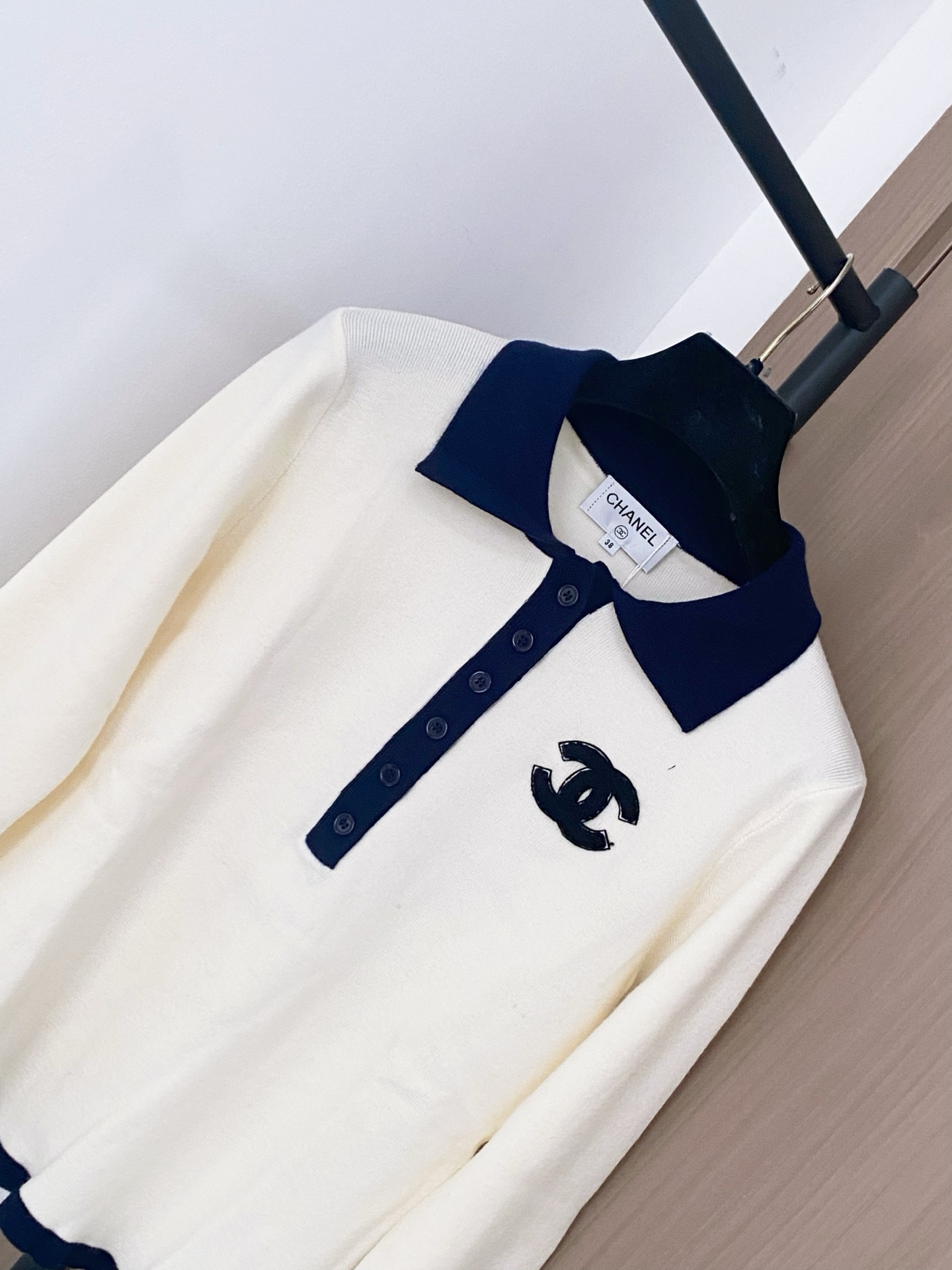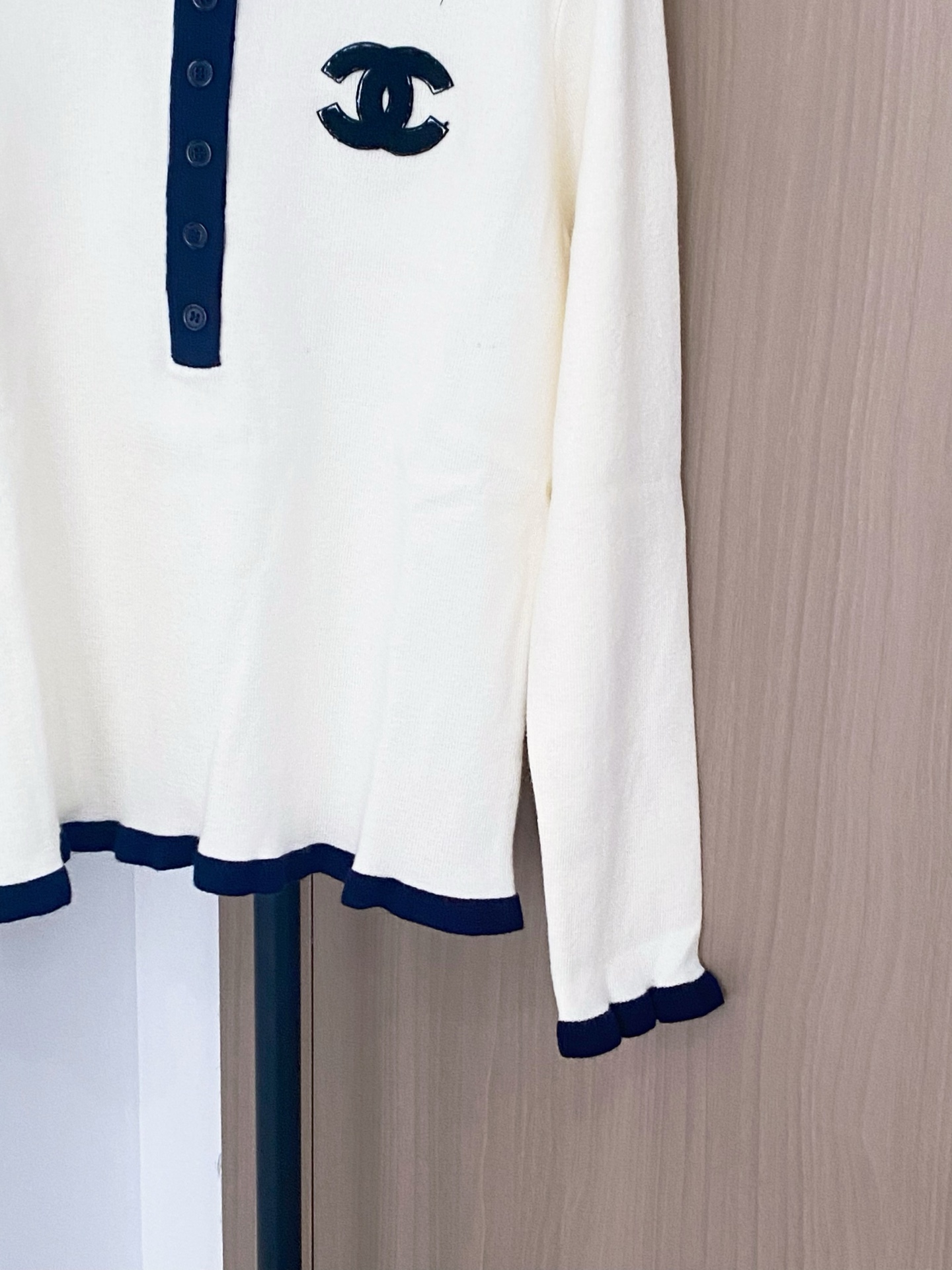 Tags: Chanel Logo Top, Chanel Long Sleeve Top, Designer Women's Top, Fashionable Women's Clothing, Luxury Brand Blouse
