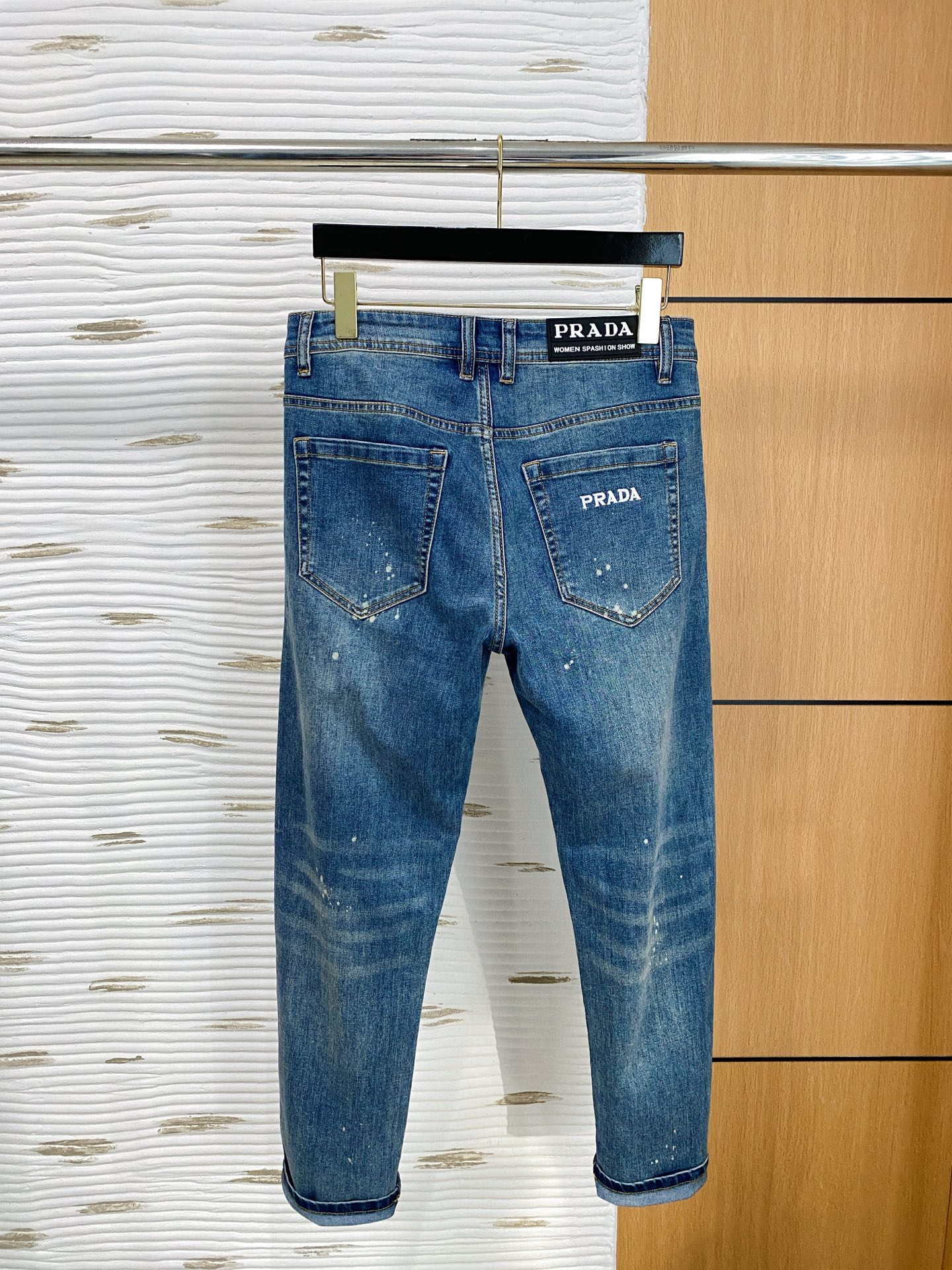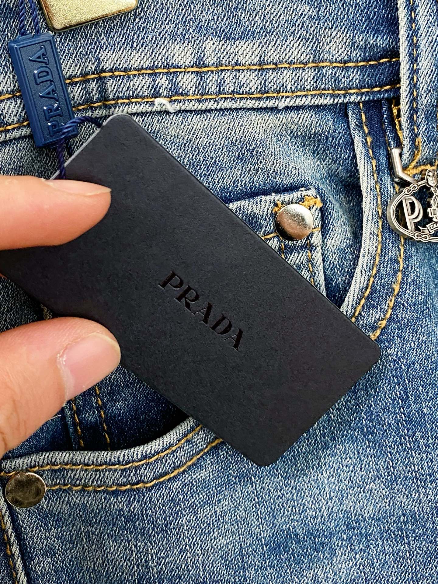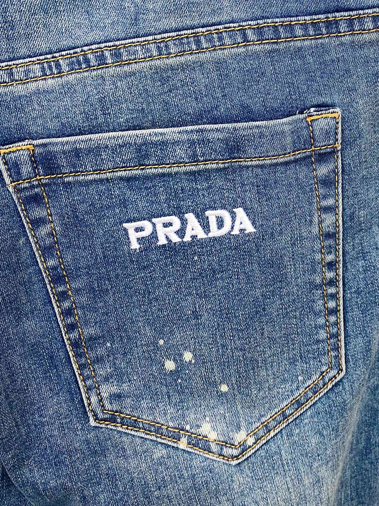 بنطلون جينز برادا رجالي بقصة ضيقة وتصميم عصري