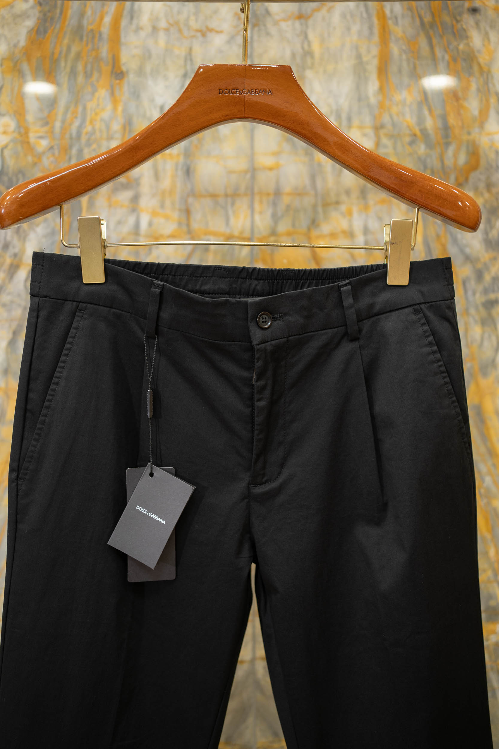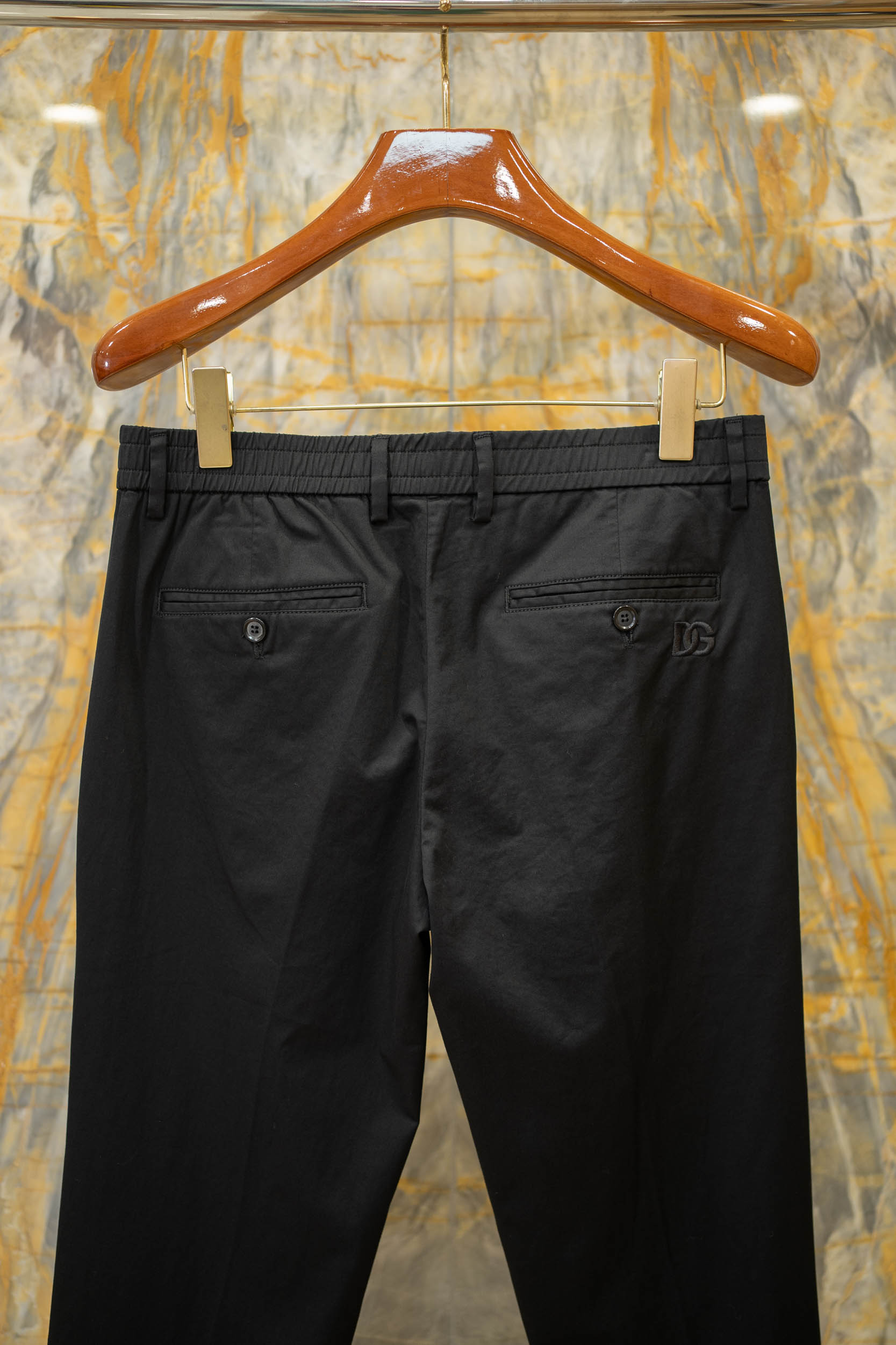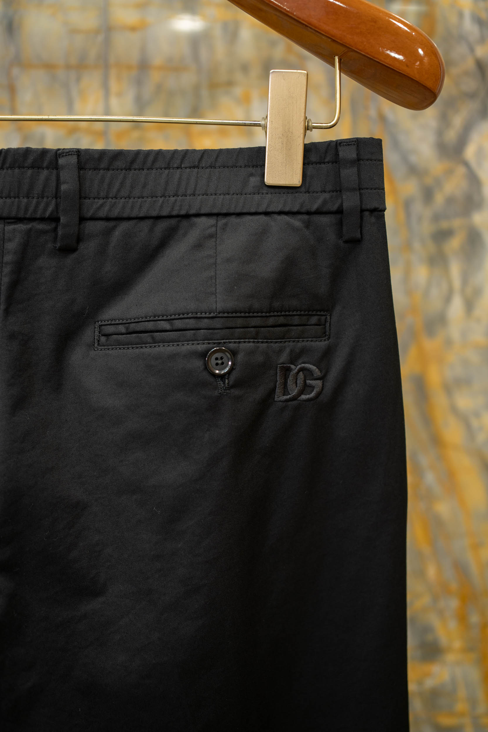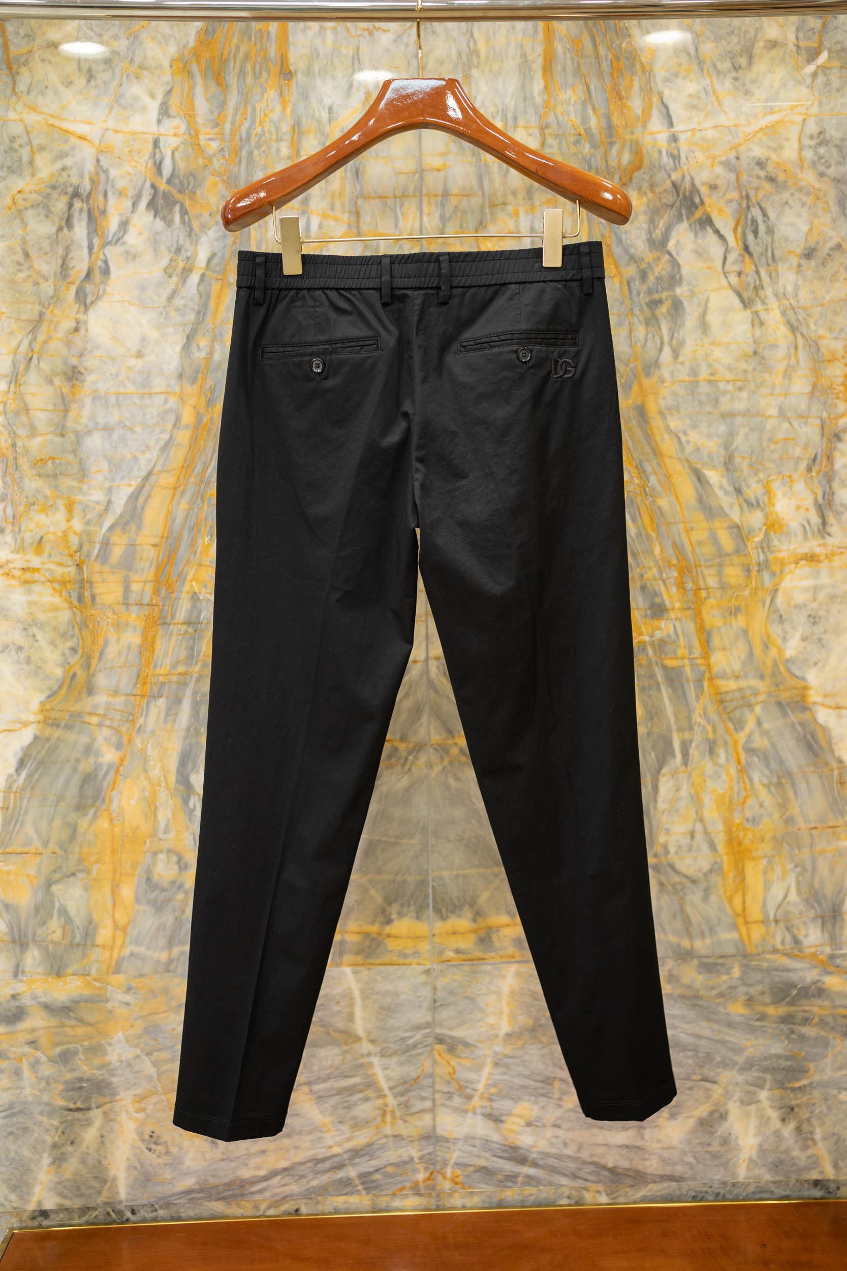 اكتشف أحدث تشكيلة من البناطيل الرجالية الكاجوال المصنوعة من القطن الفاخر بتصميم نحيف مطرزة بشعار DG.