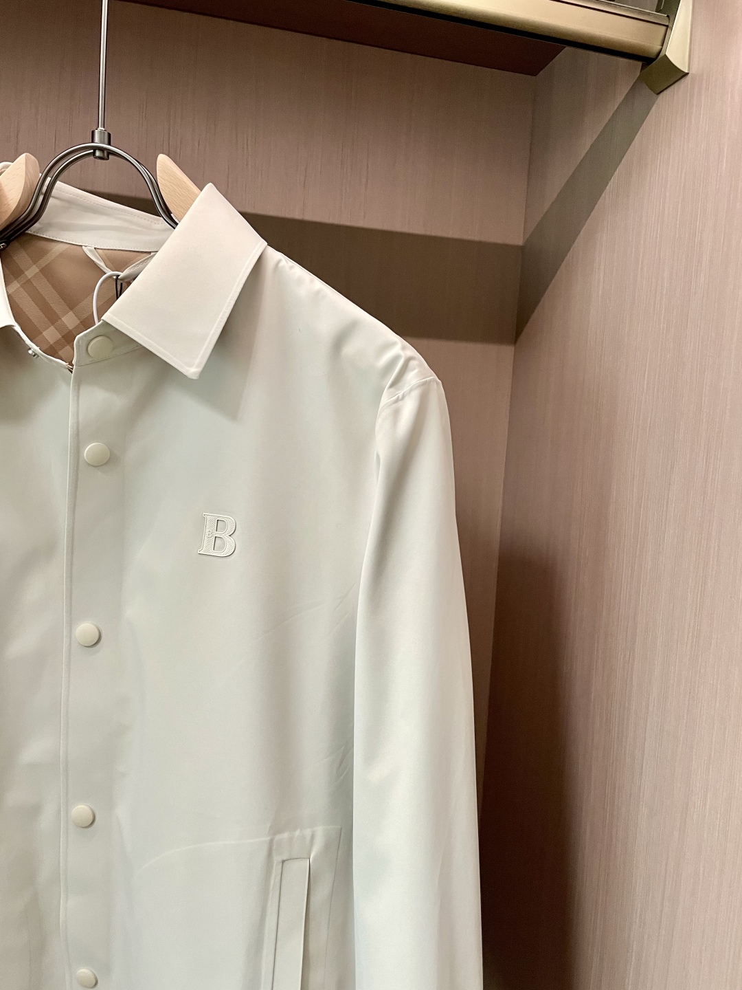 Elevate your style with this chic Burberry jacket. Featuring a subtle 'B' logo, it offers luxury and comfort for any occasion.