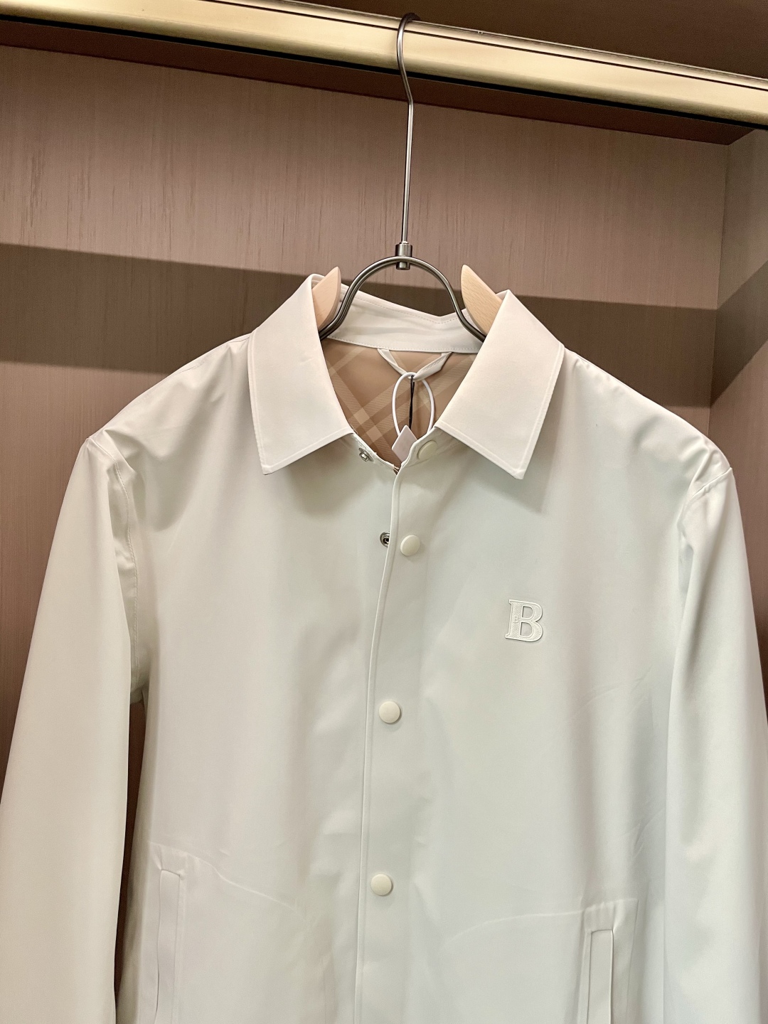 Tags: Burberry Women's Jacket, Button-Front Jacket, Casual Chic Women's Coat, Designer White Jacket, Luxury Outerwear