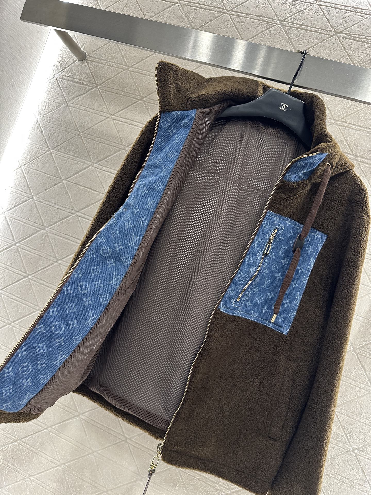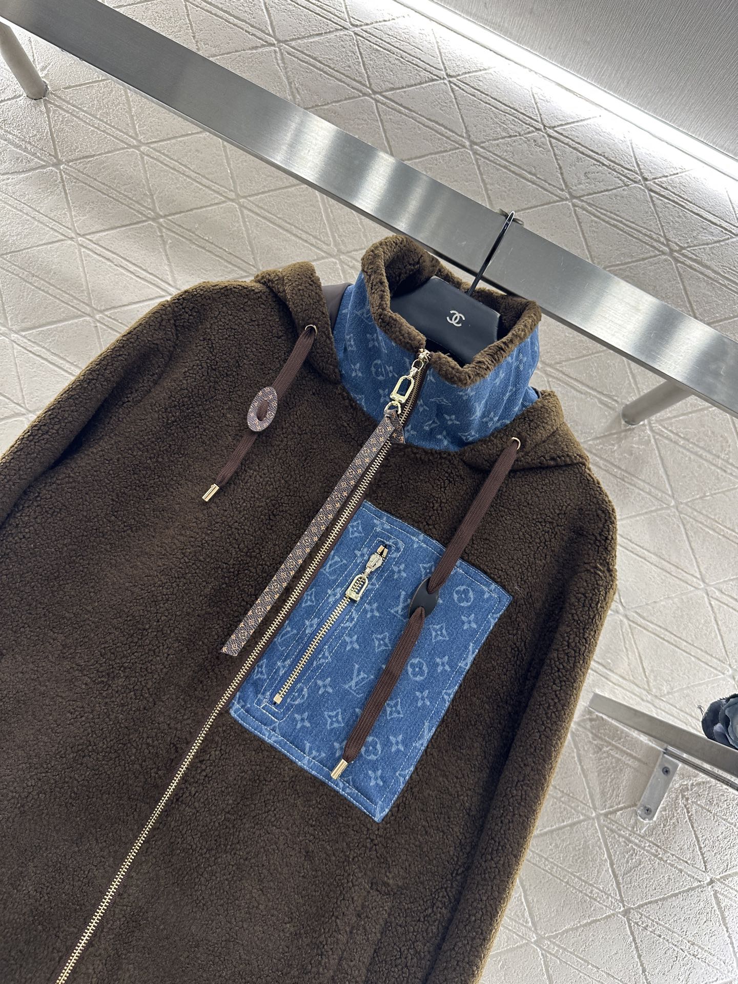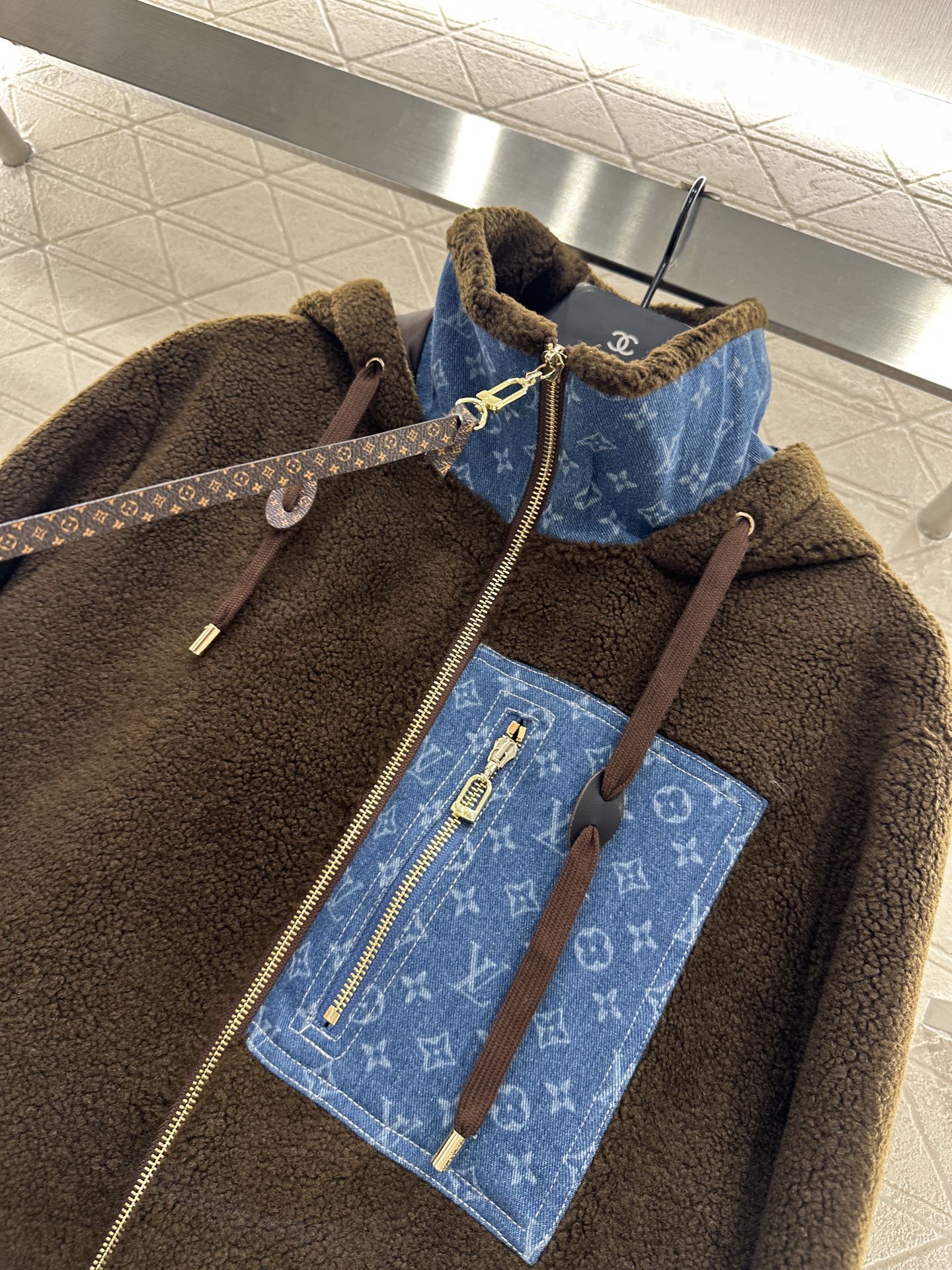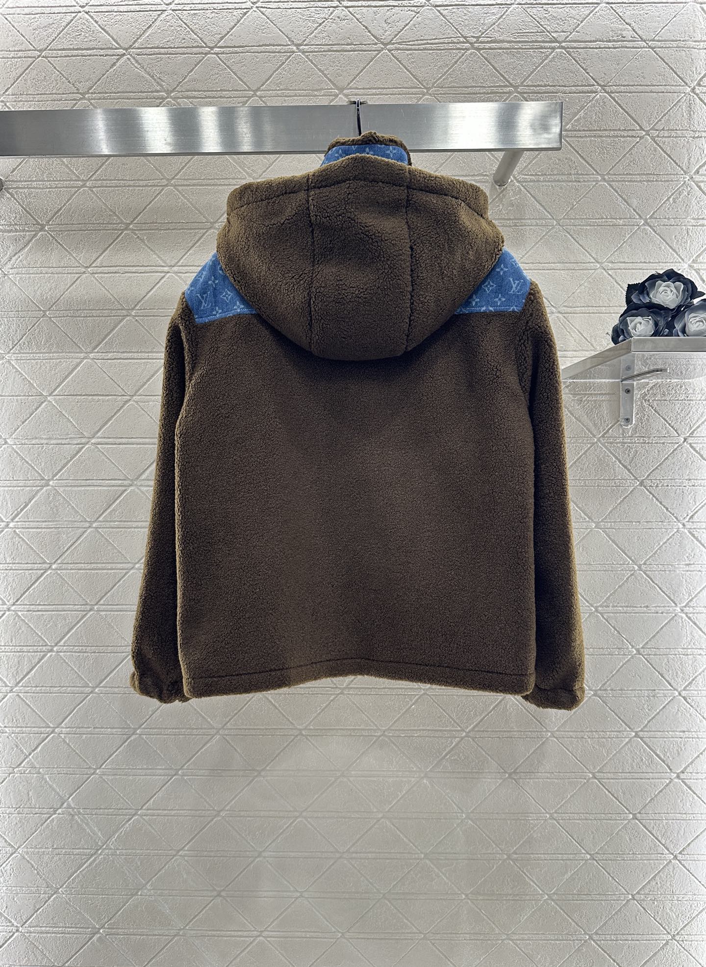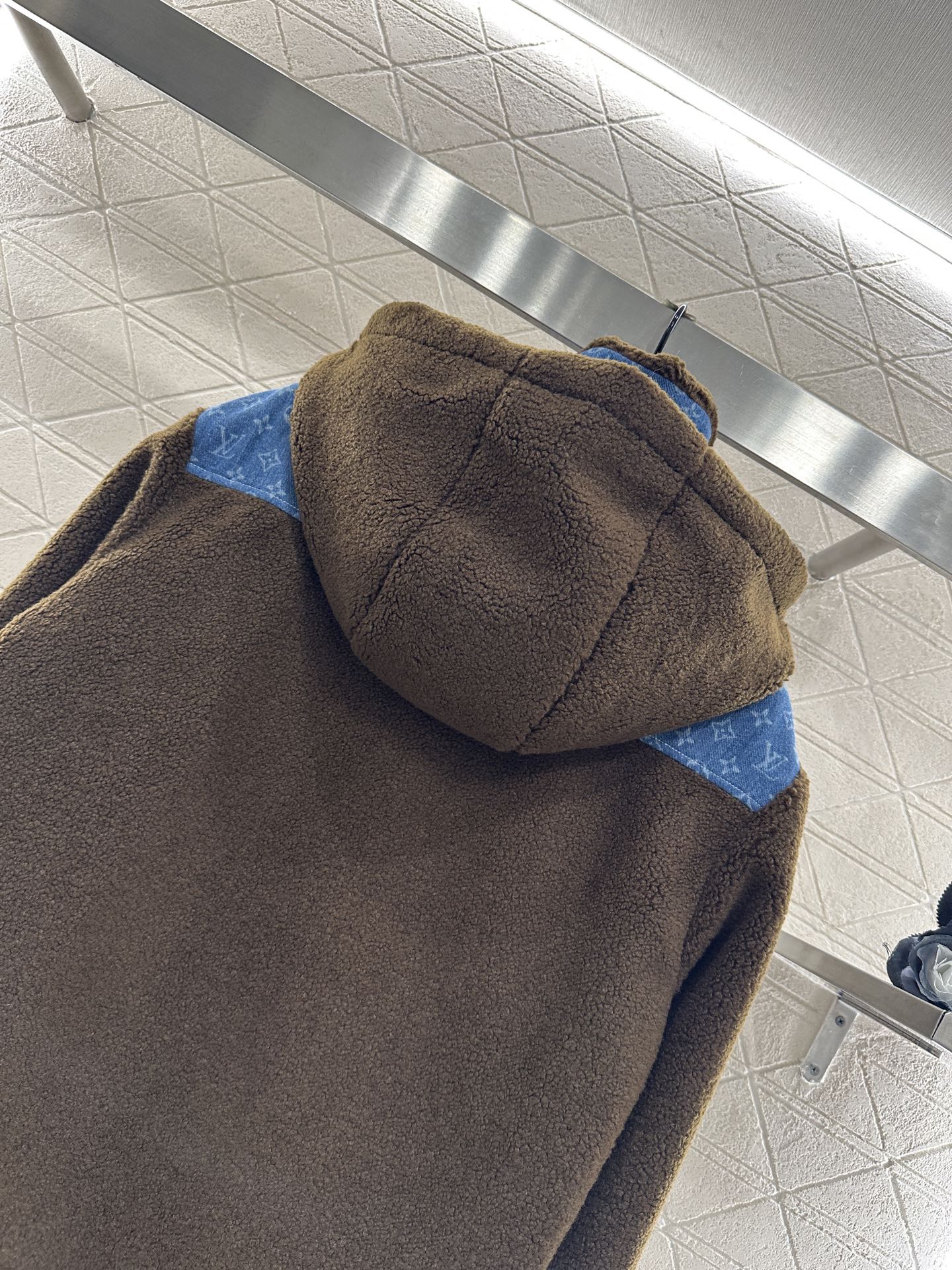 جاكيت لوي فيتون بغطاء للرأس من صوف تيدي للنساء، مصنوع من أجود الخامات لتوفير الدفء والأناقة في فصل الشتاء.