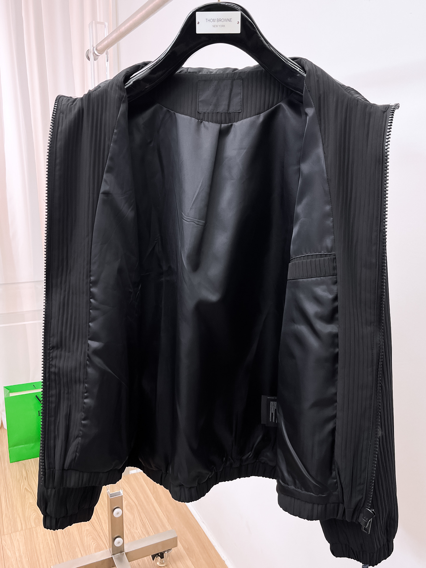 جاكيت Prada الرجالي الأنيق لموسم خريف وشتاء 2025، يجمع بين الفخامة والراحة في تصميم واحد.