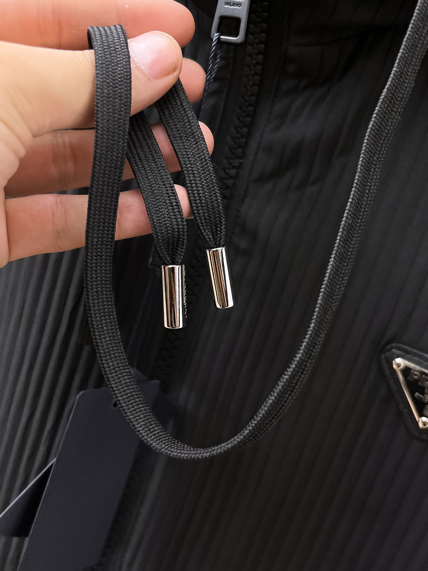 Tags: جاكيت Prada أسود, جاكيت Prada بسحاب, جاكيت Prada مثلث معدني, جاكيت خريف وشتاء 2025, جاكيت رجالي بغطاء للرأس, ملابس رجالية فاخرة