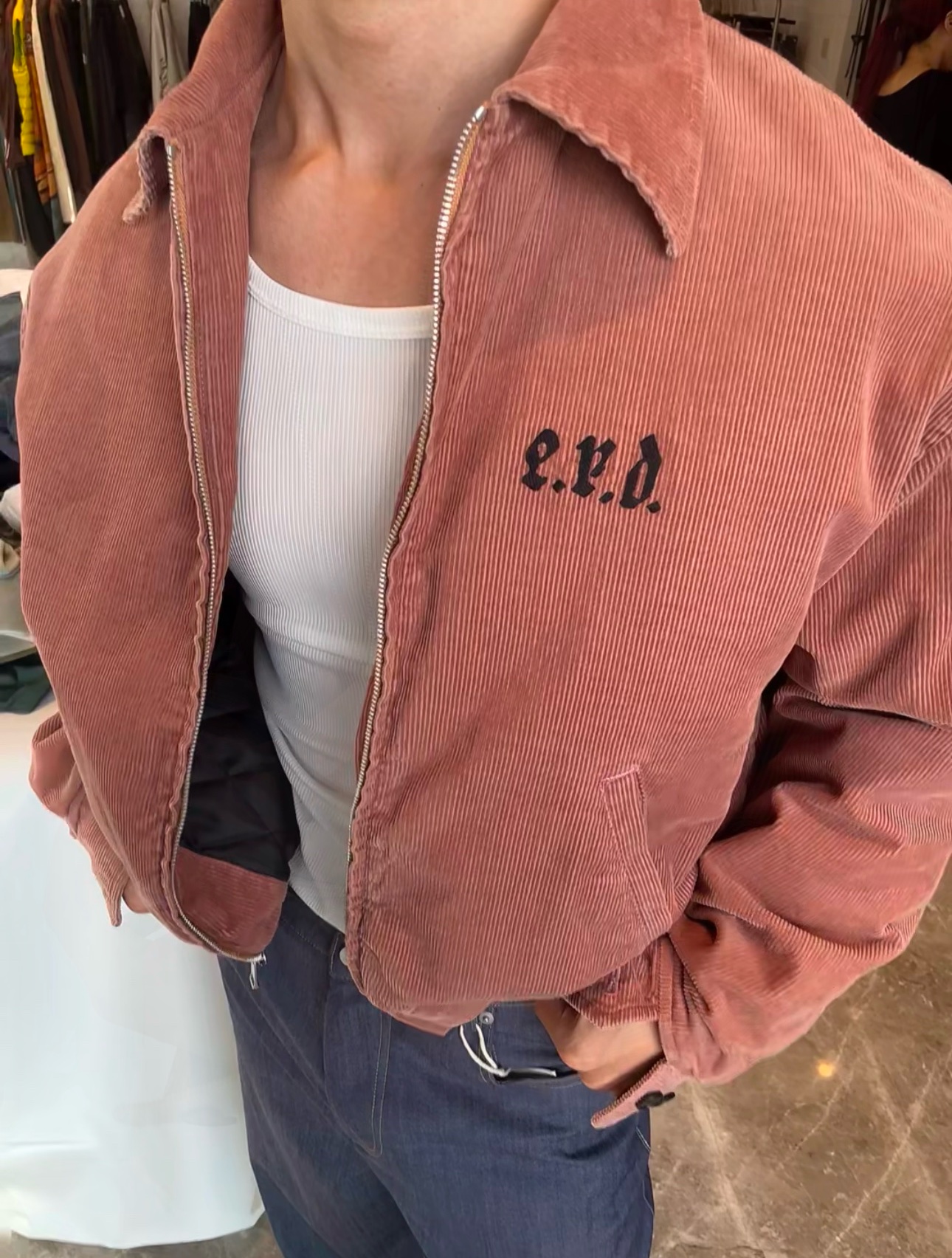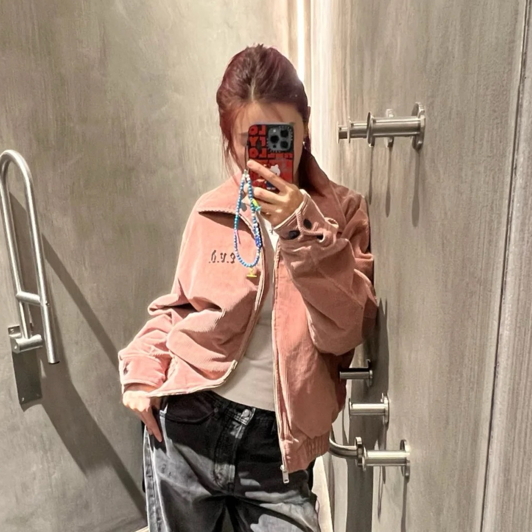 Tags: جاكيت ERD, جاكيت بلون السلمون, جاكيت عصري للخريف والشتاء, جاكيت قصير للجنسين, جاكيت كورديروي عتيق, جاكيت مطرز ميكانيكياً