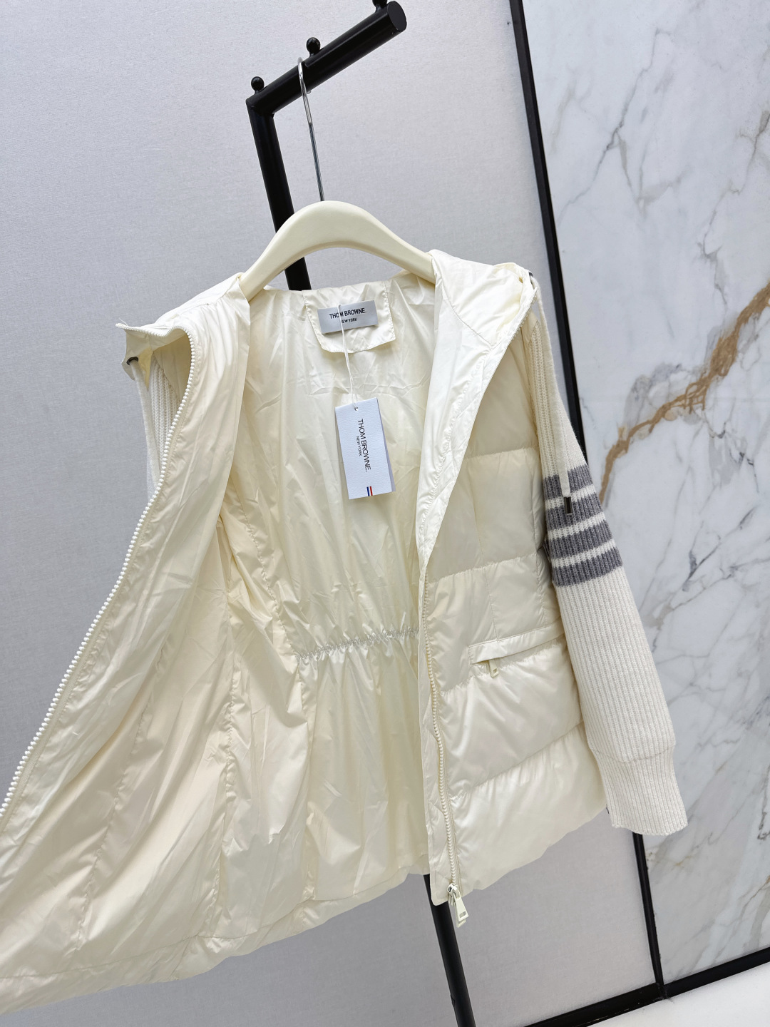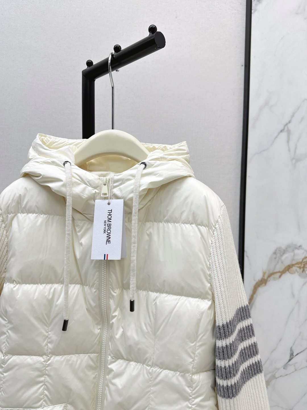 Tags: Casual Slim Fit, Hooded Winter Coat, Merino Wool Jacket, Thom Browne Jacket, White Duck Down, Wool Blend Down Jacket