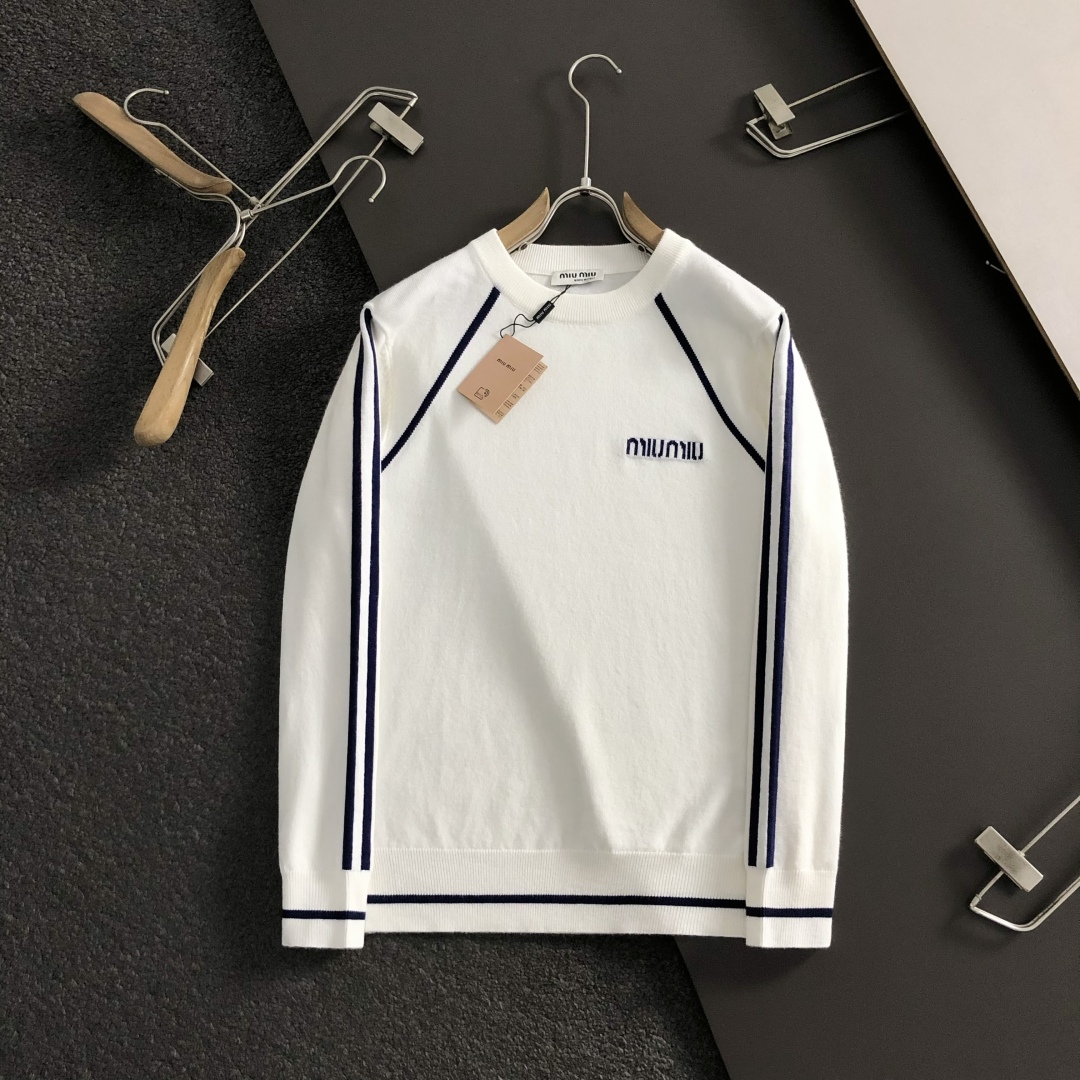 This Miu Miu sweater is a versatile piece that can be dressed up or down. Pair it with jeans for a casual look or dress pants for a more sophisticated ensemble.