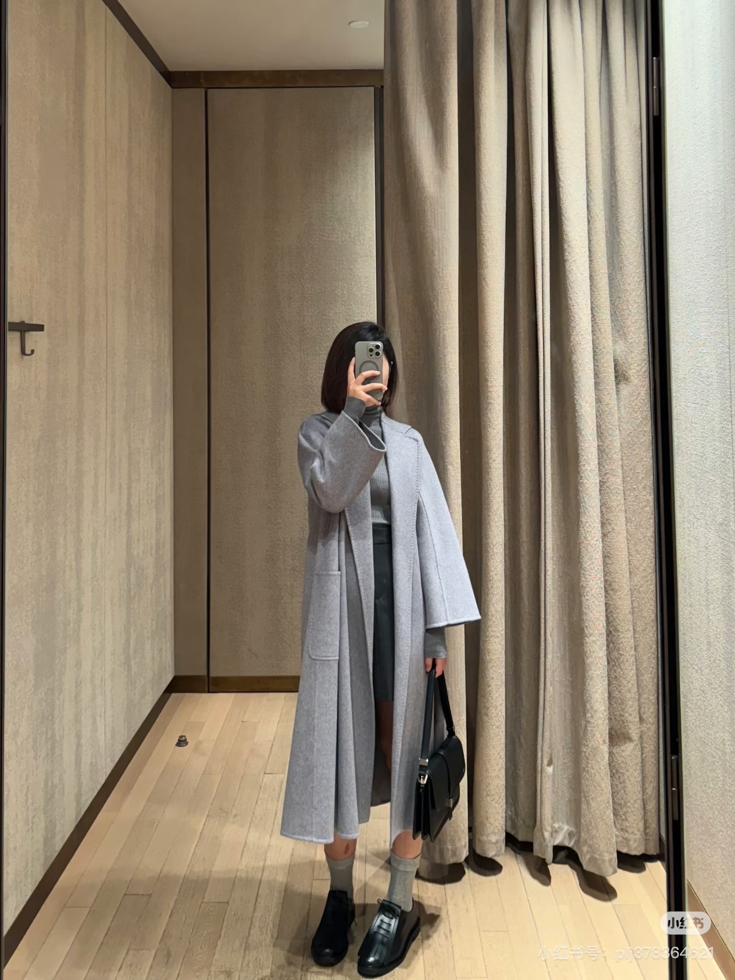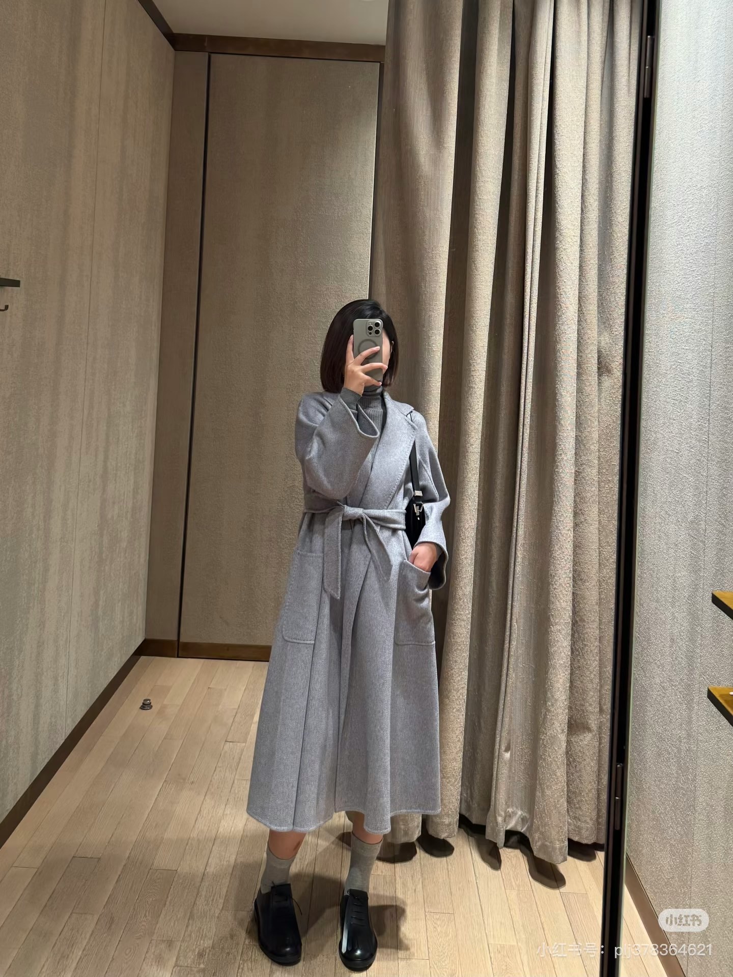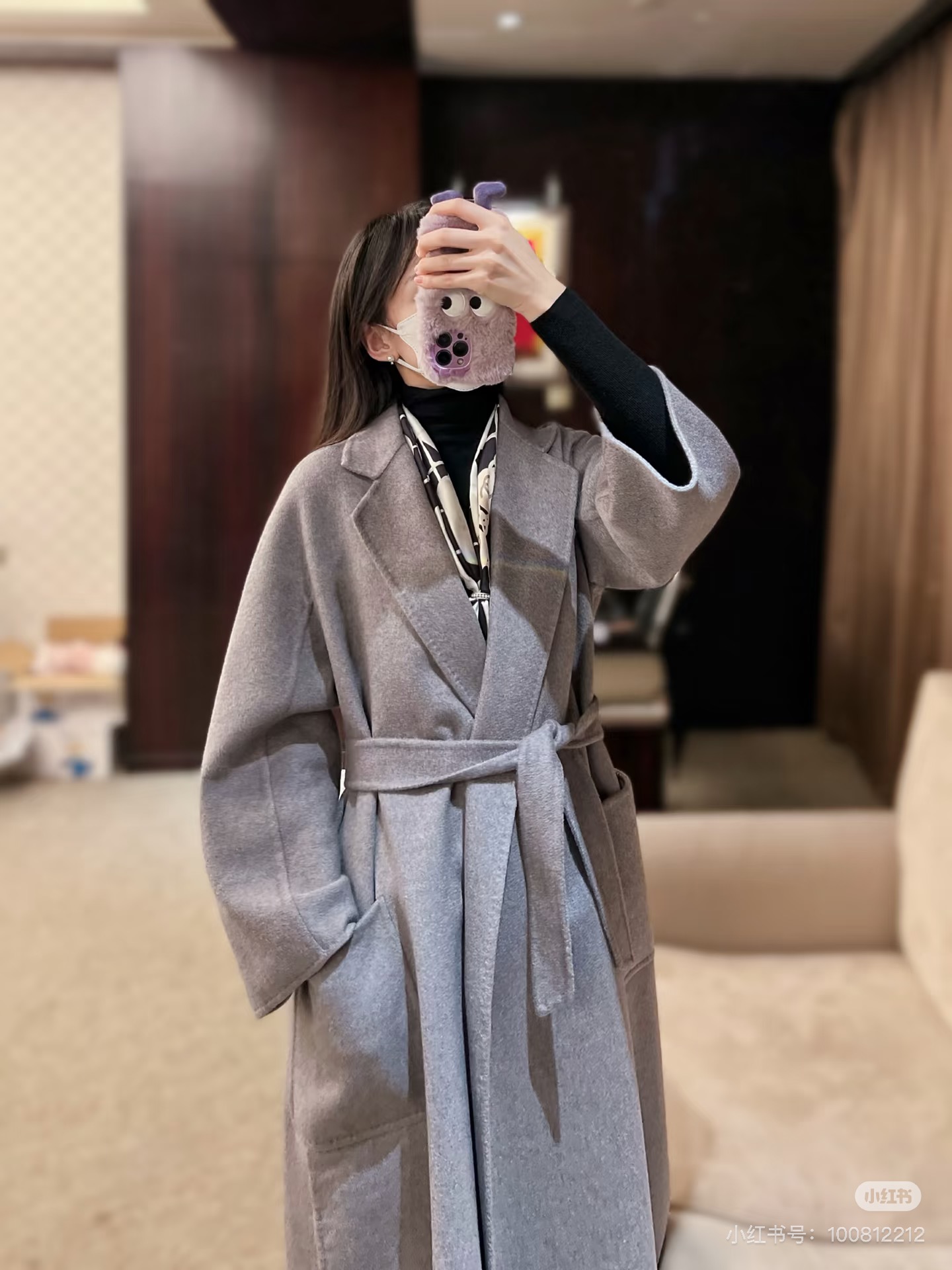 Tags: Elegant Women's Coat, Grey Wrap Coat, Luxury Outerwear, Max Mara Fur Coat, Winter Fashion, Wool Blend Coat