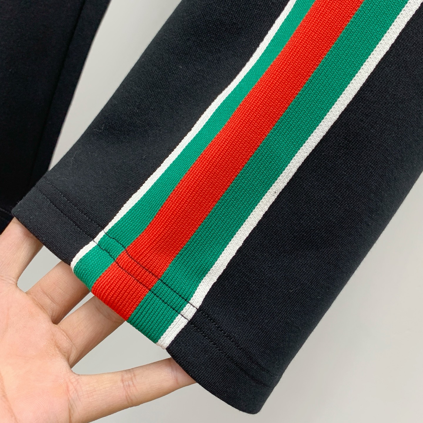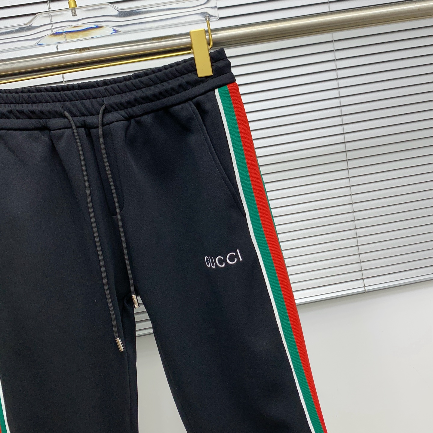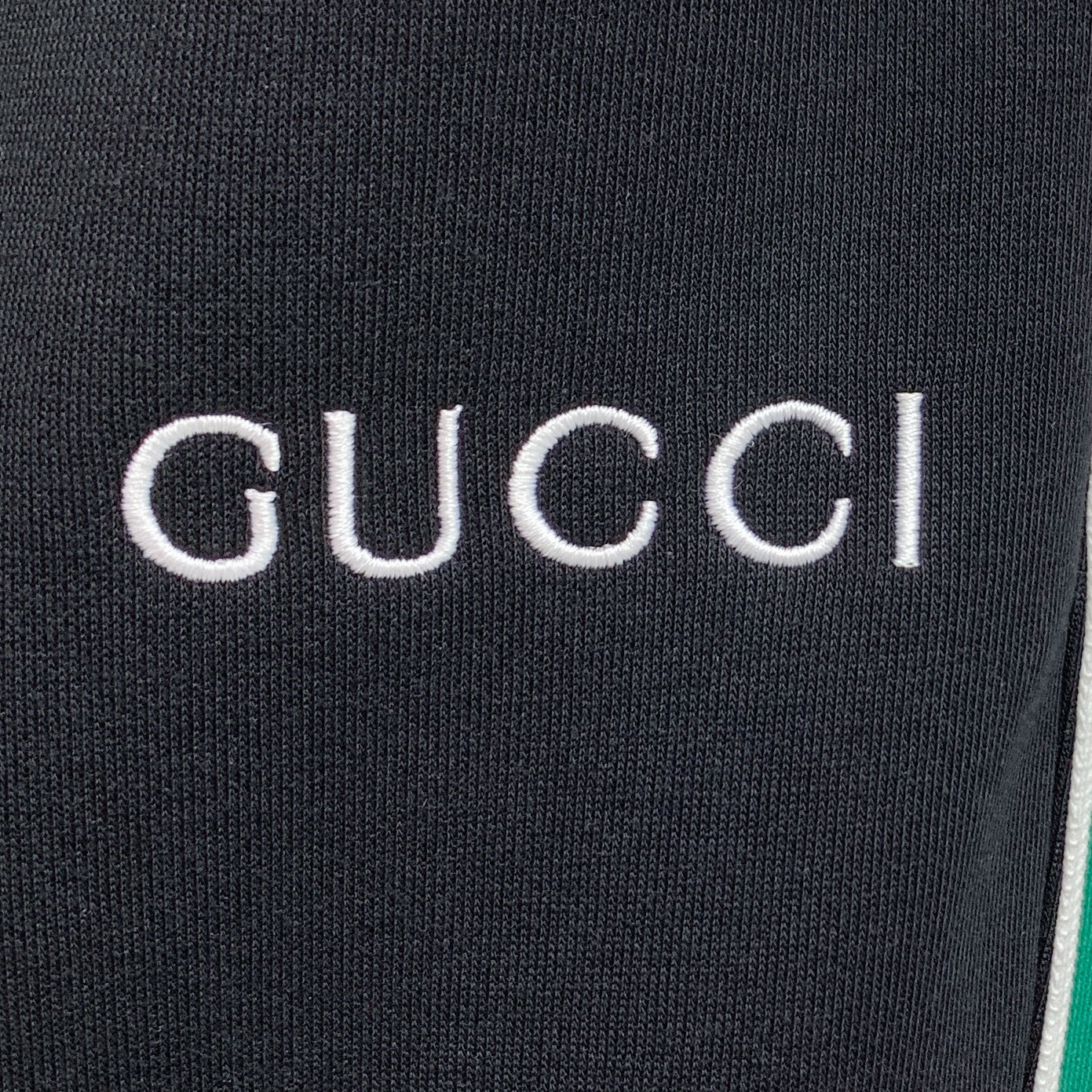 Gucci 2025 سروال رياضي أسود مطرز بشعار ذهبي مريح وعصري