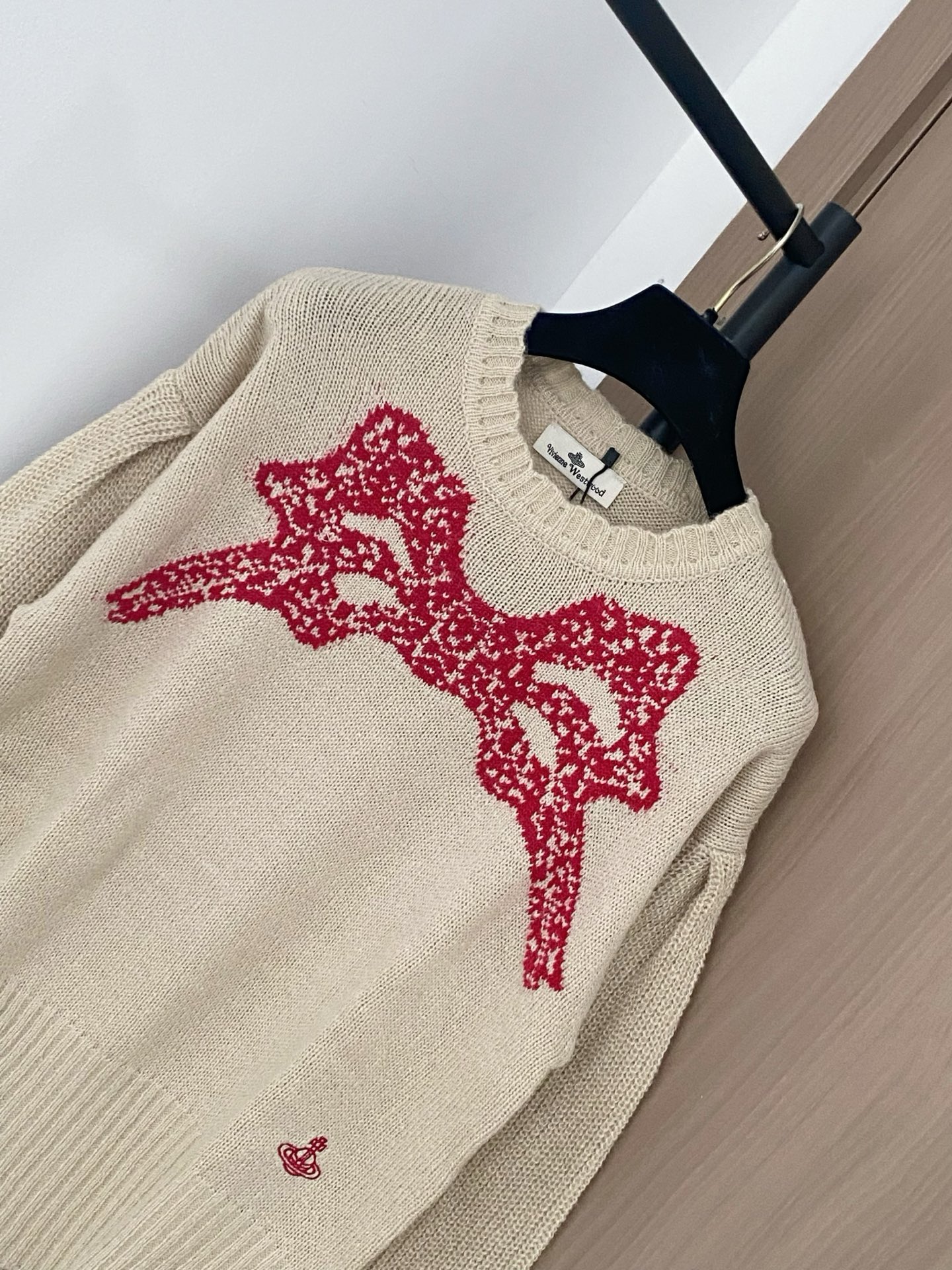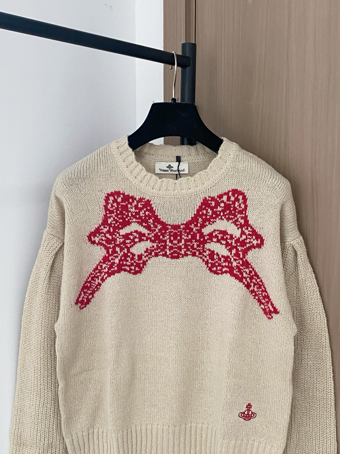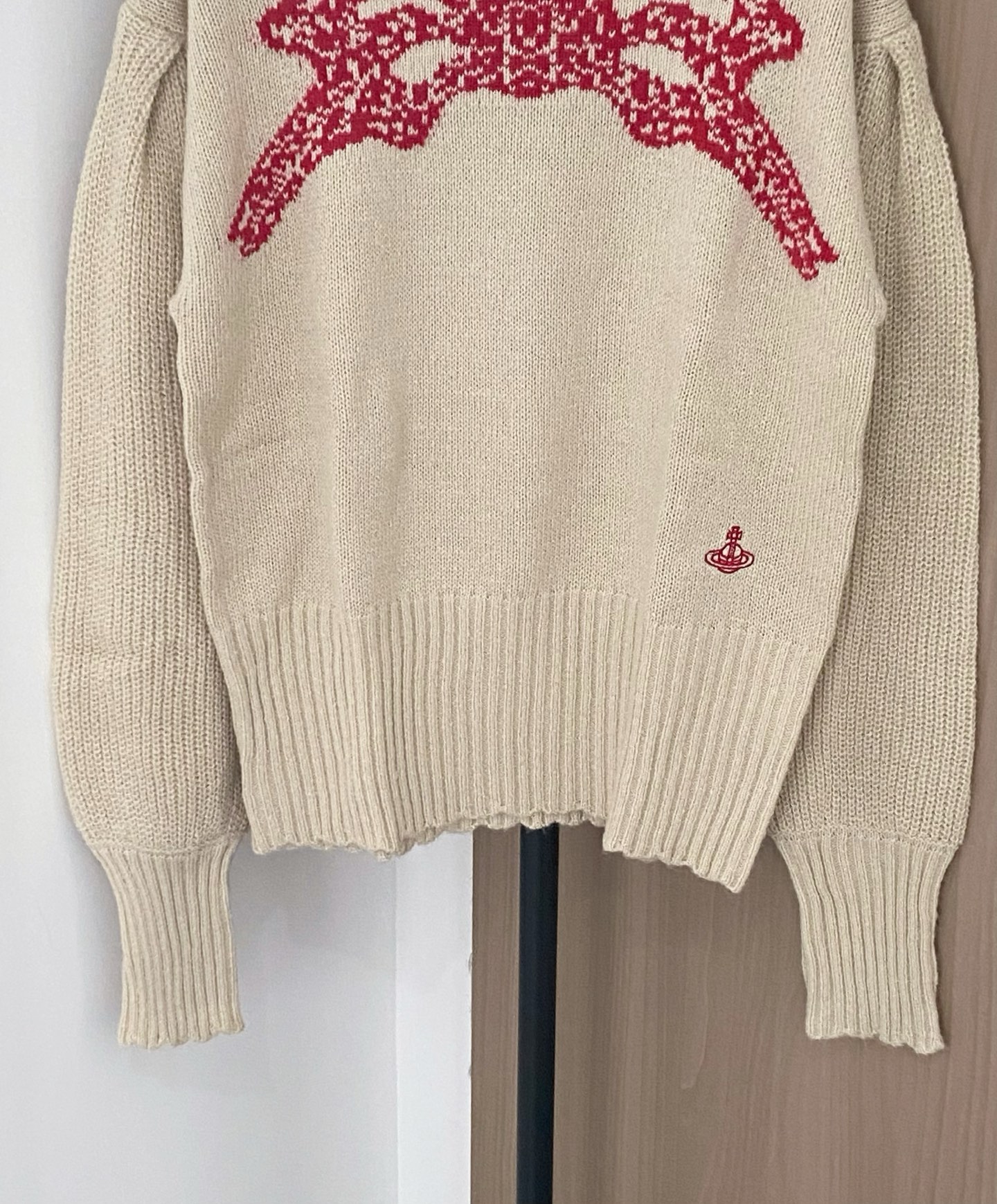 كنزة صوفية أنيقة من Vivienne Westwood، تصميم عصري بفيونكة مطرزة. مثالية لإطلالة مريحة وعصرية.
