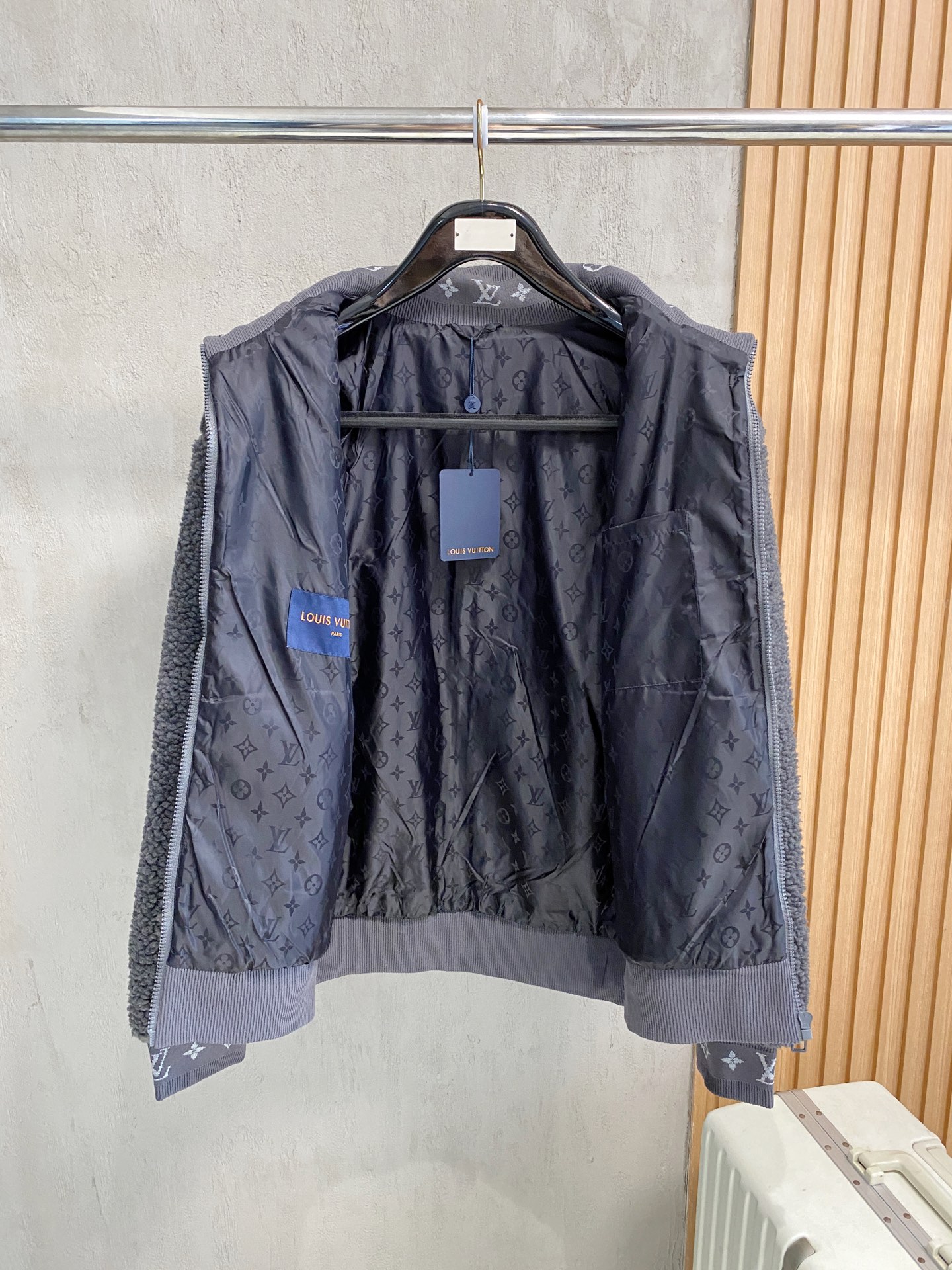 الجاكيت مصنوع من مواد عالية الجودة ويبدو رائعًا. أنا أحب التفاصيل الدقيقة مثل شعار لويس فويتون على الصدر.