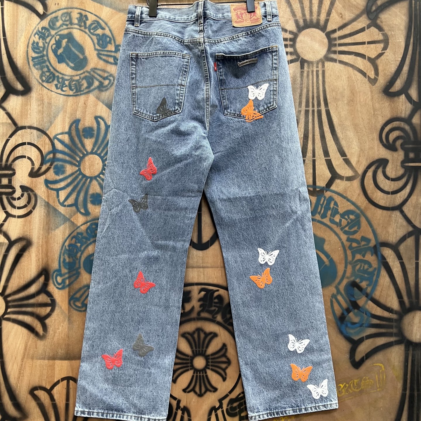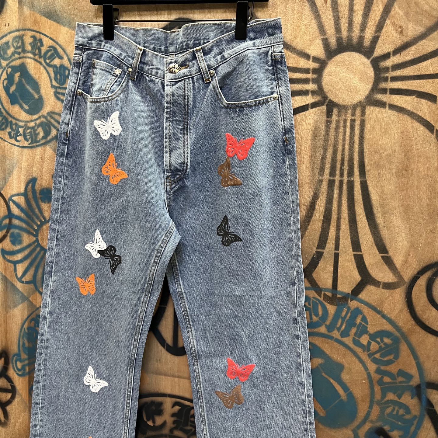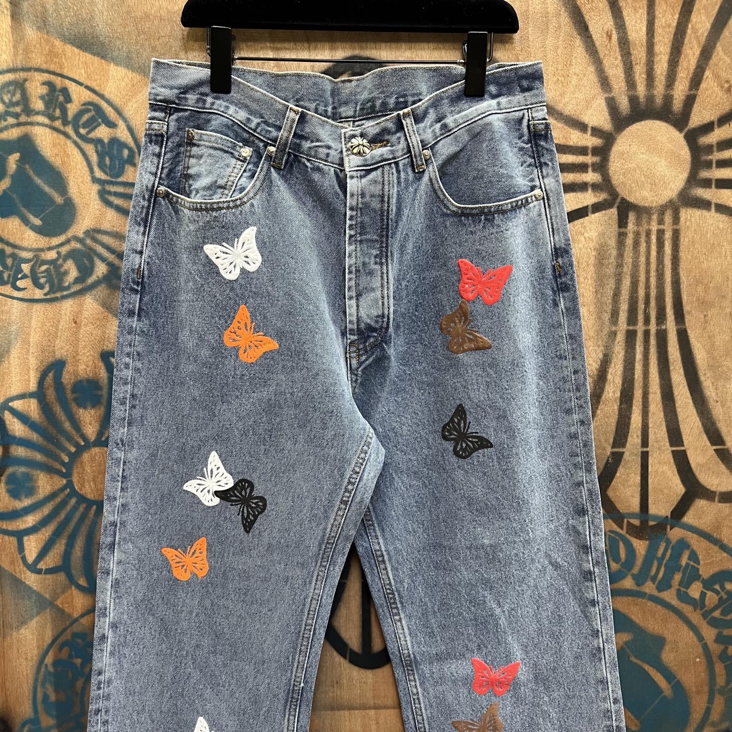 بنطلون جينز Chrome Hearts Vintage Levi's بتصميم فراشات فريد وحصري
