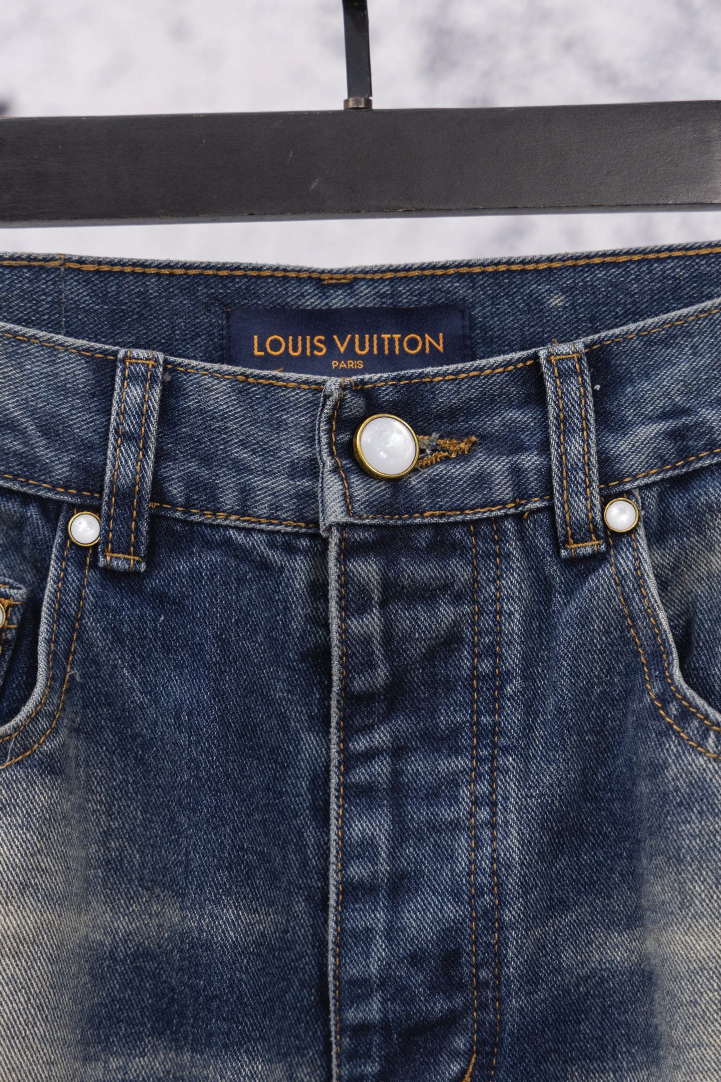 بنطلون جينز دينم أزرق كلاسيكي من لويس فويتون بتصميم عتيق مستوحى من موضة التسعينيات. مريح وأنيق لإطلالة عصرية.