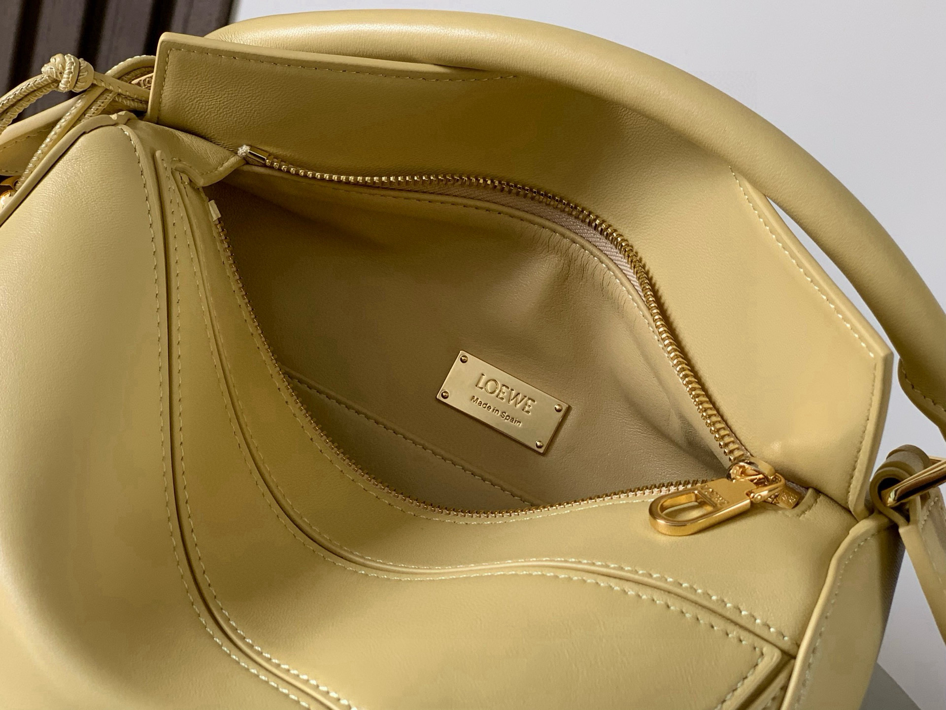 حقيبة لويفي Puzzle الصغيرة من جلد النابا باللون الأصفر الزبداني