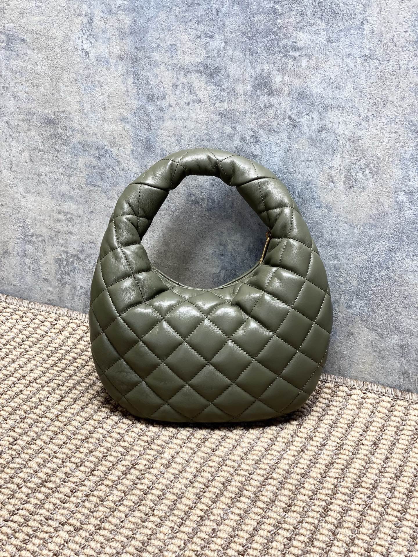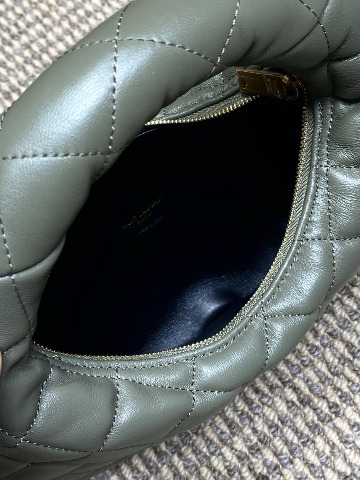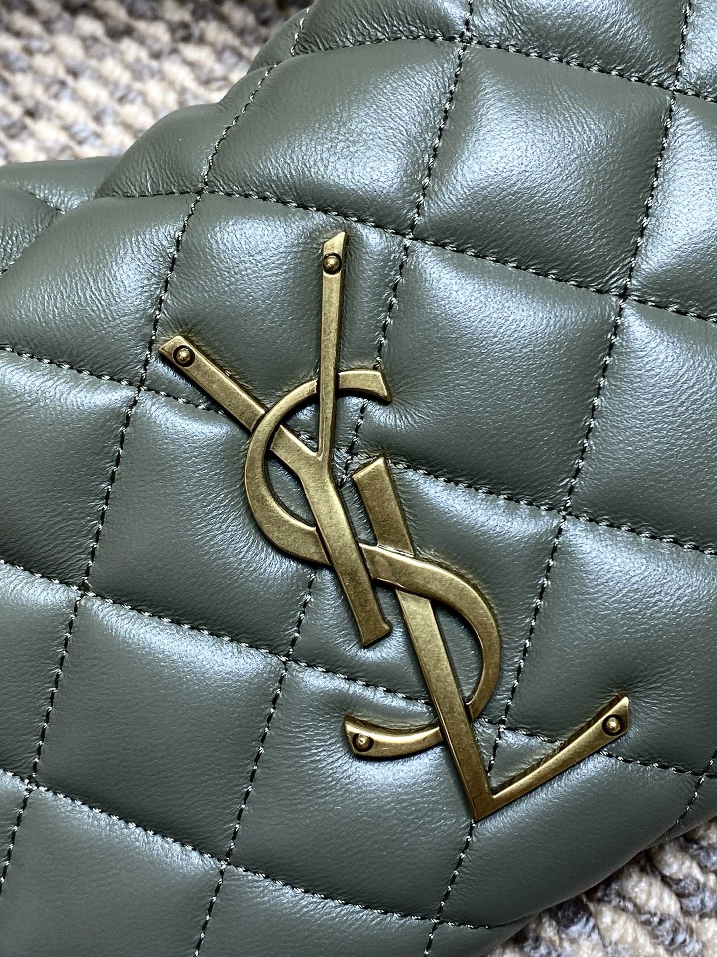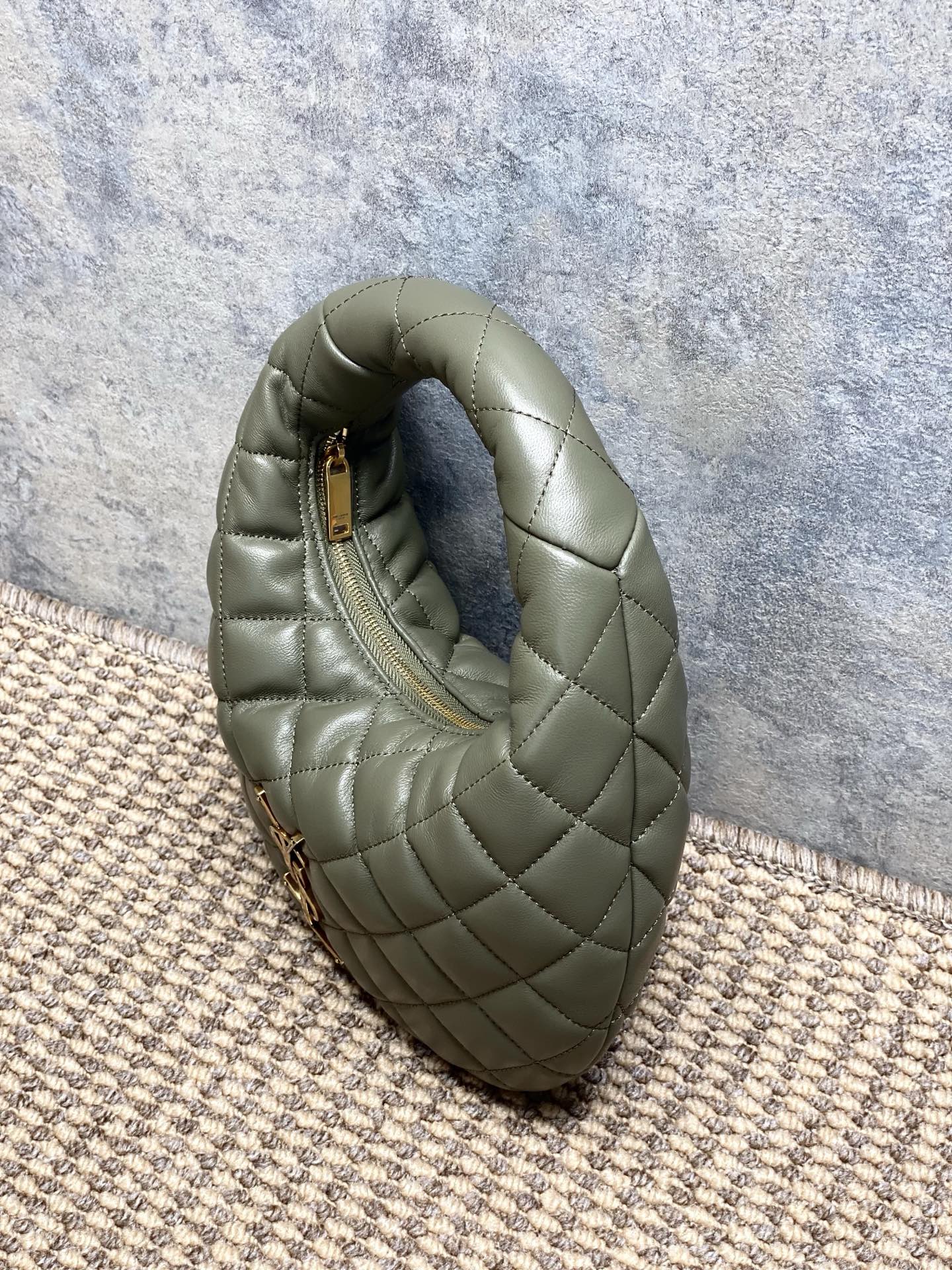 Tags: Yves Saint Laurent Baby Icare, حقيبة يد بشعار بارز, حقيبة يد جلد أصلية, حقيبة يد رمادية خضراء, حقيبة يد عصرية, حقيبة يد فاخرة