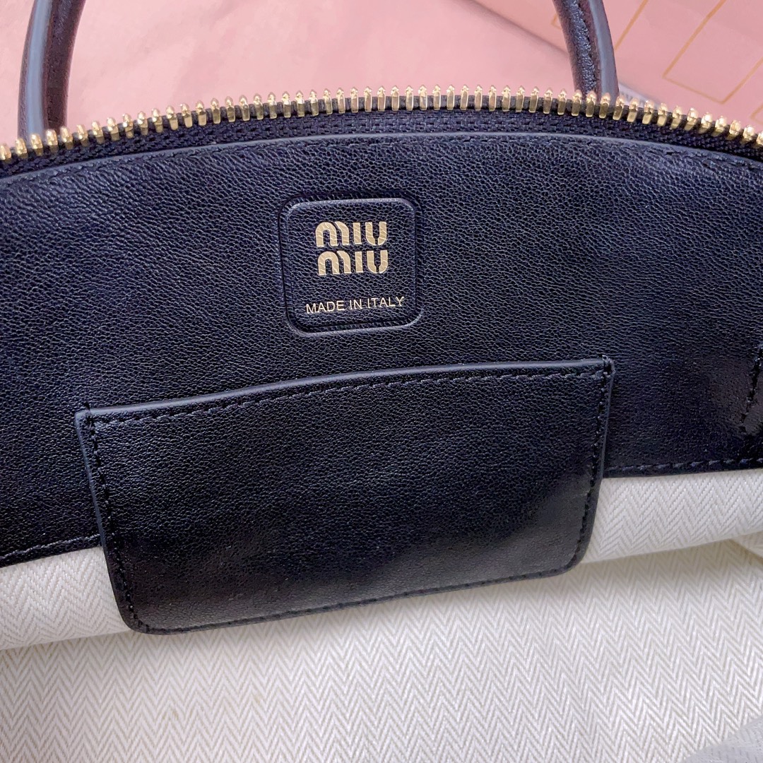 Tags: Black Leather Handbag, Designer Handbag, Elegant Leather Bag, Luxury Mini Bag, Mini Top Handle Bag, Miu Miu Aventure Nappa Leather