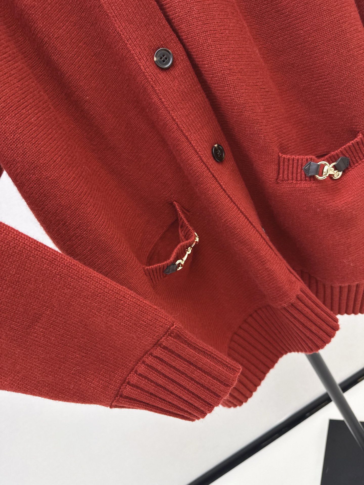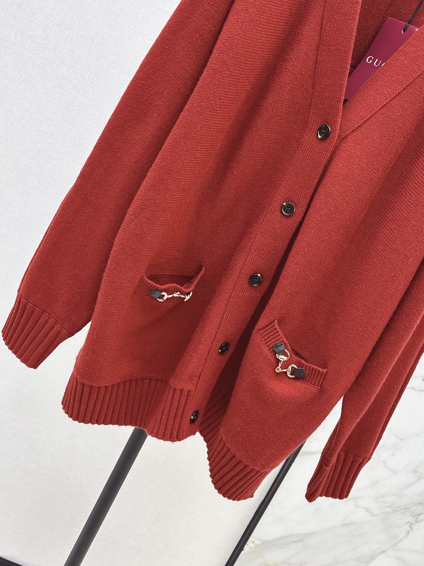 Gucci Cardigan Wool Red Horsebit Pocket Knitwear Autumn Winter - Women