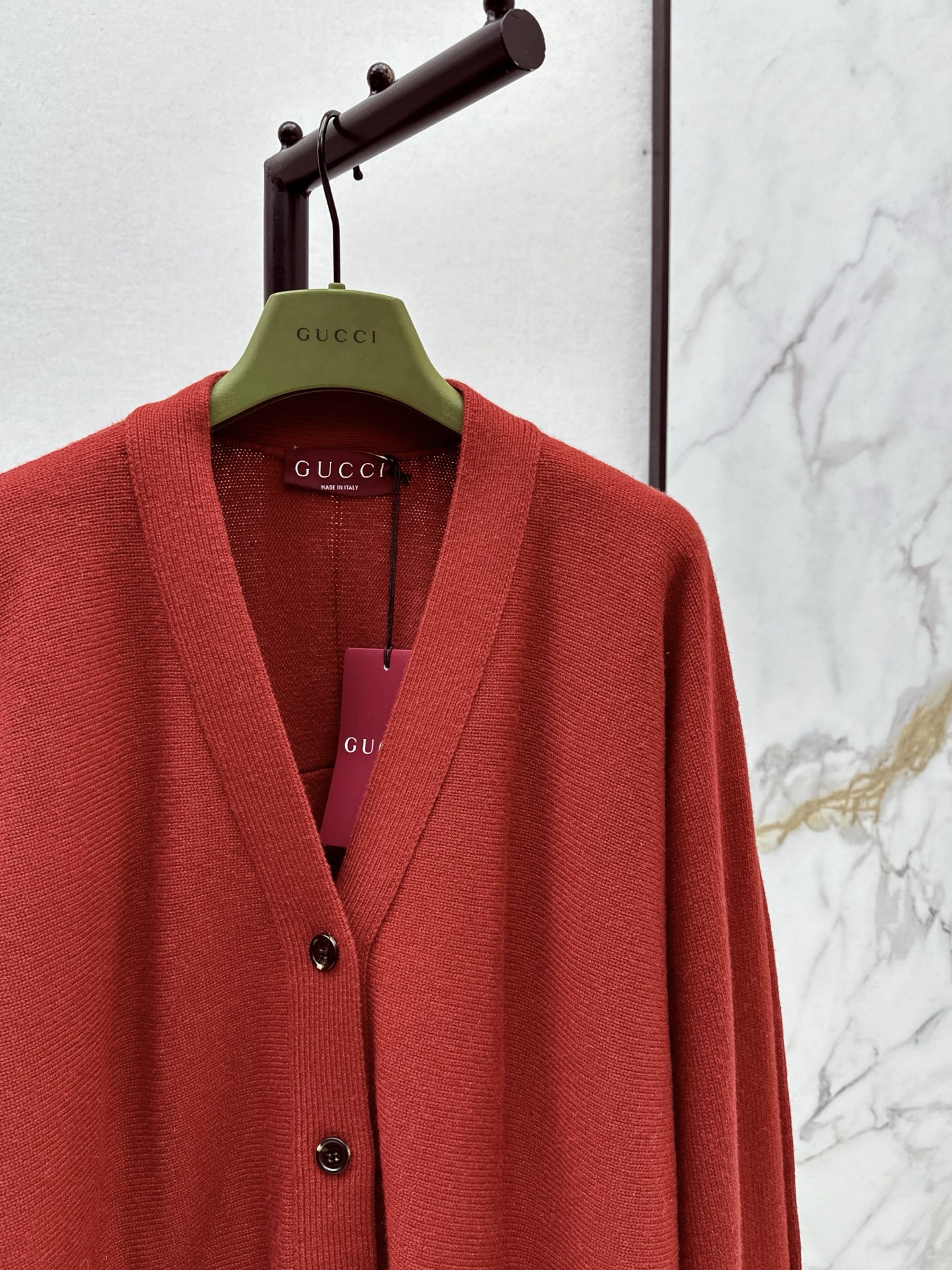إطلالة أنيقة وعصرية مع كارديجان Gucci من الصوف الأحمر. تصميم فاخر بتفاصيل دقيقة وجودة عالية.