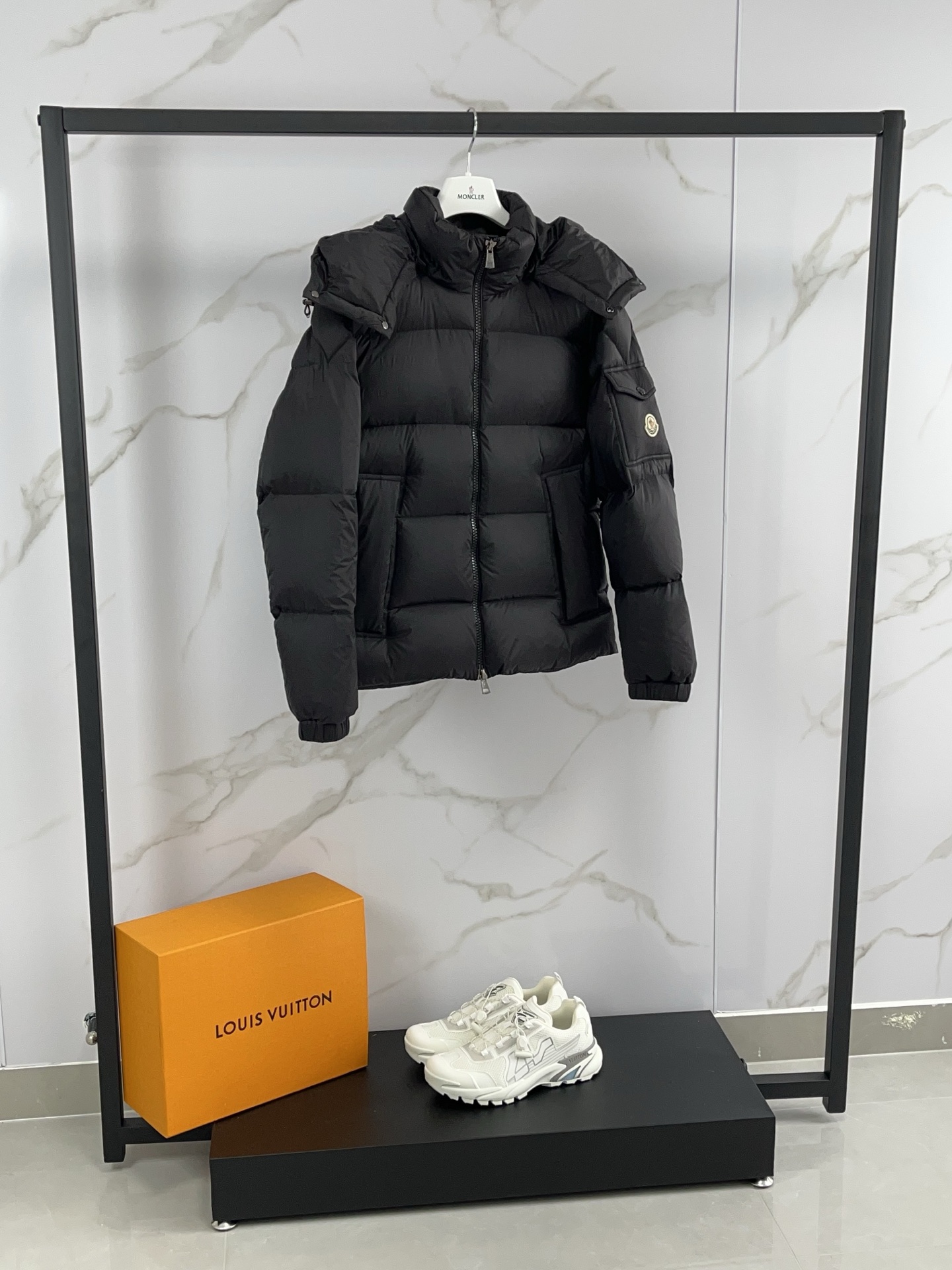 Tags: Black Padded Jacket, Detachable Hood Jacket, Men's Down Jacket, Moncler Winter Coat, Padded Outerwear, Stylish Winter Jacket