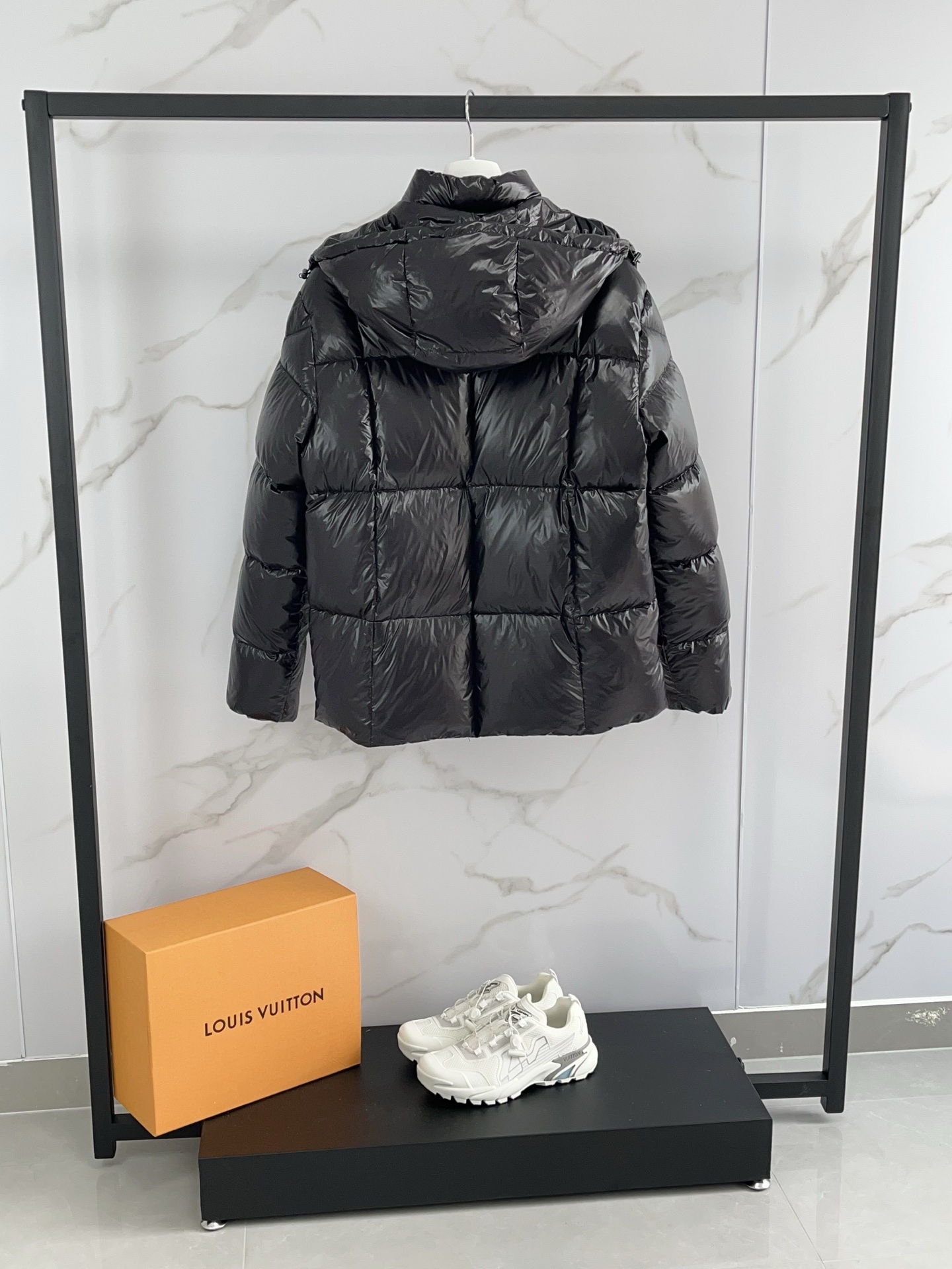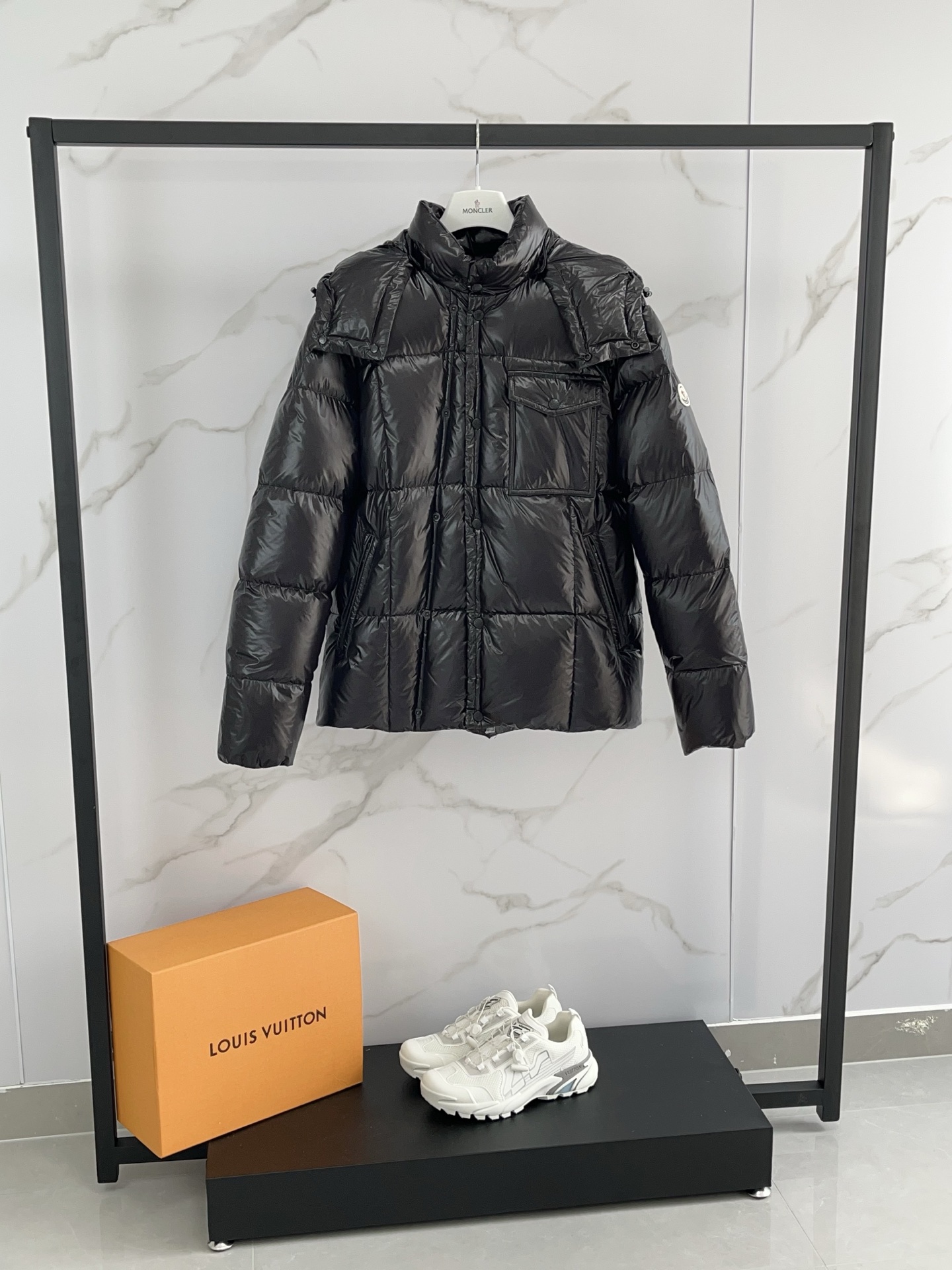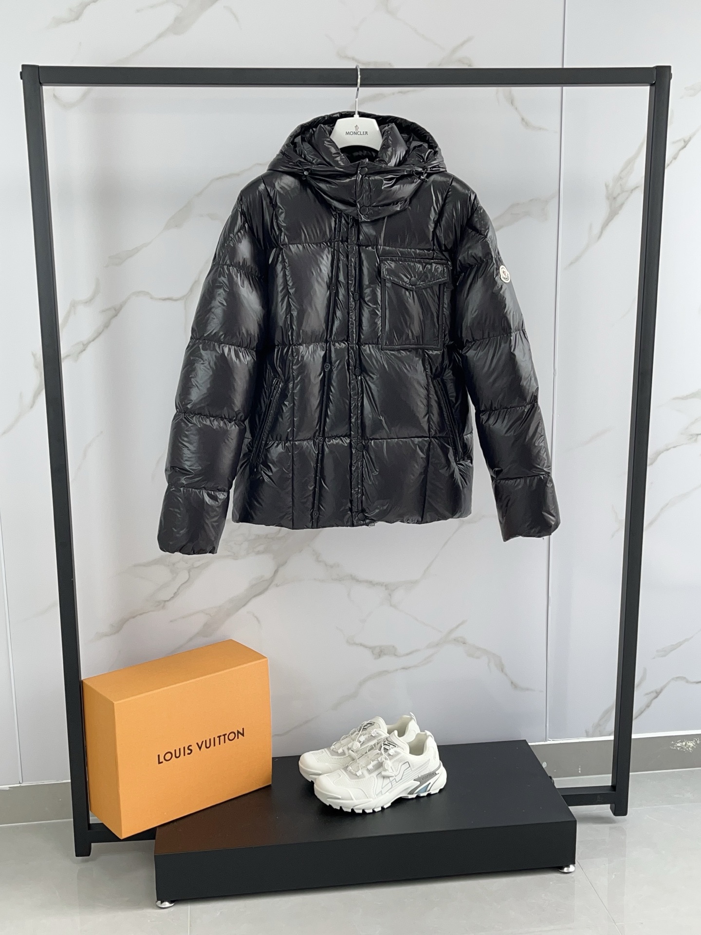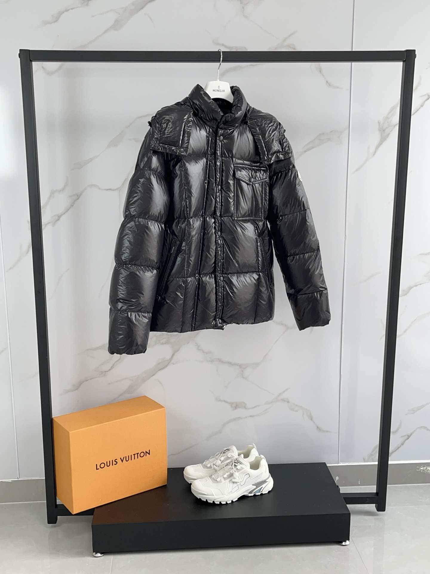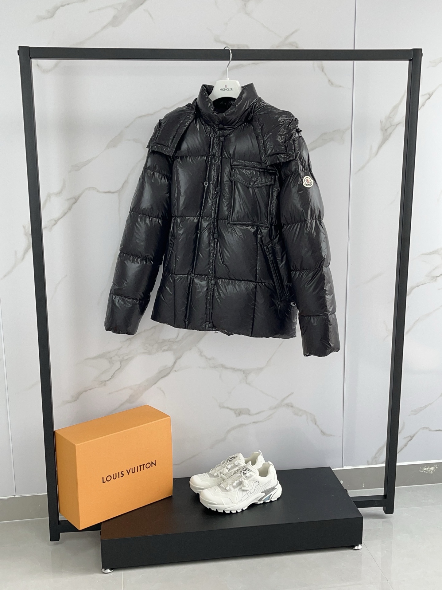 Moncler Serfanto جاكيت رجالي ونسائي بغطاء للرأس مبطن بالزغب - أسود