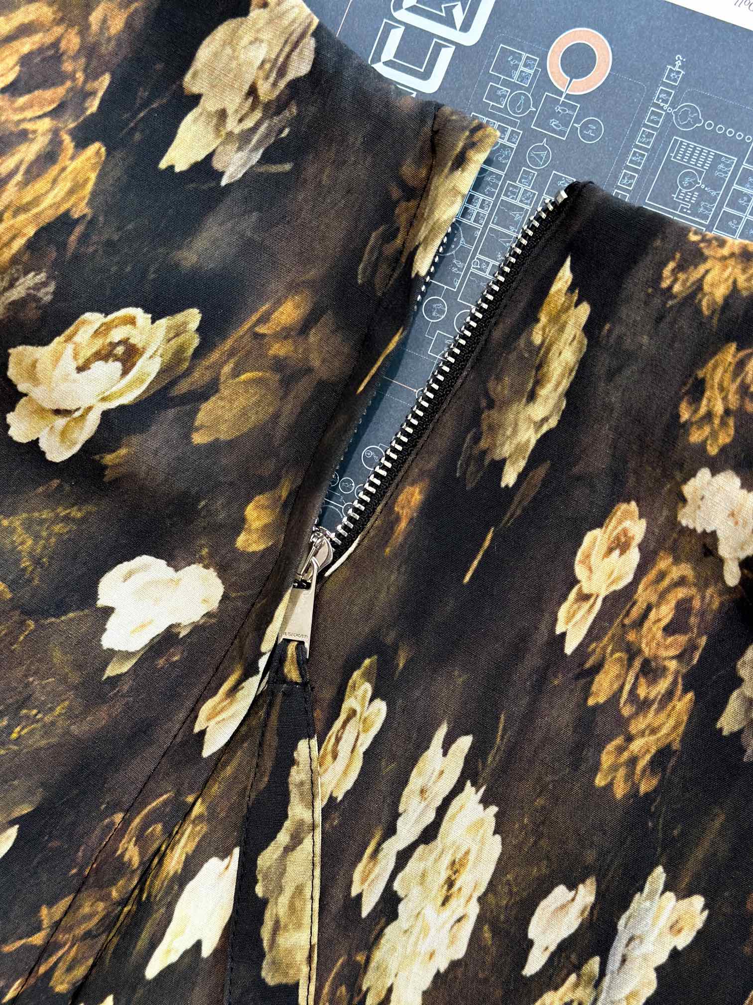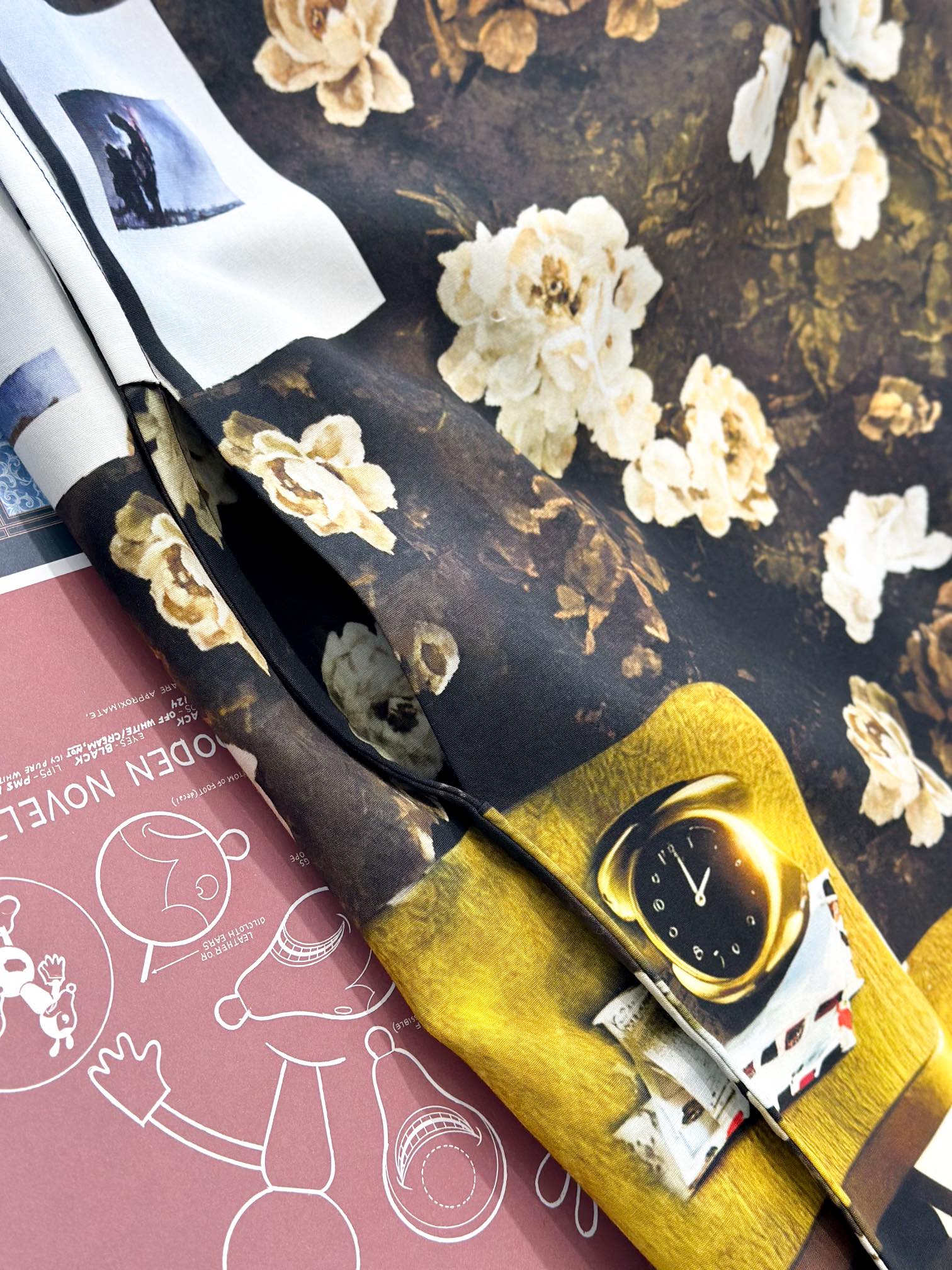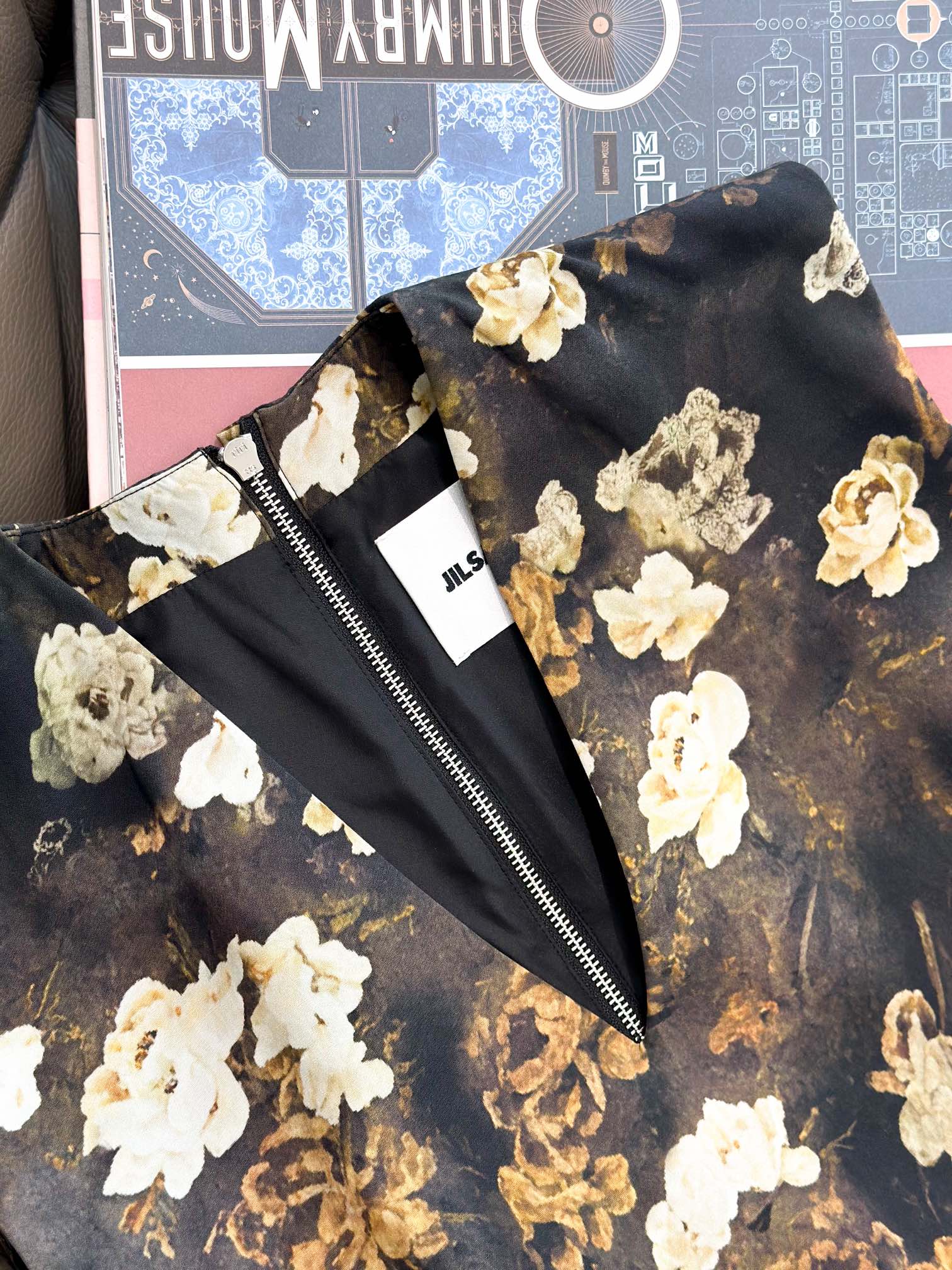 يتميز هذا الفستان الميدي من Jil Sander بطبعة صور فوتوغرافية فريدة من نوعها للمصور غريغ جيرارد، مما يجعله قطعة فنية يمكن ارتداؤها.