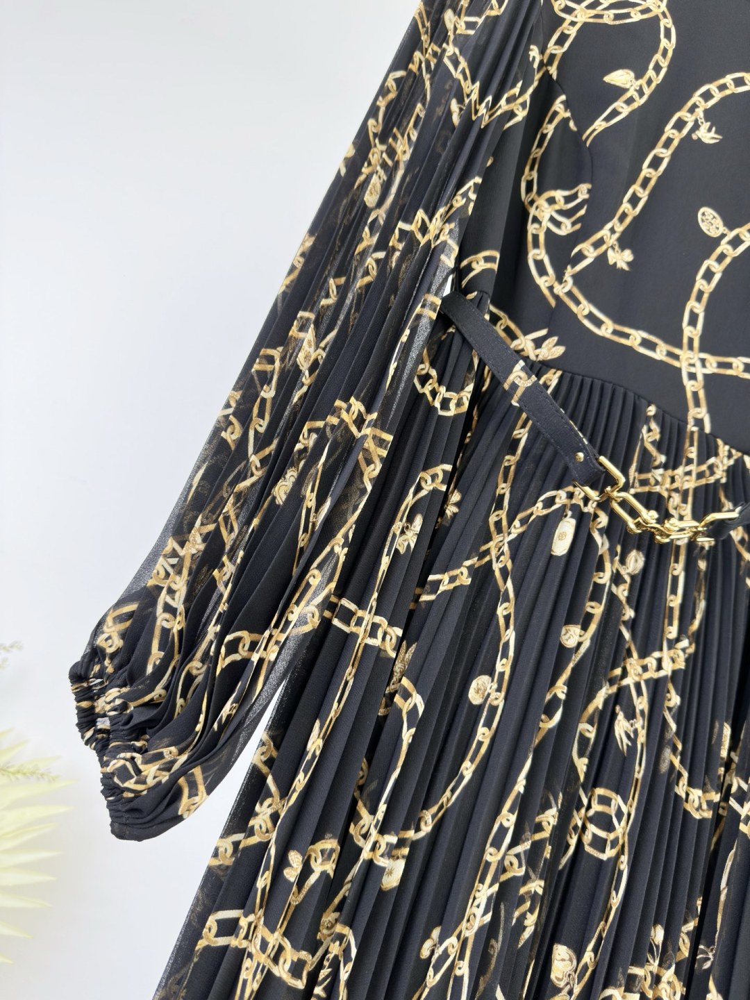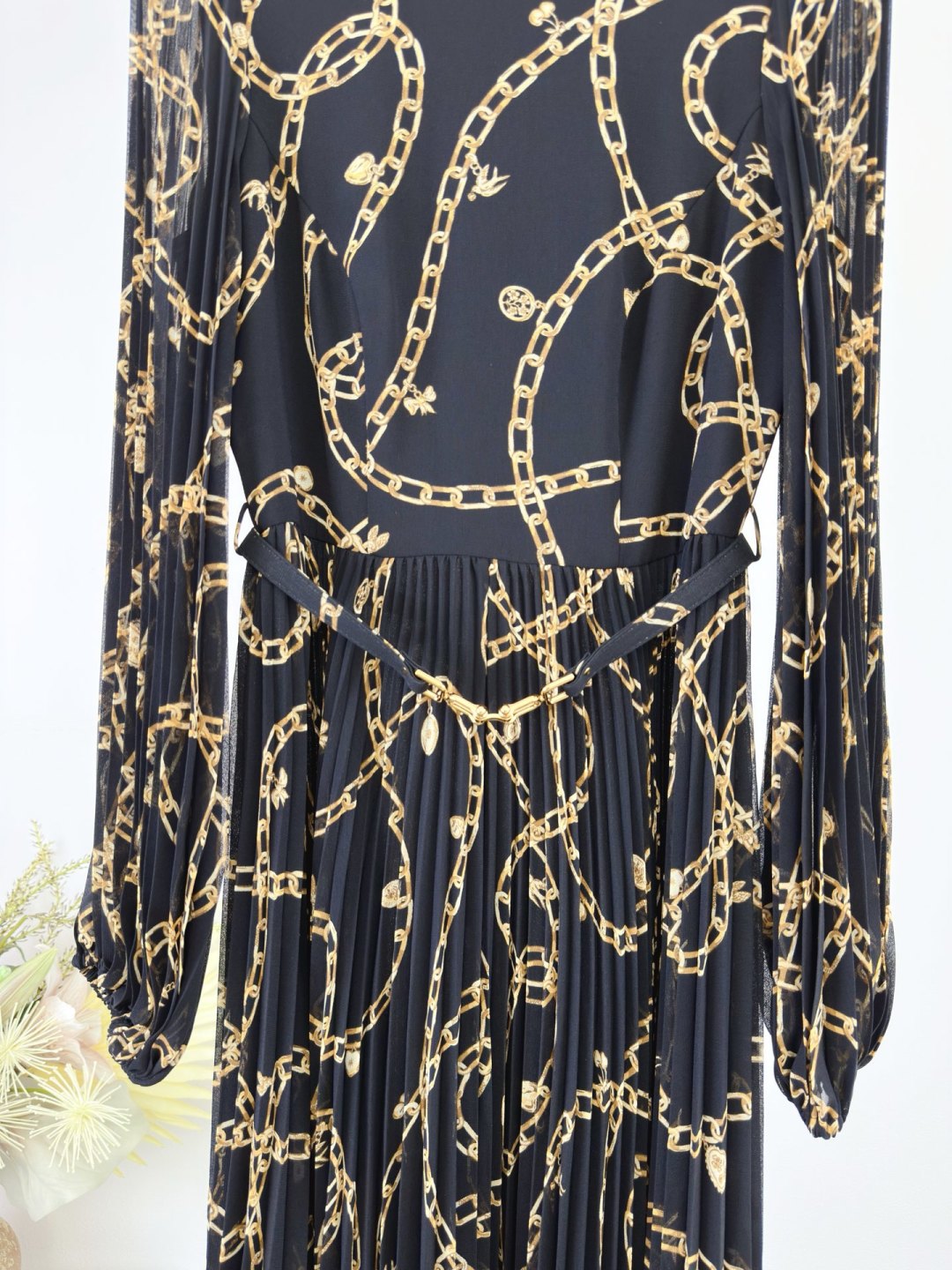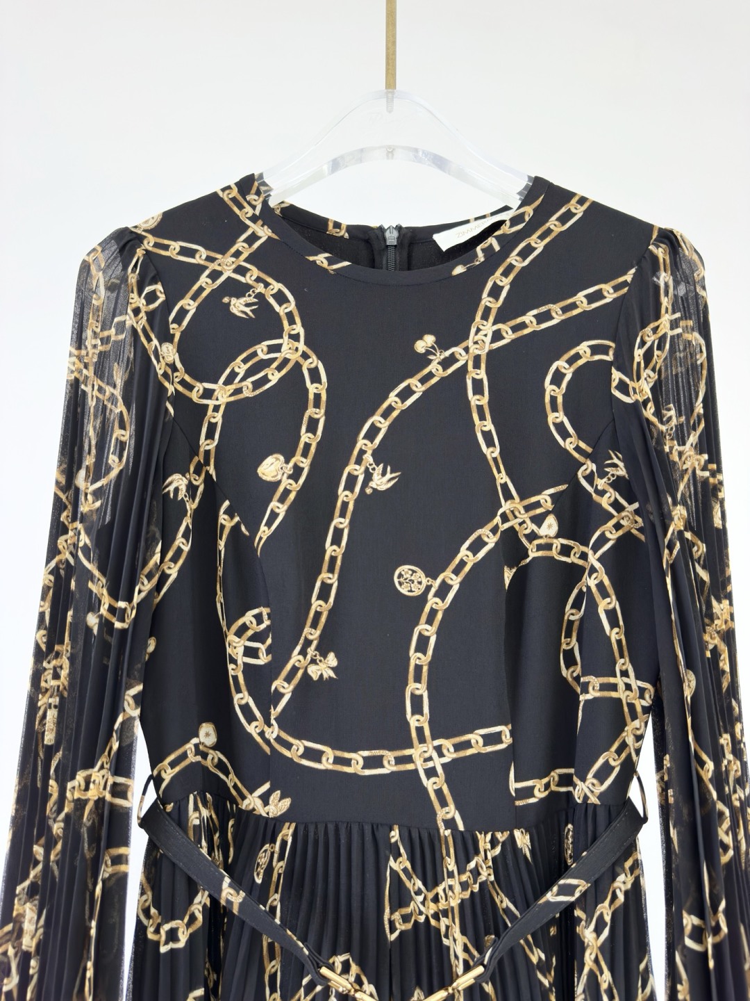 Zimmermann فستان ماكسي بطبعة سلسلة ذهبية وأكمام طويلة وخصر مربوط