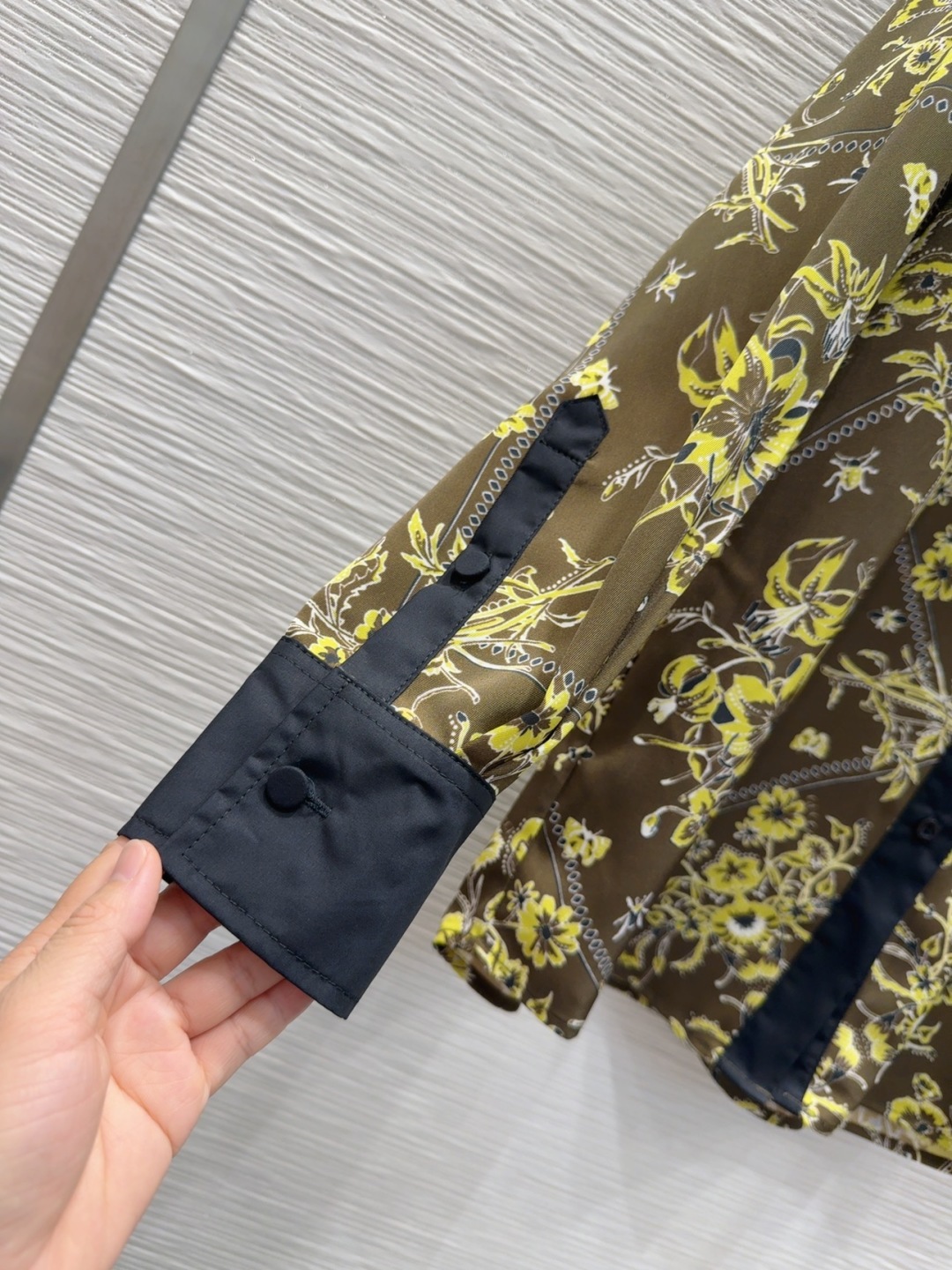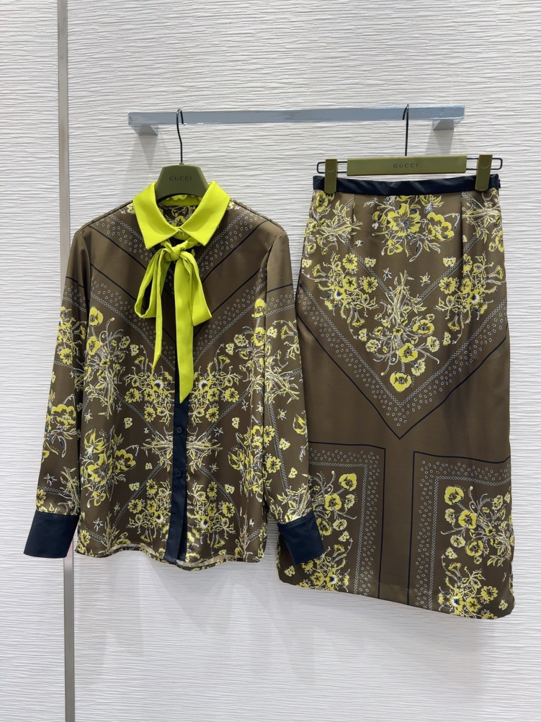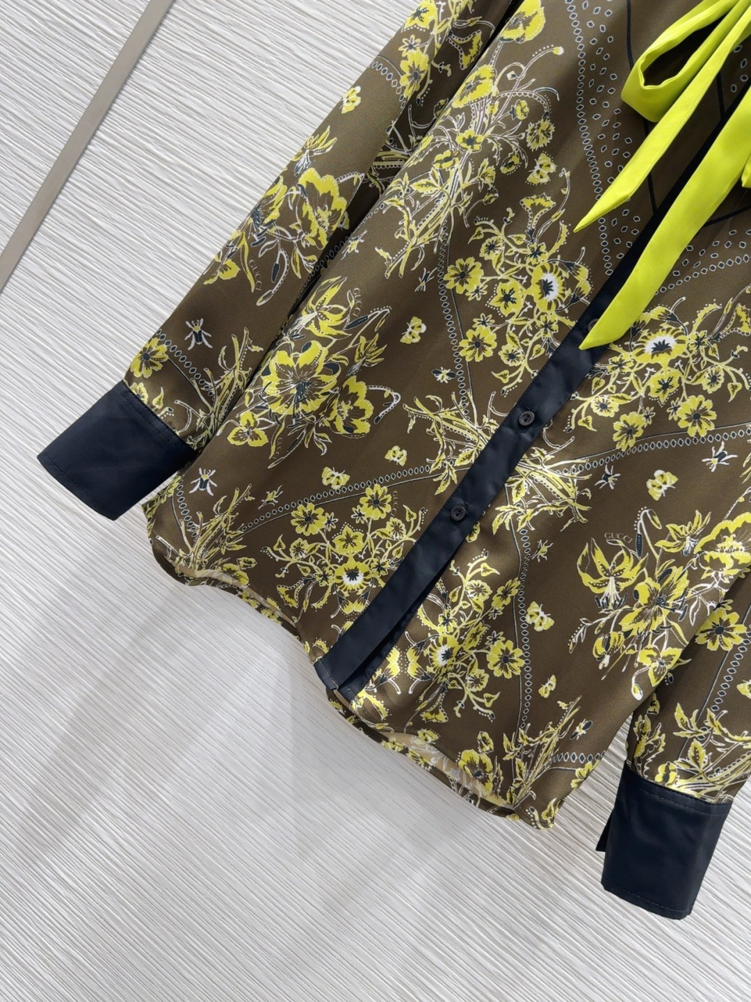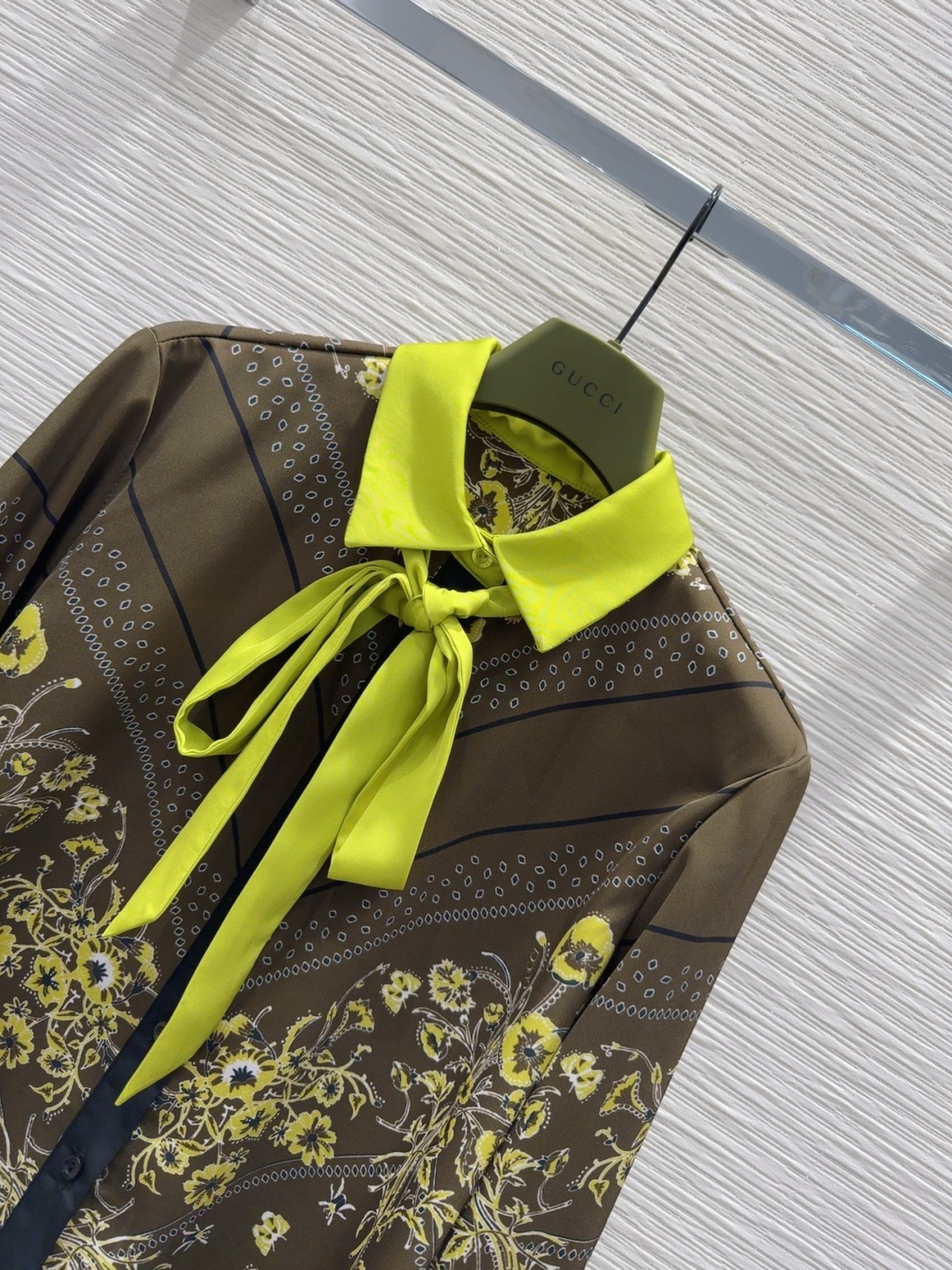 Gucci قميص نسائي فاخر بطبعة زهور وربطة عنق، تصميم عصري وجودة عالية