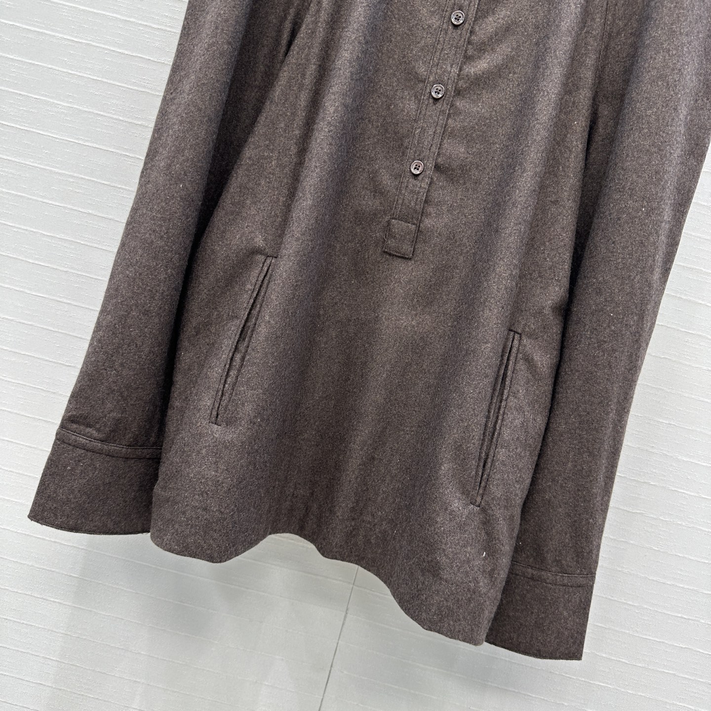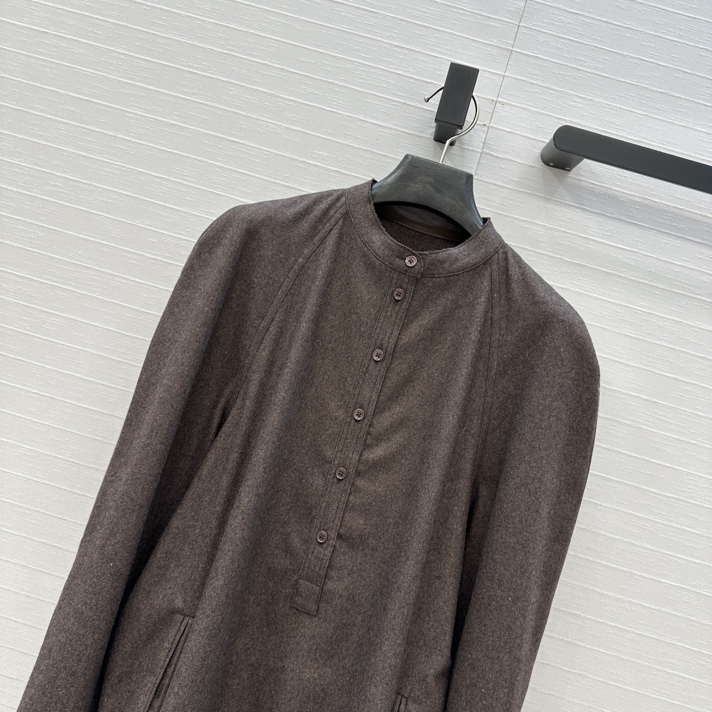 - ياقة هنري مبطنة مع نصف أزرار.