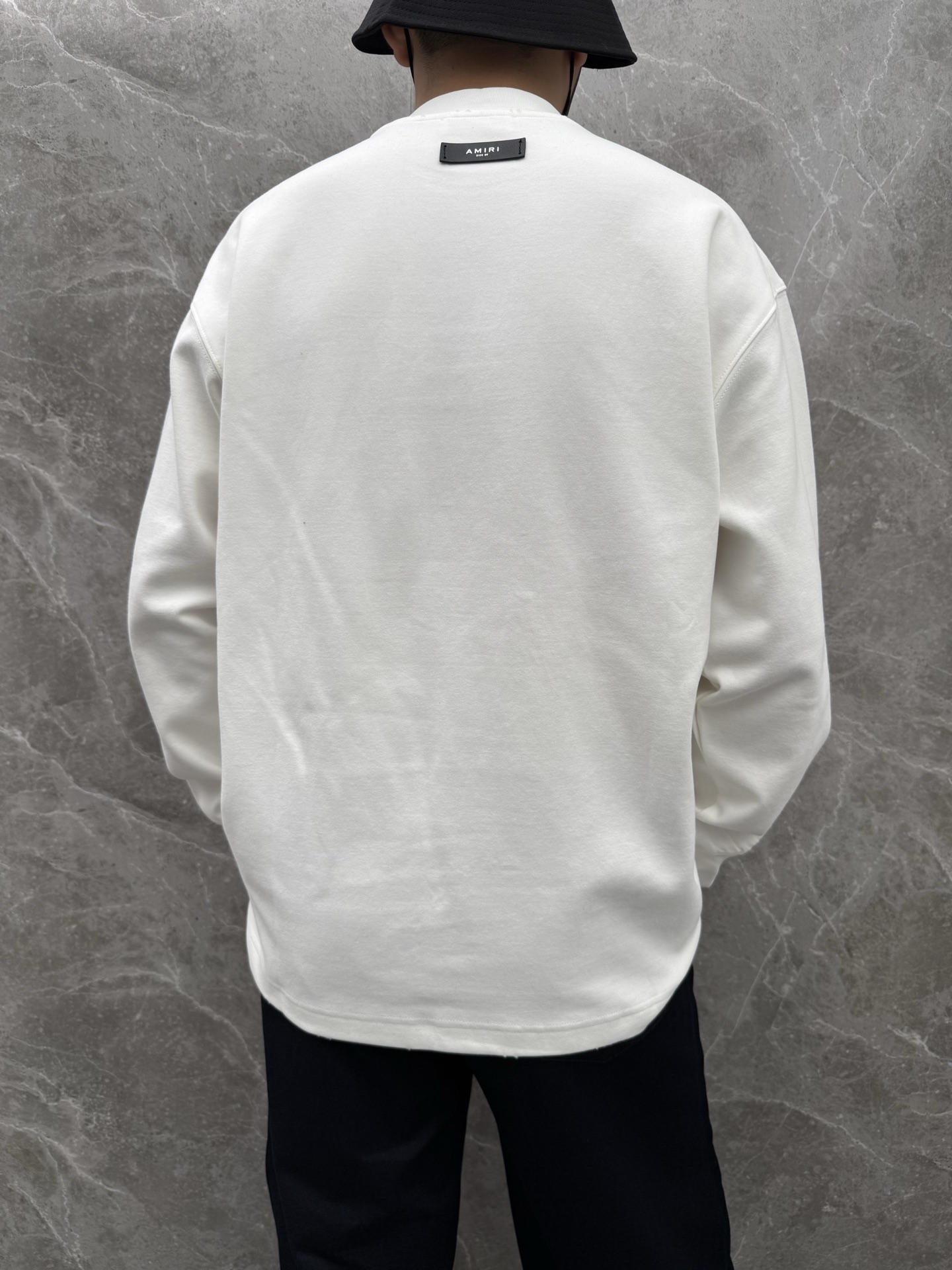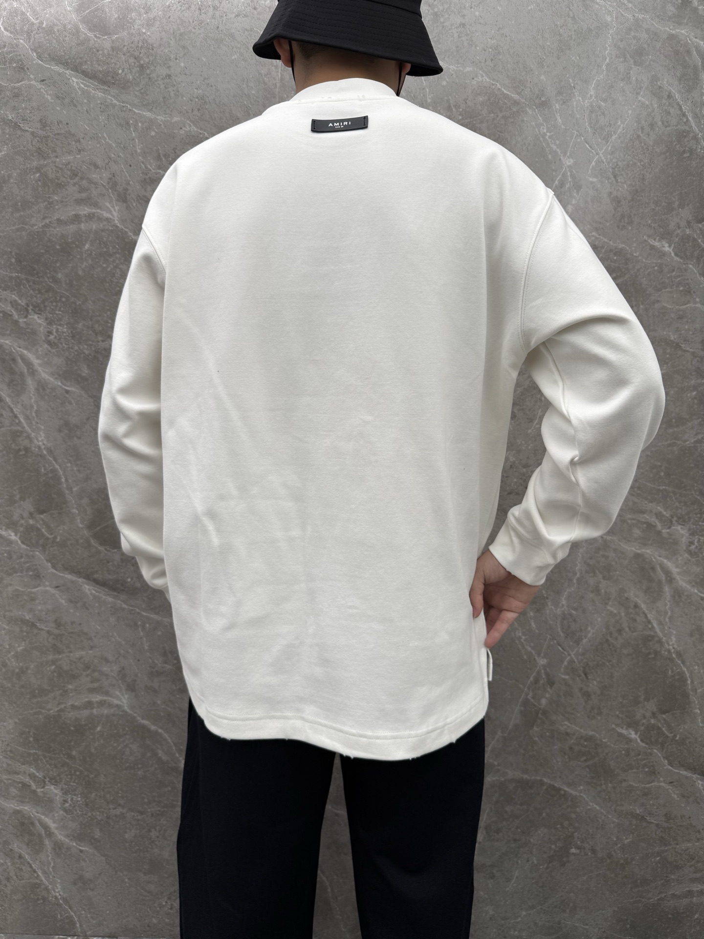 Tags: Amiri Long Sleeve Shirt, Casual Long Sleeve Tee, Cotton Long Sleeve Top, Designer Men's Shirt, Men's White T-Shirt
