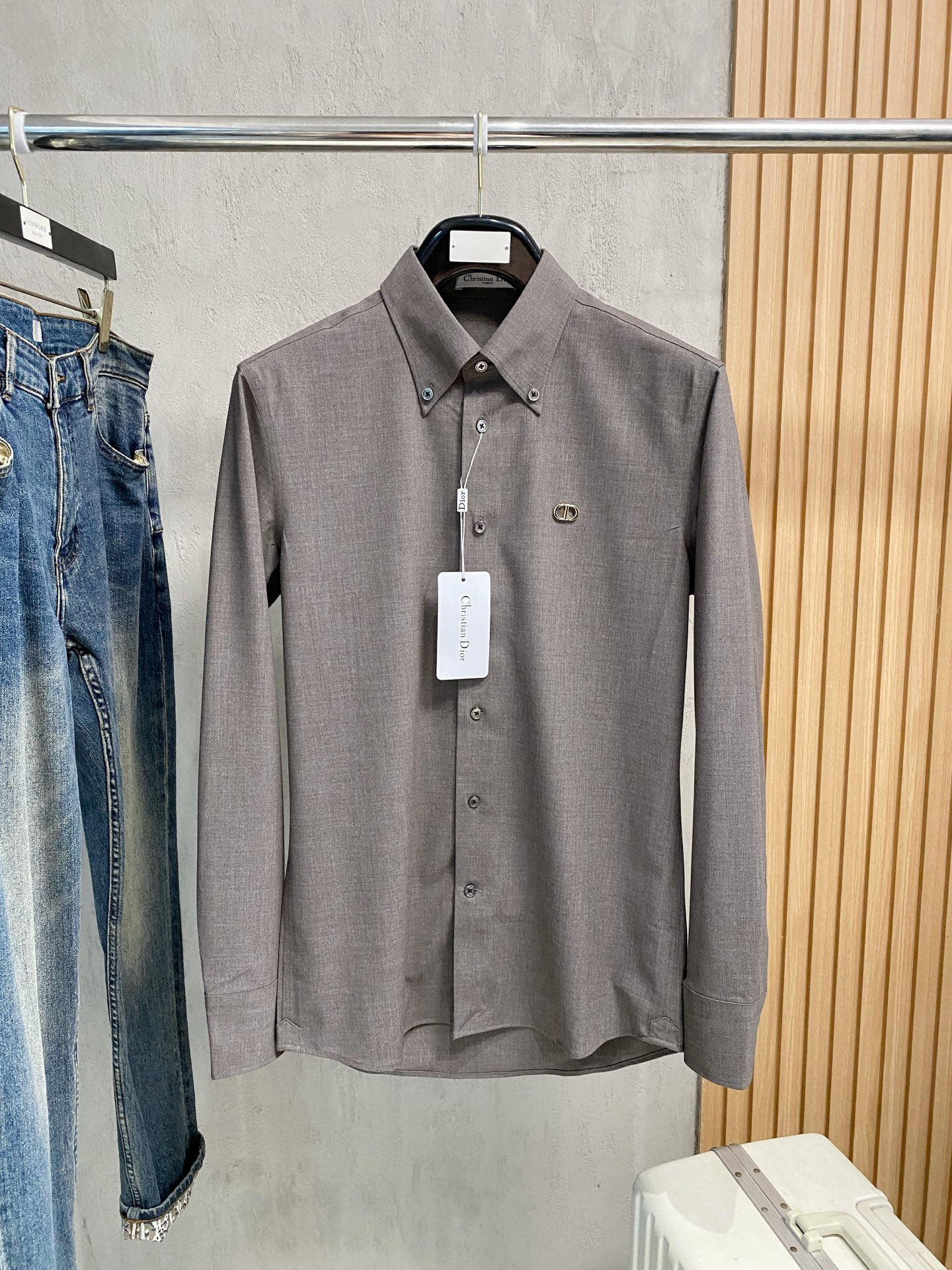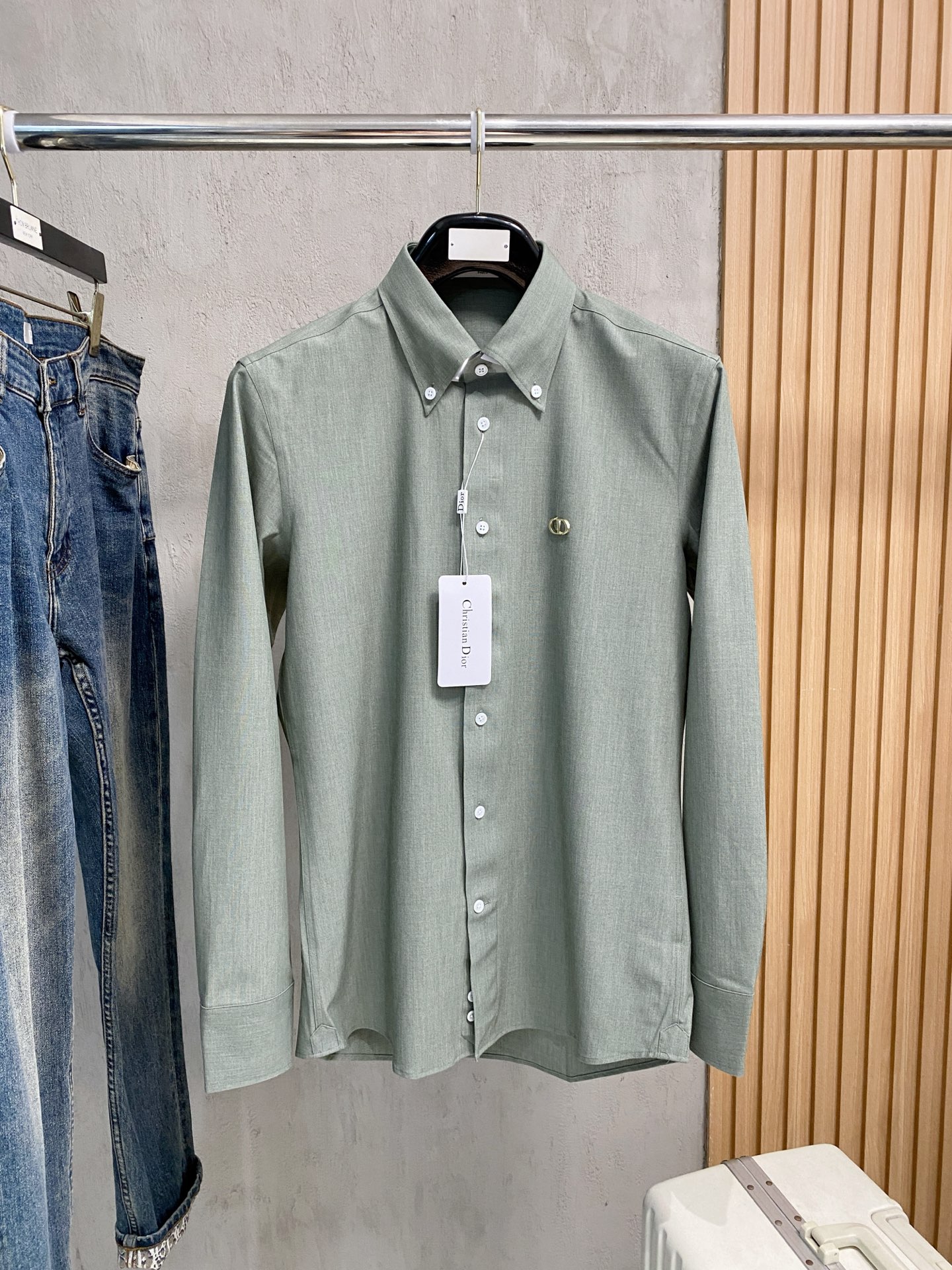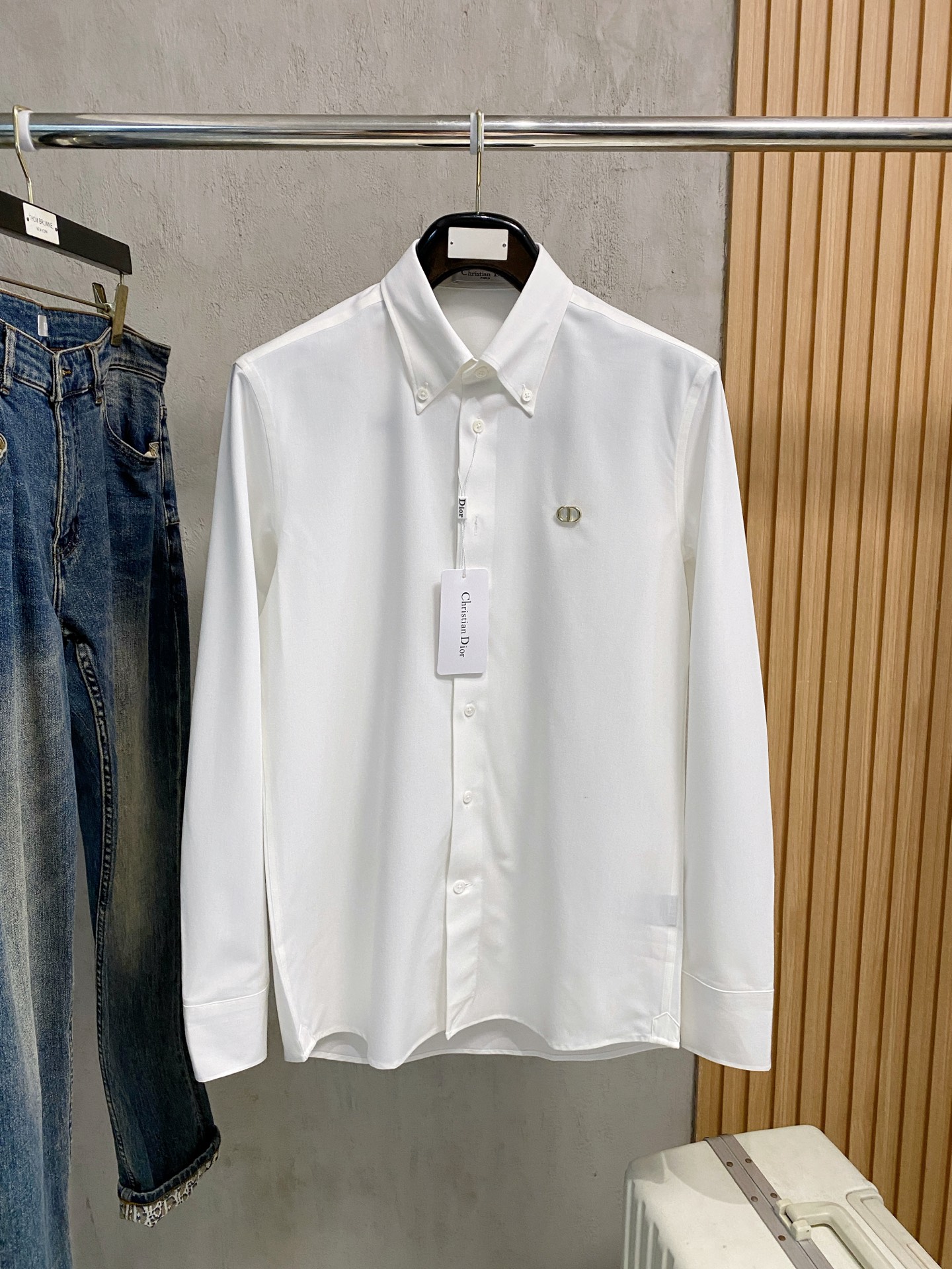 Dior قميص رجالي بأكمام طويلة - تصميم مطرز وشعار فاخر