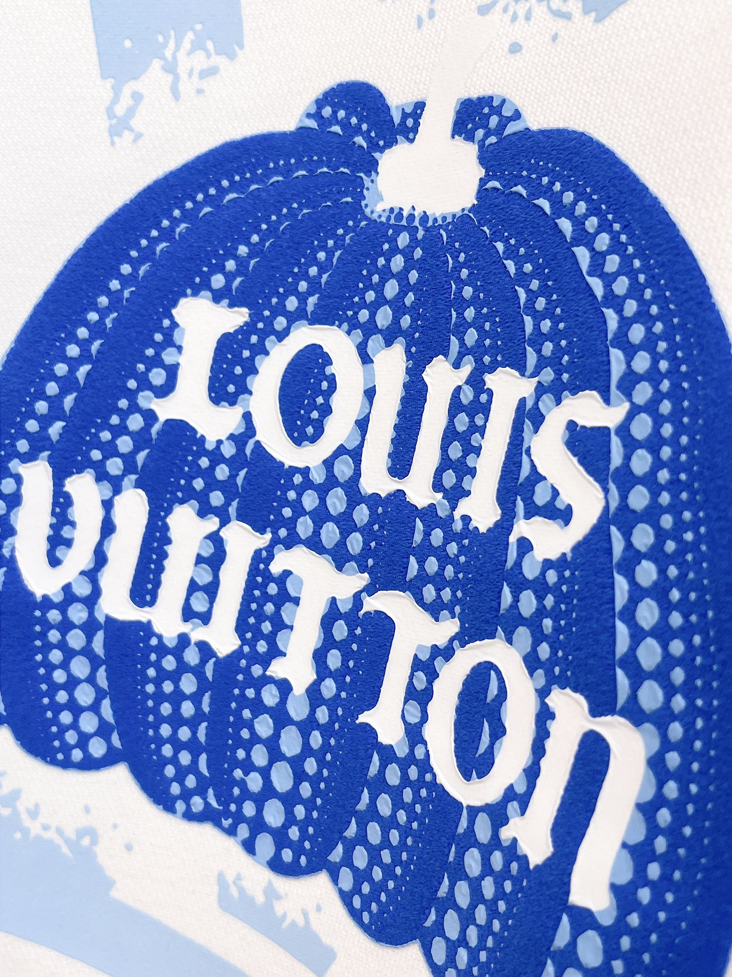 Louis Vuitton Men's White Cotton Sweatshirt with Blue Logo Print