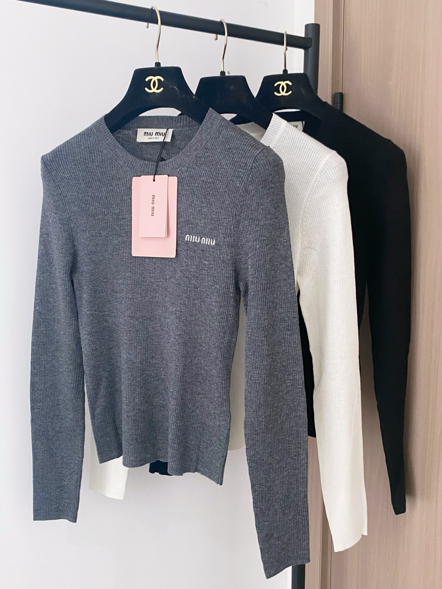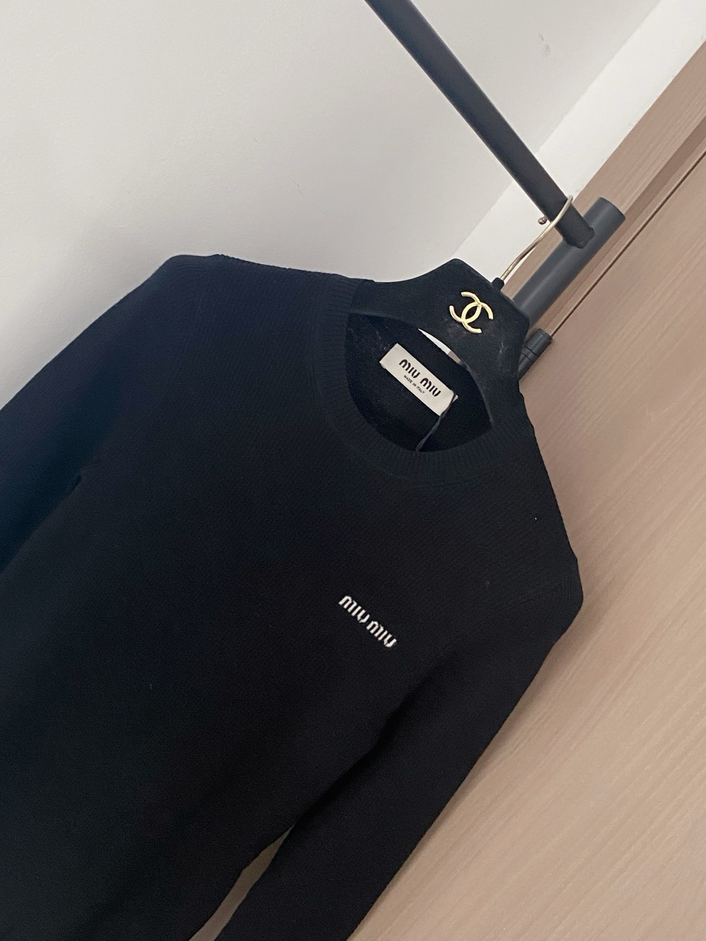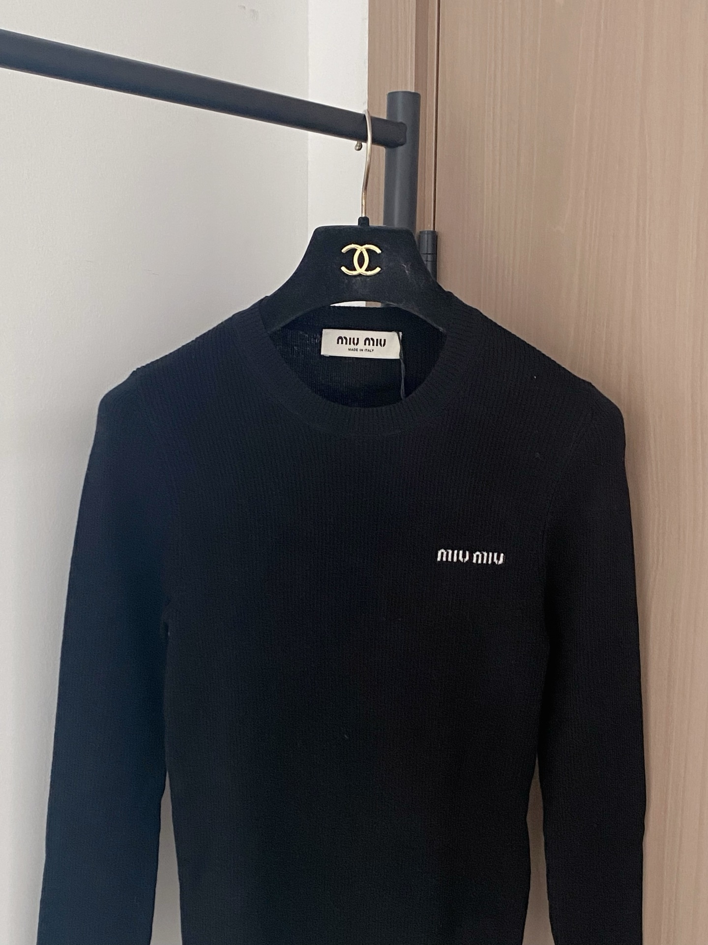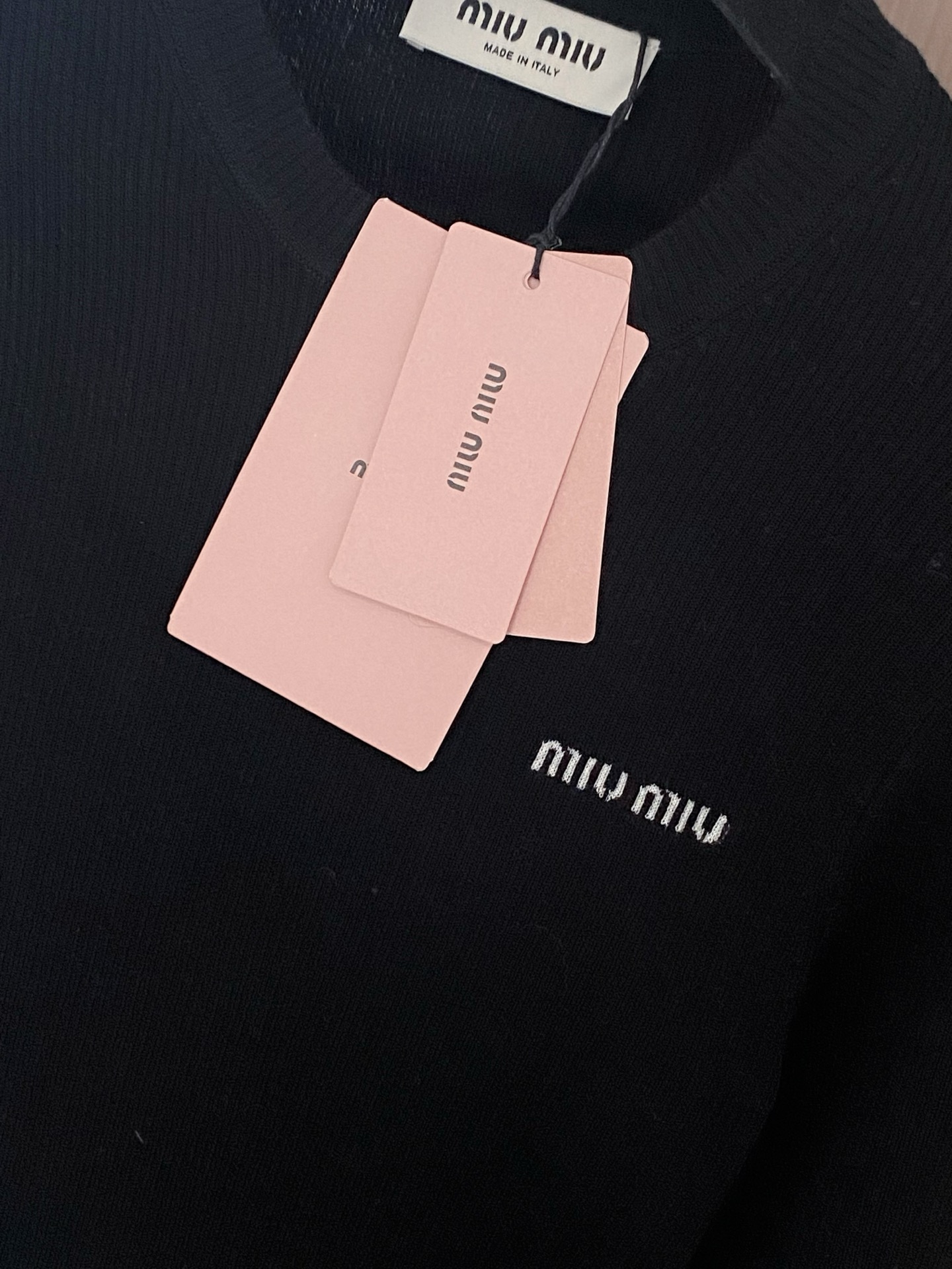 Tags: Black Knit Top, Designer long sleeve top, Embroidered Logo Top, Luxury Women's Top, Miu Miu Long Sleeve Top