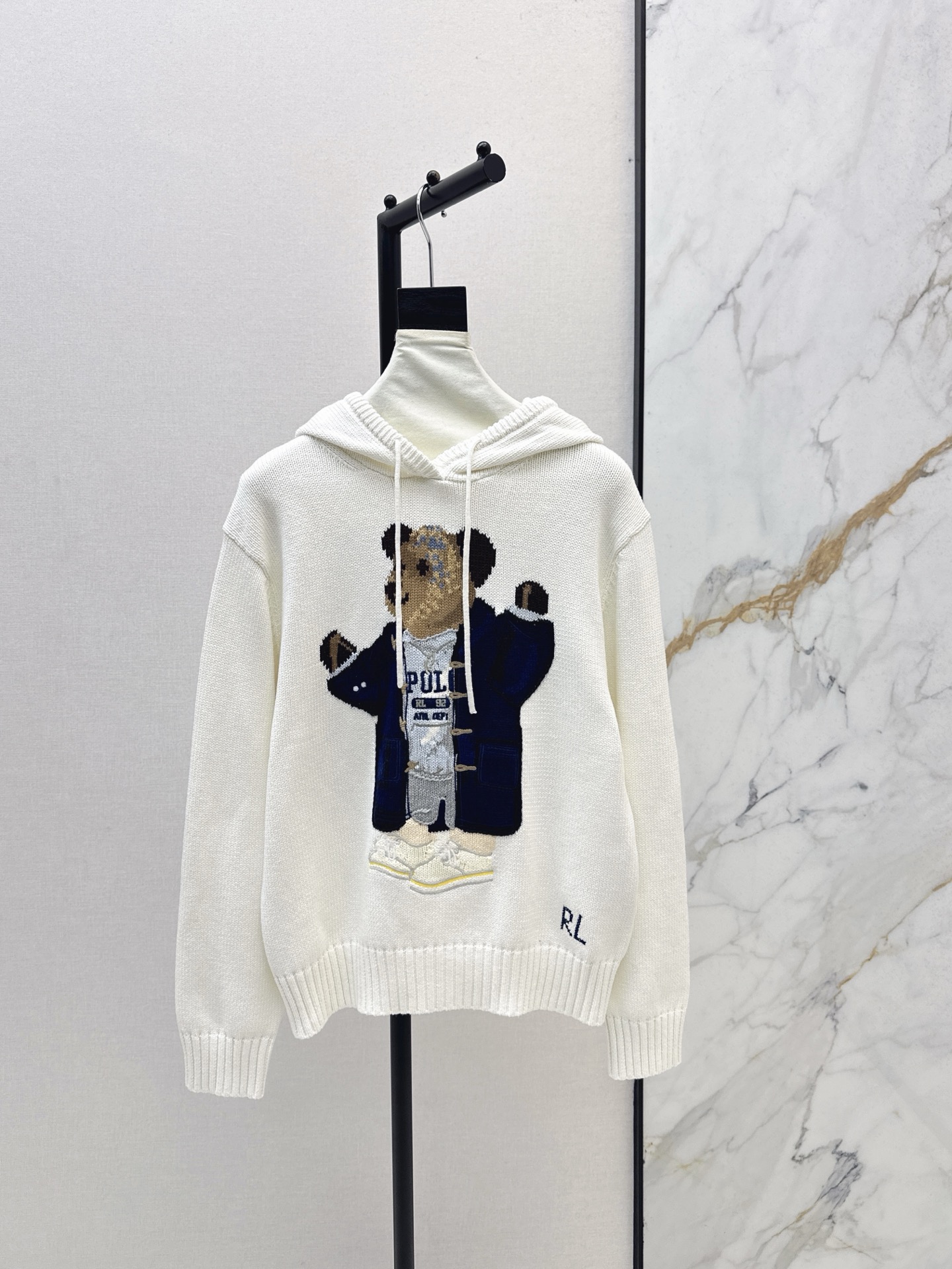 RL كنزة صوفية بغطاء للرأس بتصميم دب بحار لطيف، أحدث إصدارات خريف وشتاء 2025