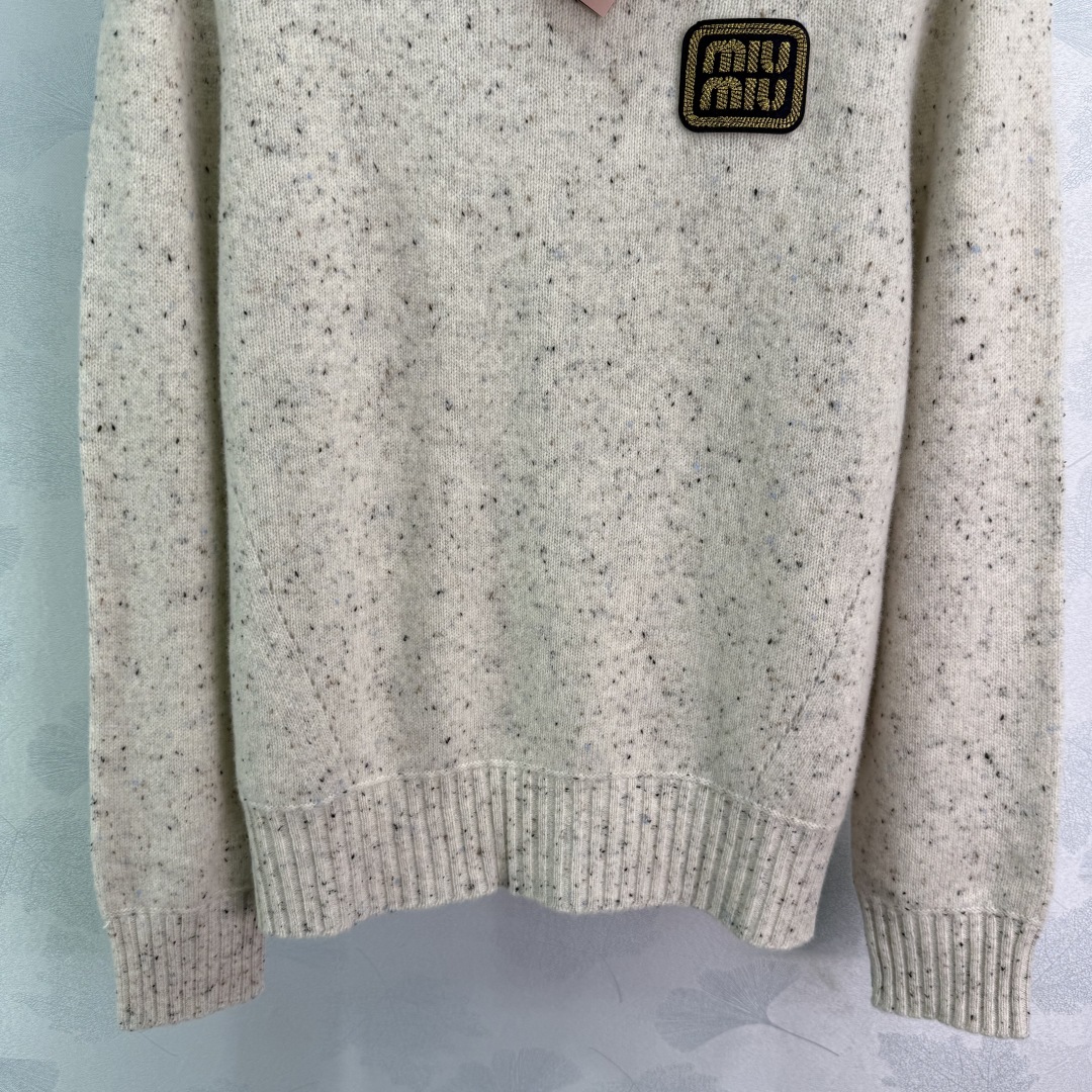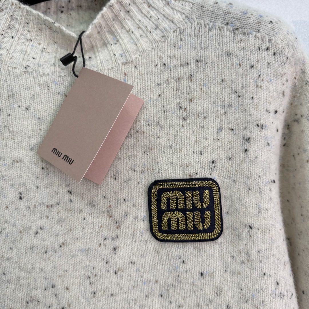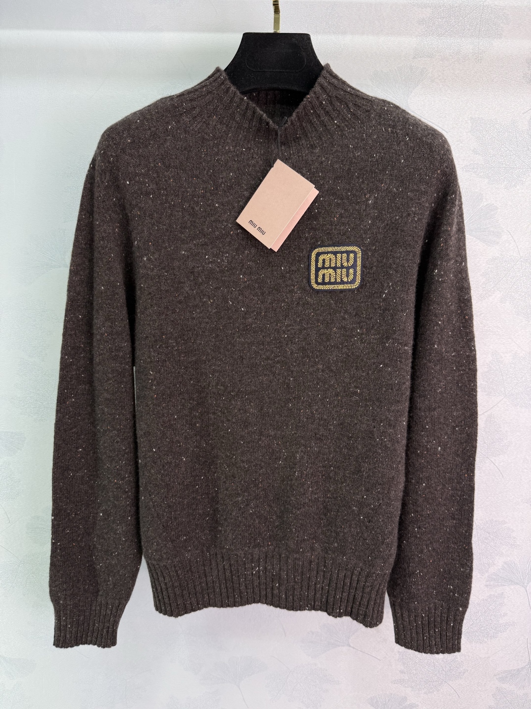 كنزة صوفية مطرزة بخيوط ذهبية من Miu Miu لخريف وشتاء 2025