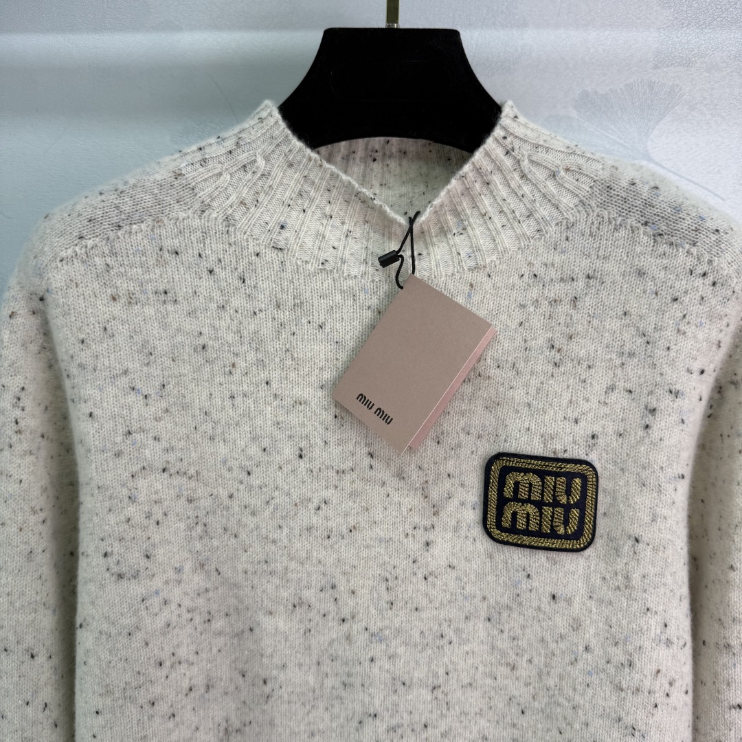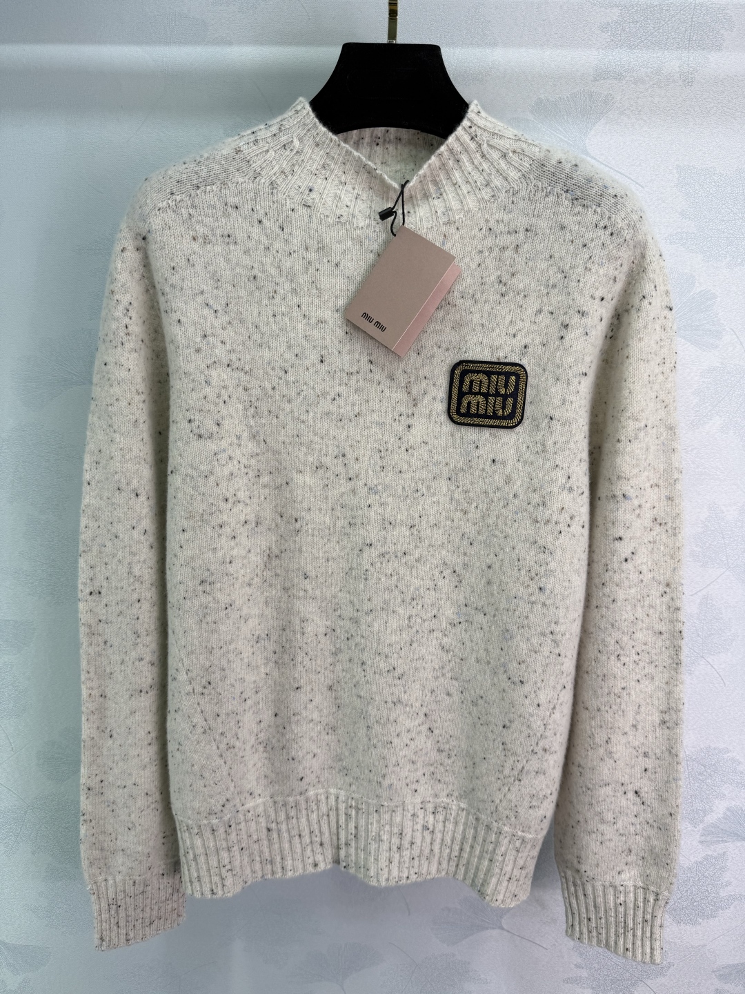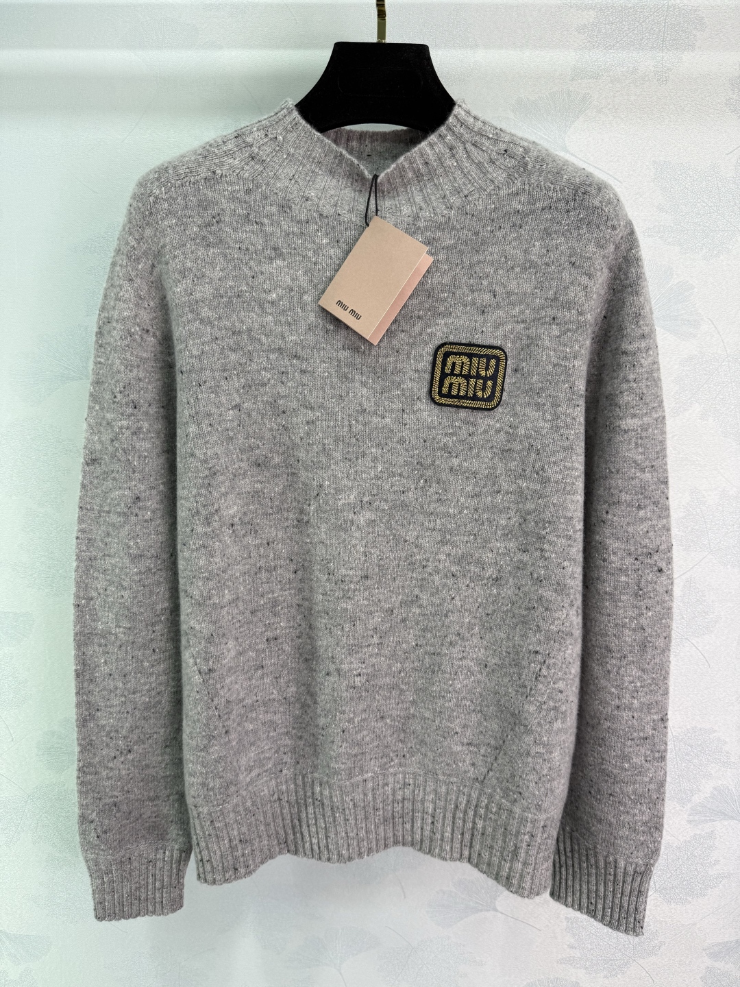 Tags: كنزة Miu Miu, كنزة بتصميم عصري, كنزة صوف ميرينو, كنزة صوفية نسائية, كنزة مطرزة بشعار, ملابس شتوية فاخرة