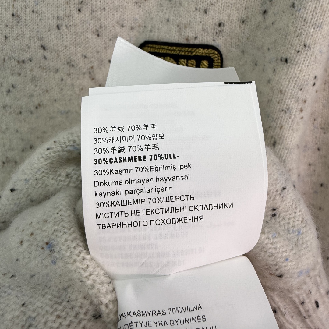 - التصميم: كنزة صوفية مطرزة بشعار.