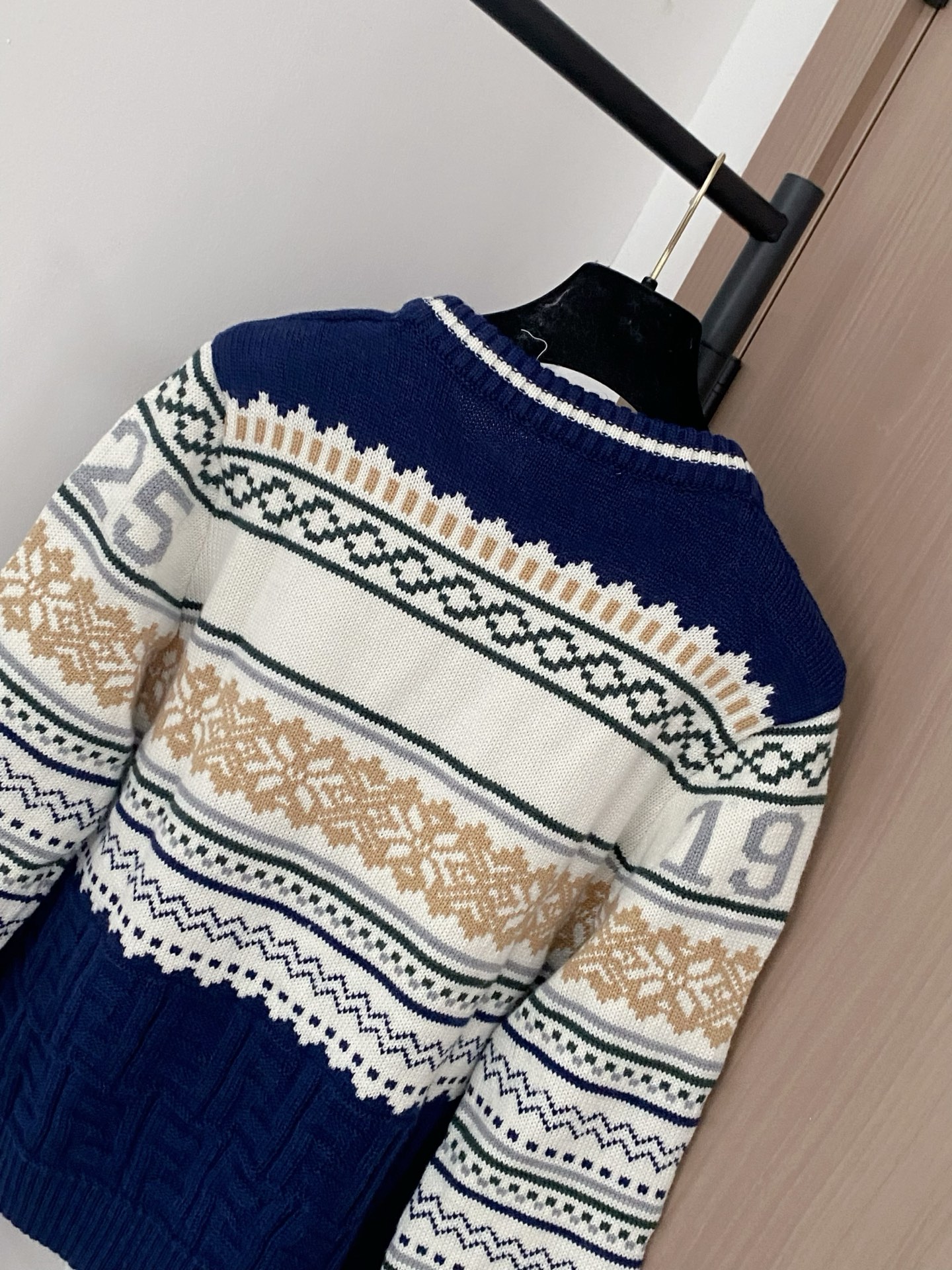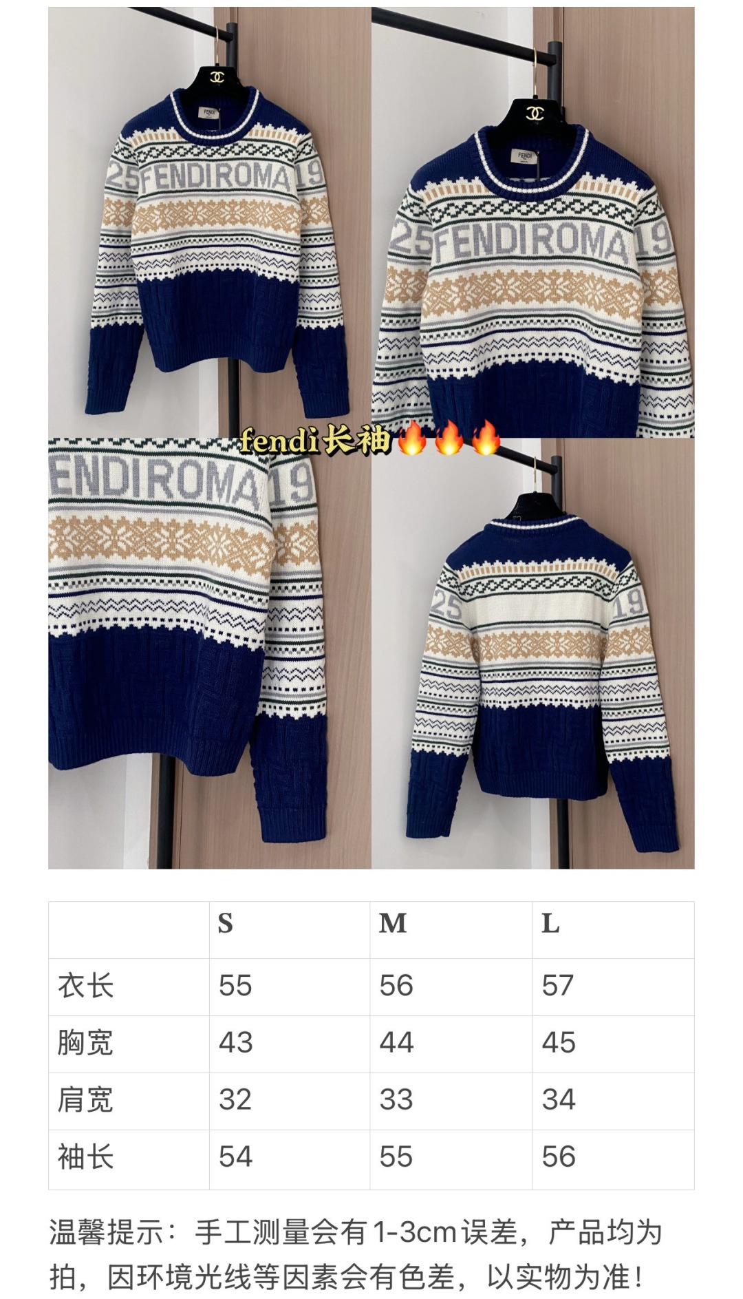 Fendi 25 كنزة صوفية جديدة برقبة دائرية وأكمام طويلة وشعار FF المزدوج