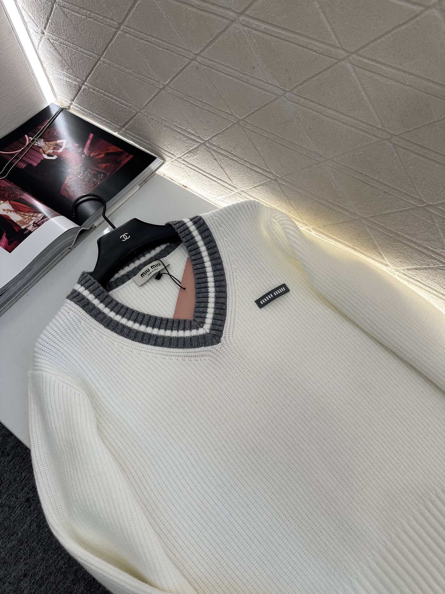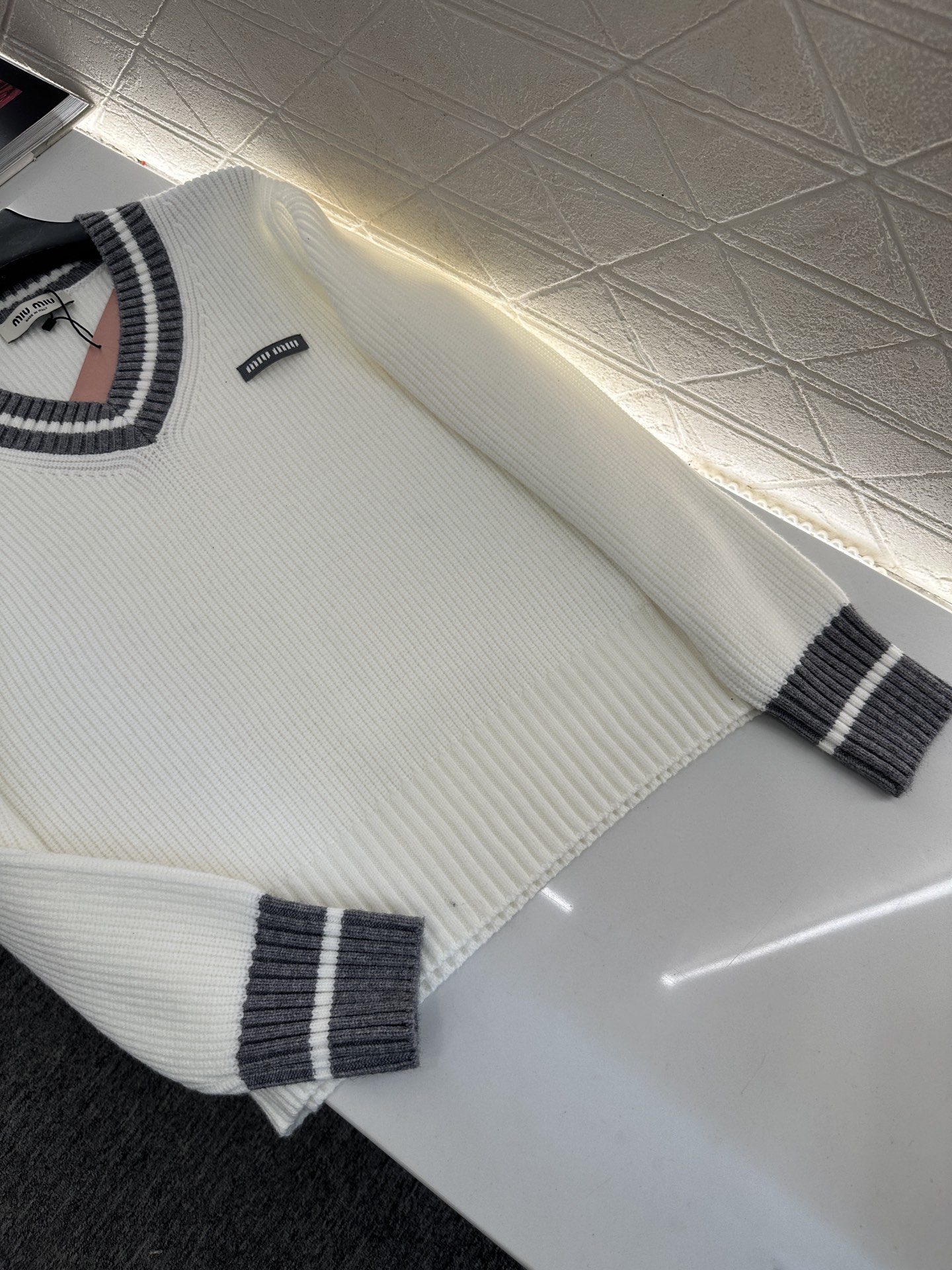 كنزة ميو ميو هي إضافة أنيقة وعصرية لخزانة ملابسك.