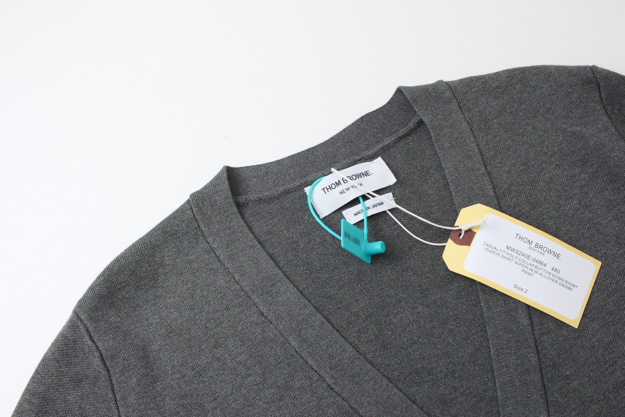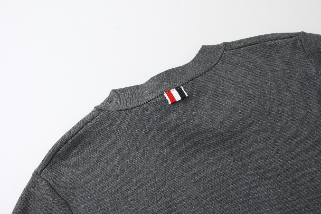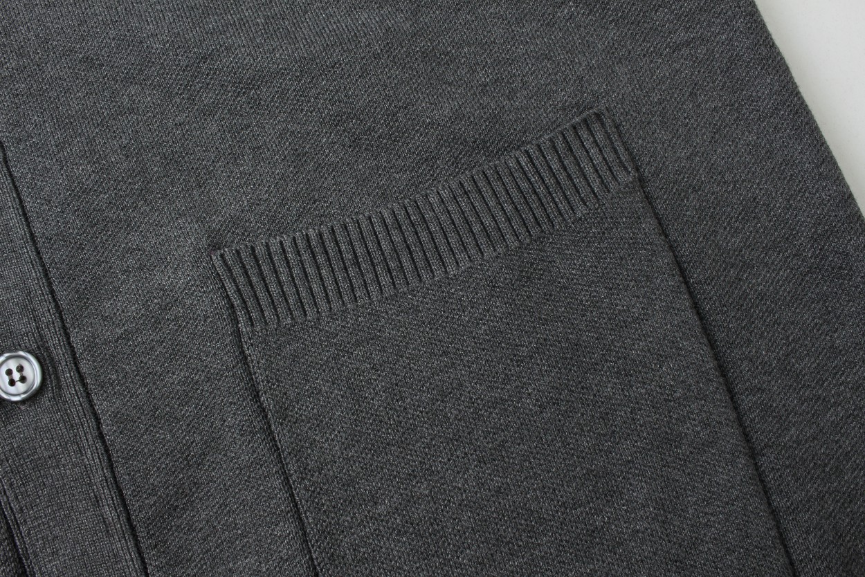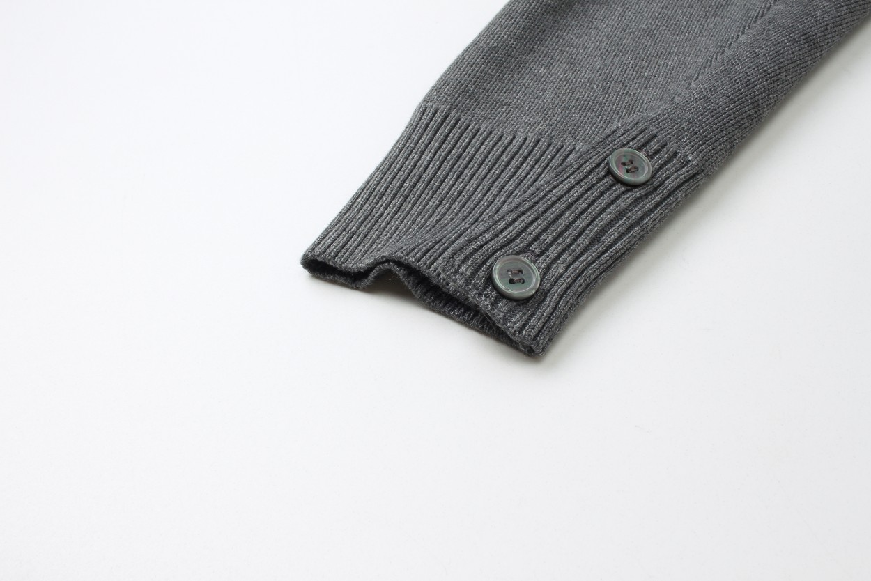 Tags: Thom Browne Cardigan, كنزة صوفية بأربعة خطوط, كنزة صوفية بأزرار من عرق اللؤلؤ, كنزة صوفية رمادية, كنزة صوفية كلاسيكية للجنسين, كنزة صوفية من القطن