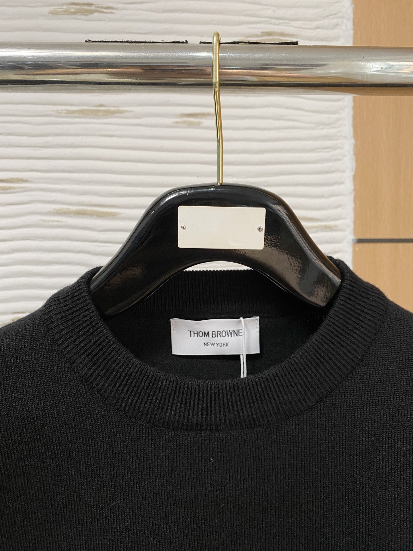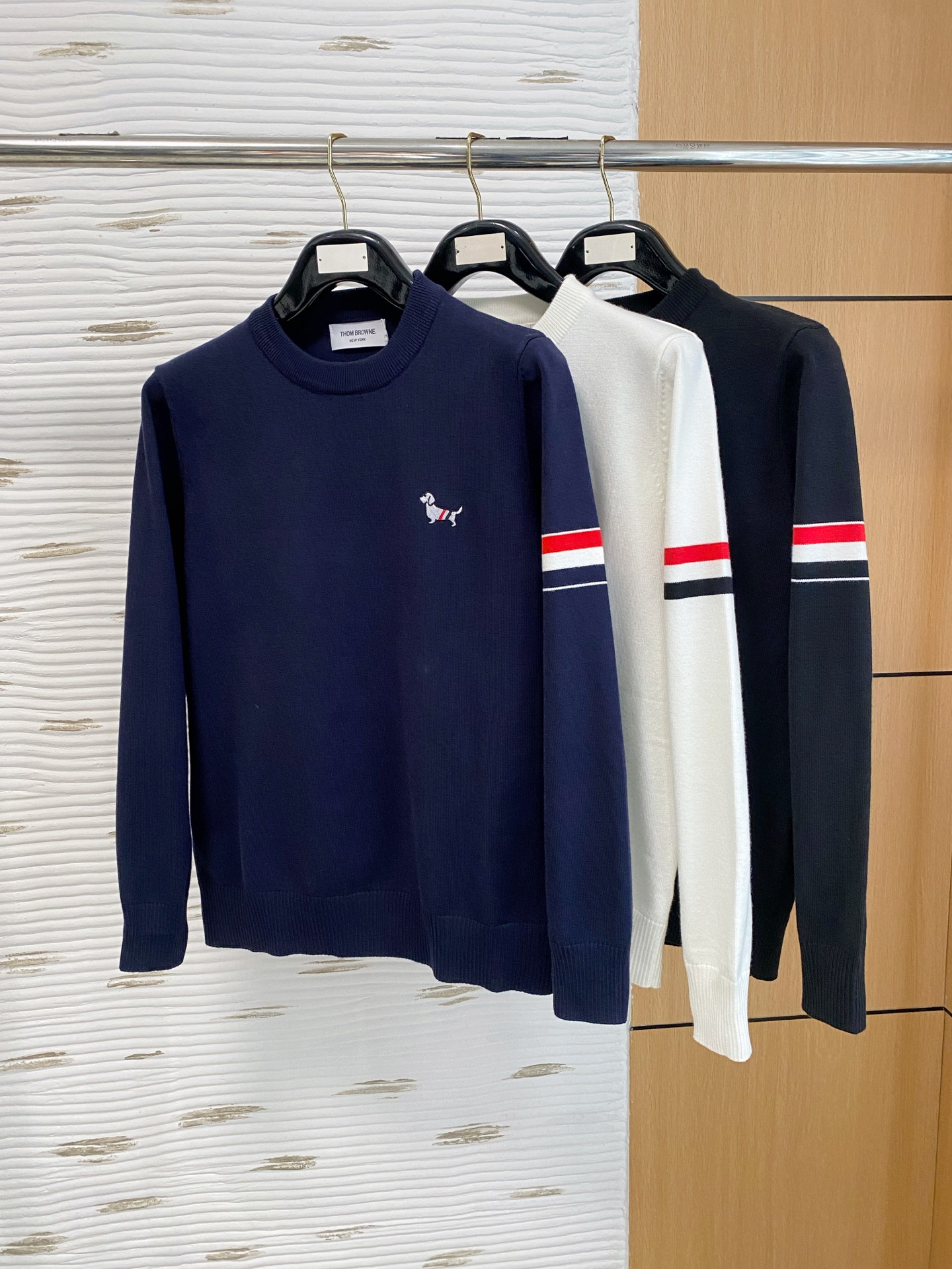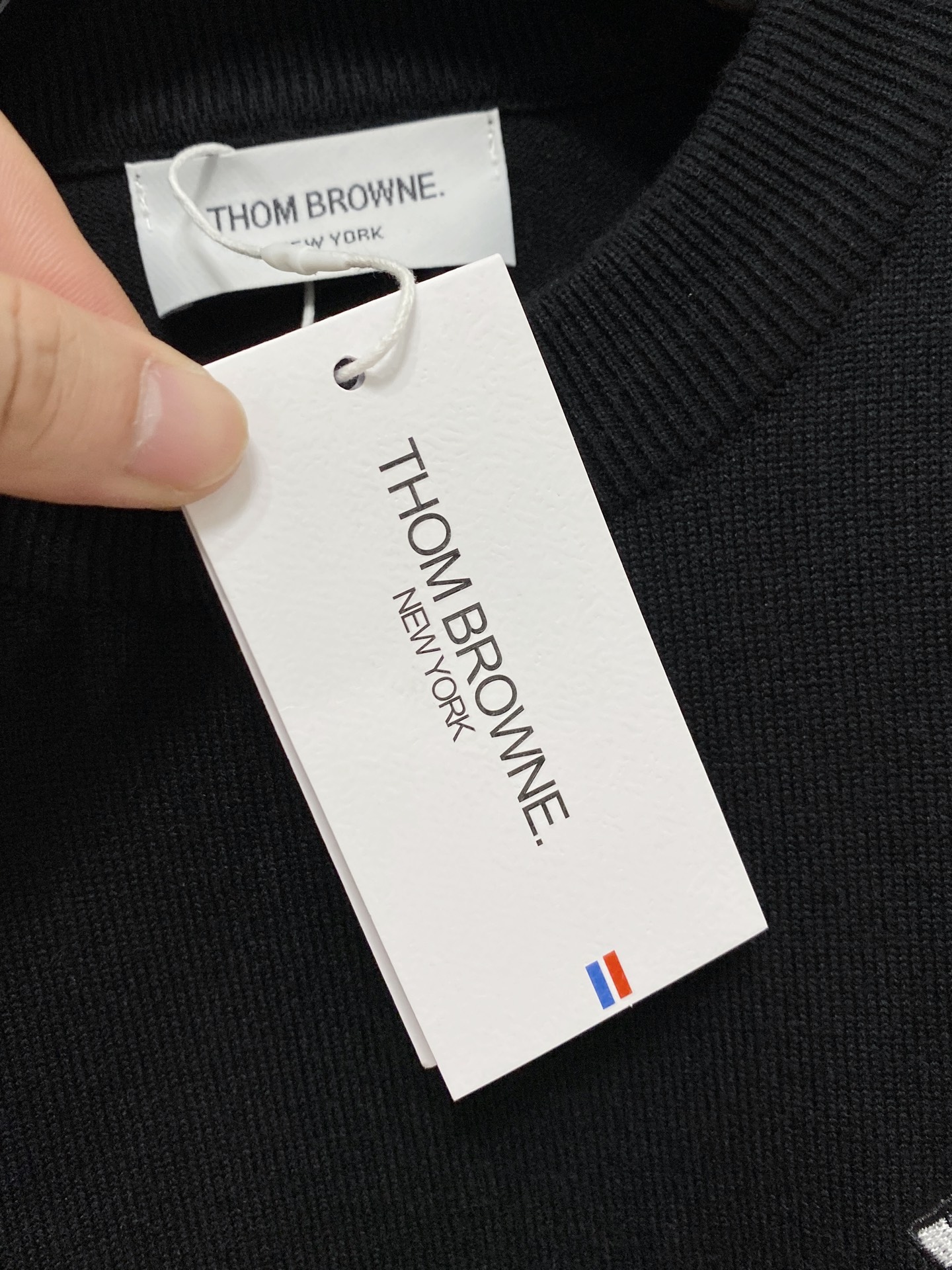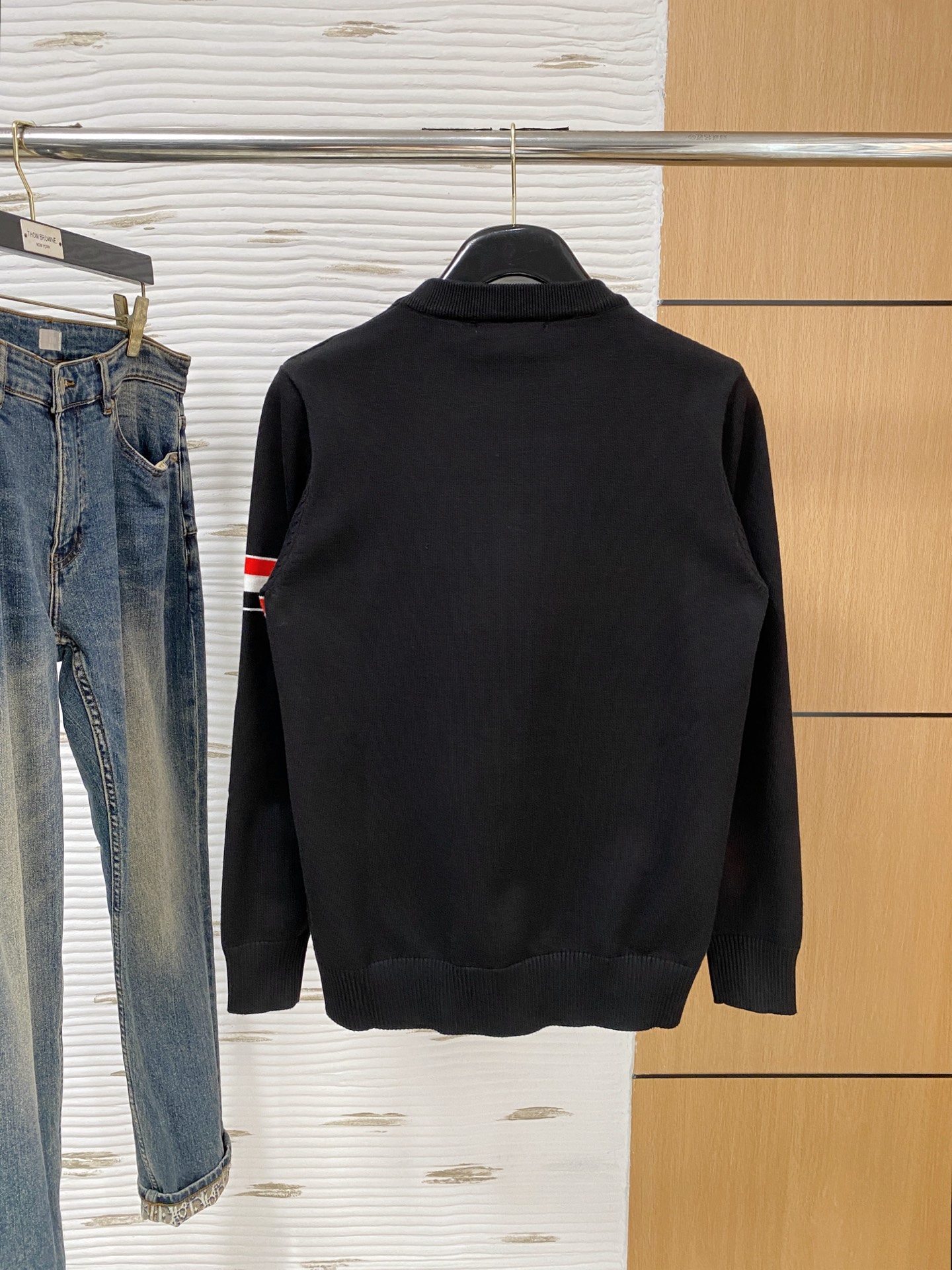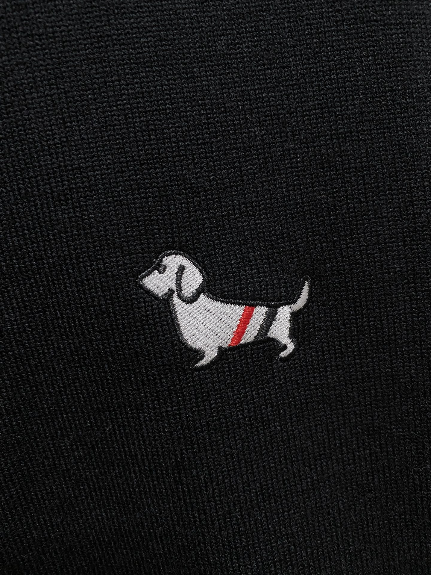 Tags: Black Designer Sweater, Crew Neck Sweater, Designer Sweater, Dog Embroidery Sweater, Men's Wool Sweater, Thom Browne Sweater