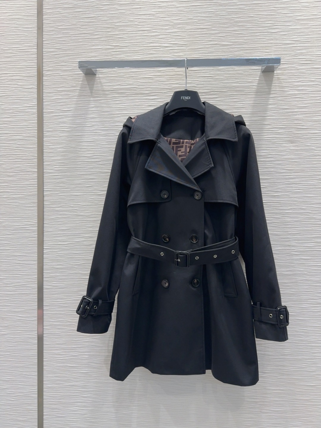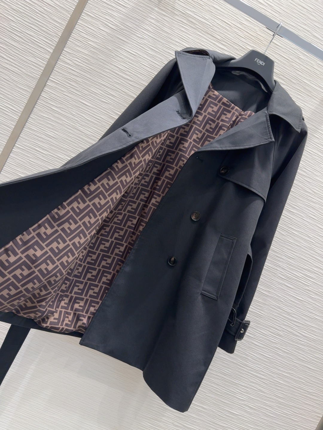 Fendi 2025FW Trench Coat - Black, Comfortable, and Versatile Outerwear
