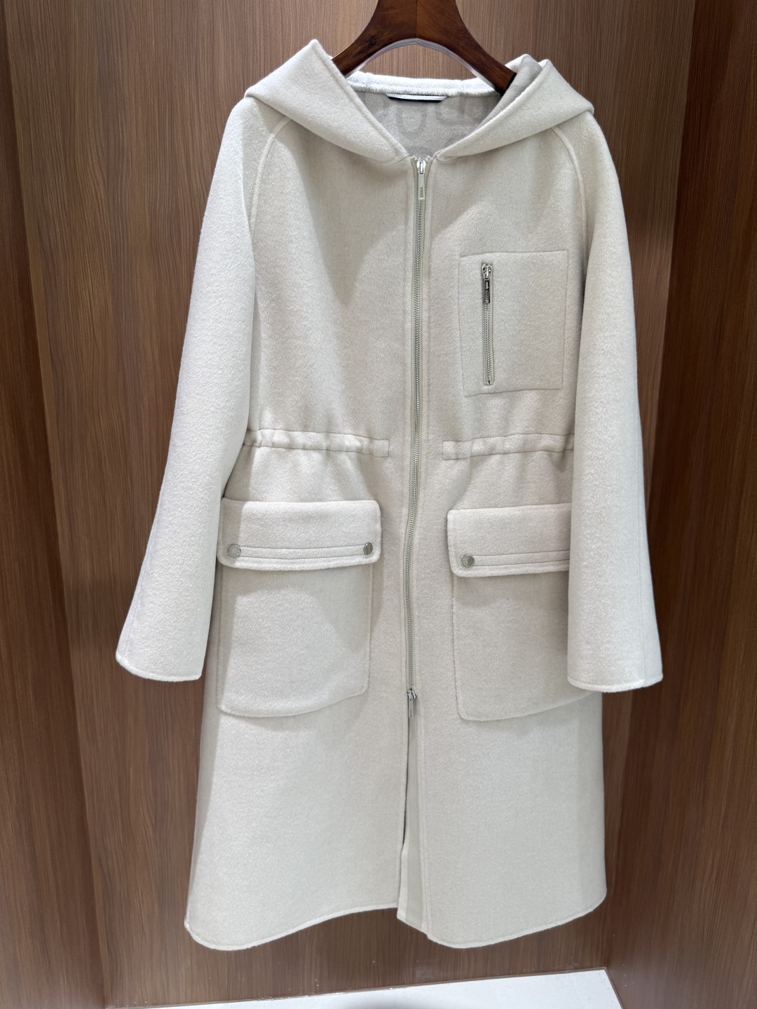 Tags: Drawstring Waist Coat, Hermès Style Coat, Hooded Cashmere Coat, Multi-Pocket Coat, Winter Cashmere Coat, Women's Cashmere Coat