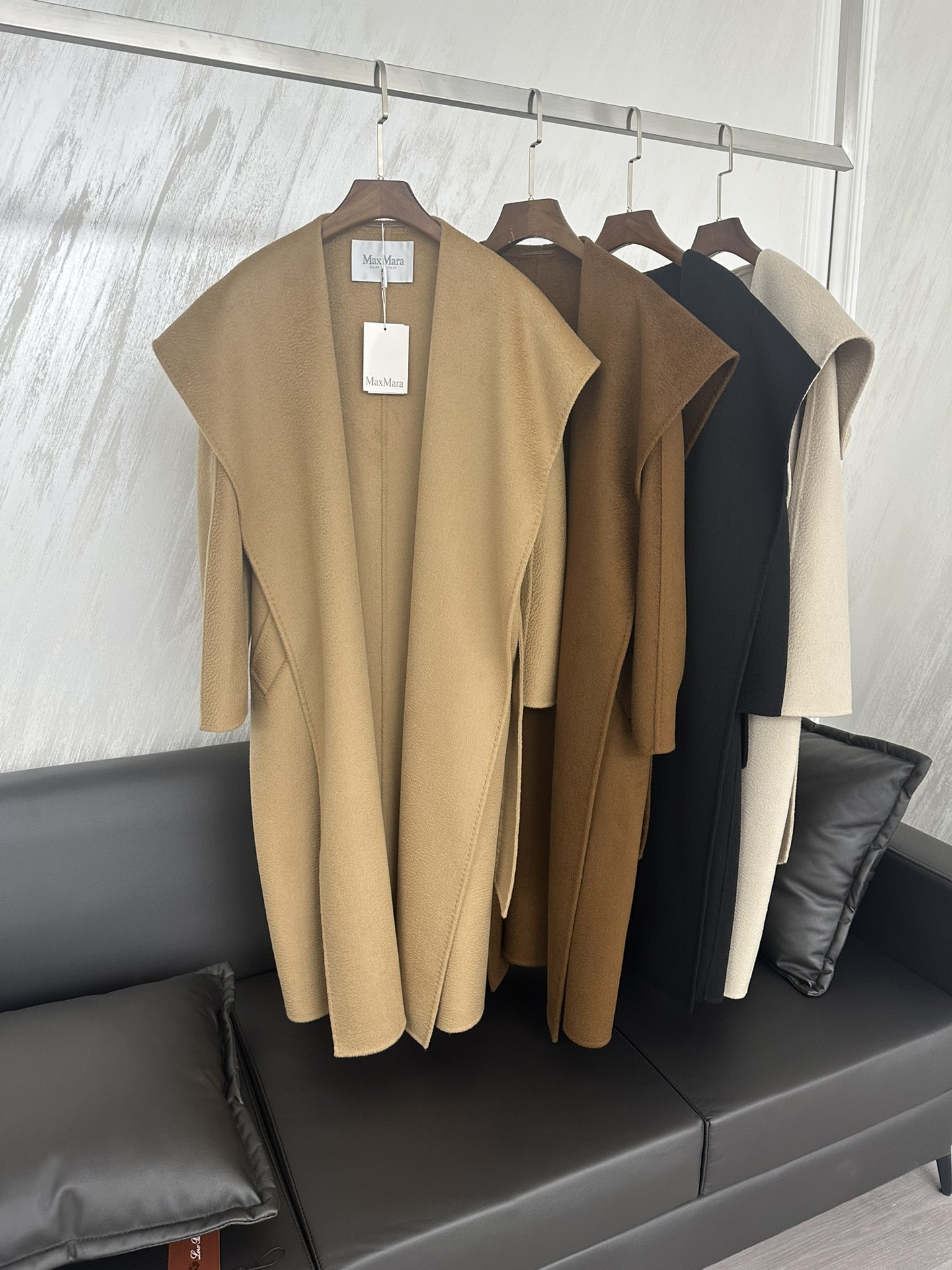 استمتعي بالدفء والأناقة مع معطف Max Mara الكشمير الفاخر. تصميم أنيق وحزام مريح يبرز جمالك.